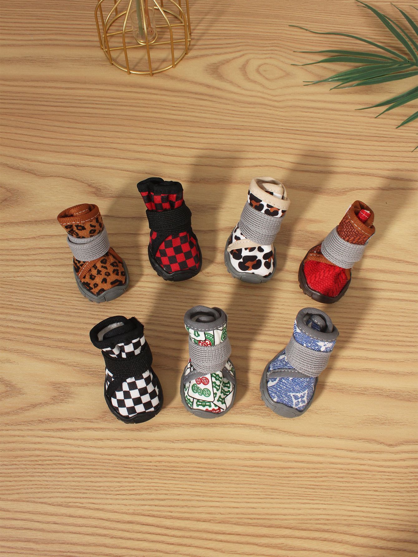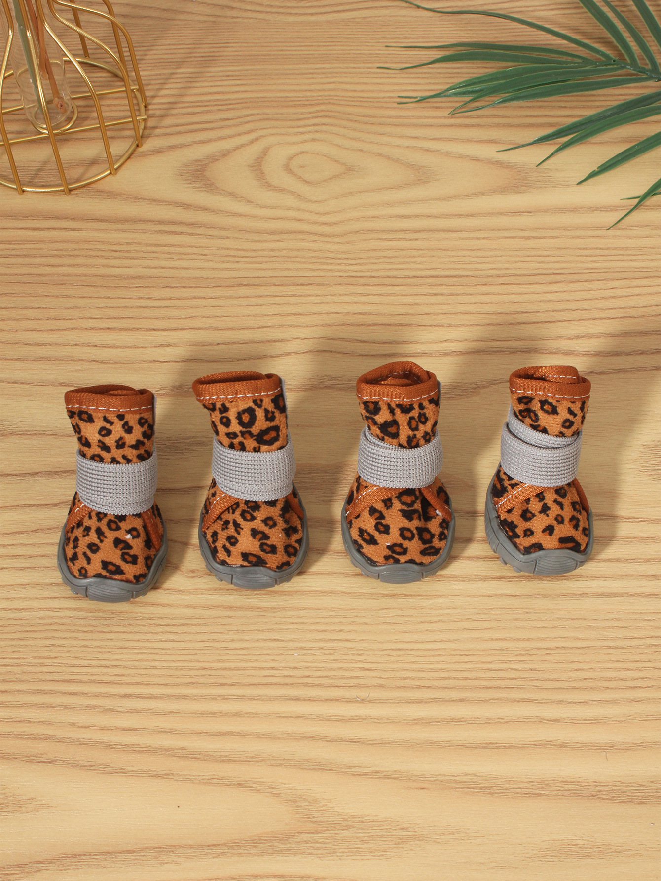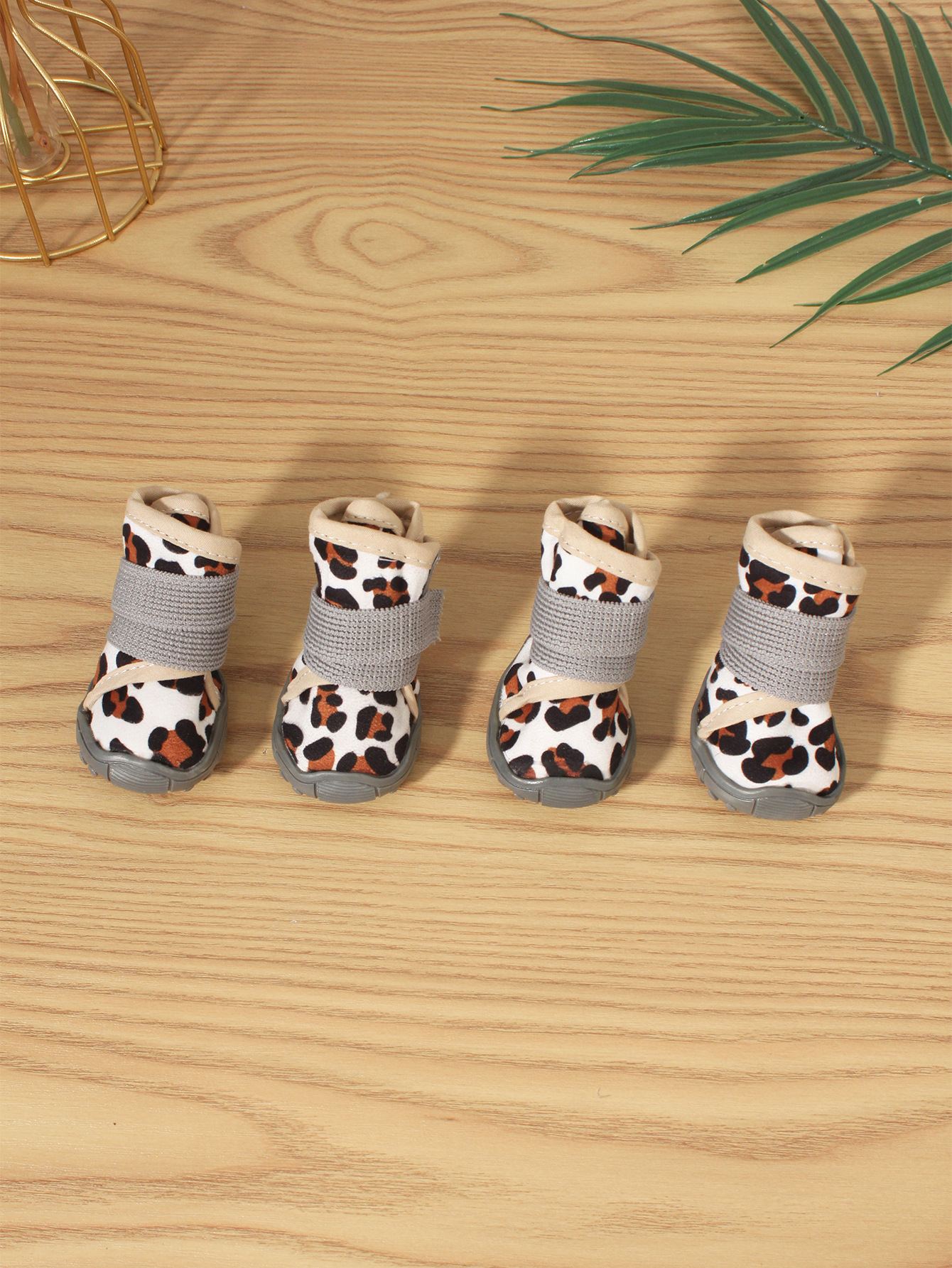 애완 동물 신발 레오파드 무늬 방수 따뜻한 기모 전체 개 품종 가을과 겨울 미끄럼 방지 드롭 Shenari 골든 리트리버 불독 부츠