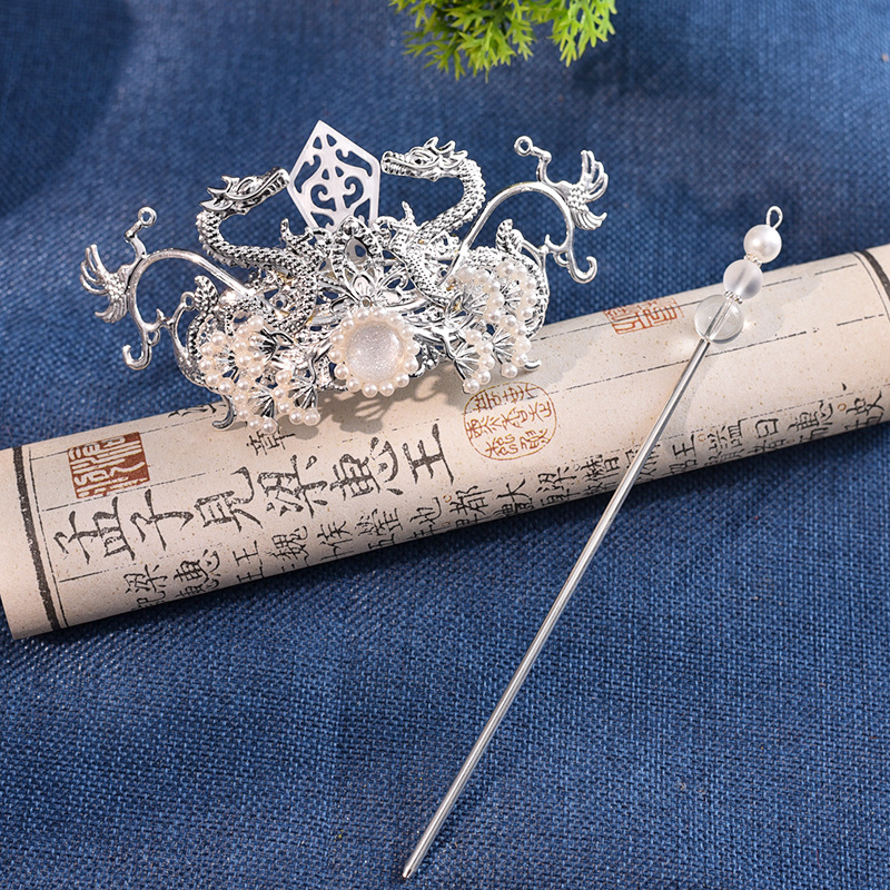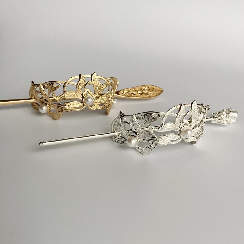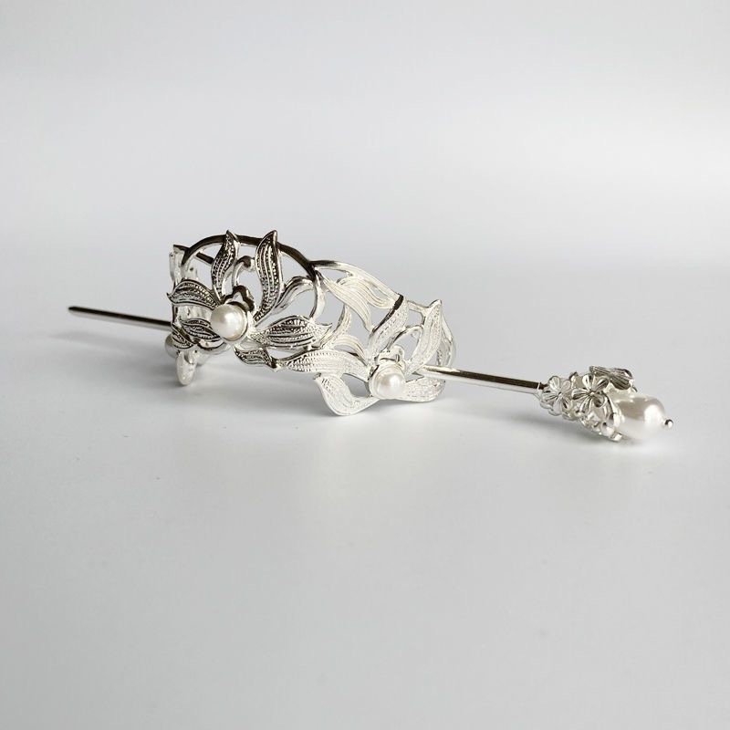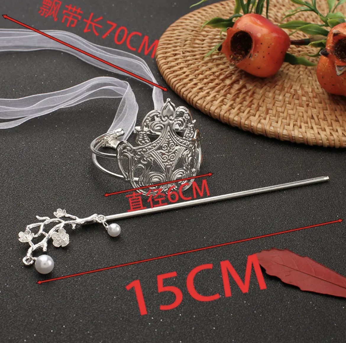 • 실버 헤어 액세서리 세트 [머리관+머리핀+리본]