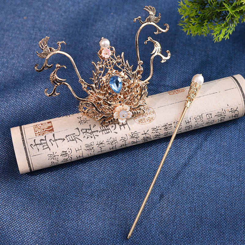골동품 Hanfu 모자 여아 헤어 크라운 말 얼굴 스커트 중국 스타일 어린이 머리핀 머리 머리핀 고대 의상 스트리머 액세서리스토어 가기