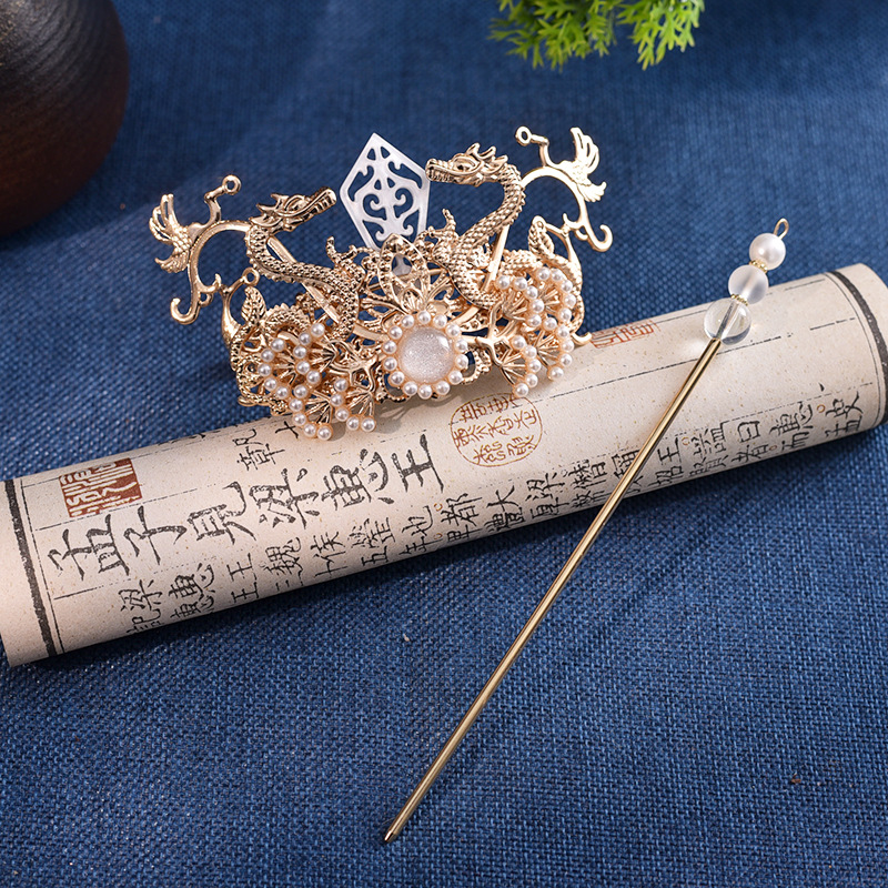 골동품 Hanfu 모자 여아 헤어 크라운 말 얼굴 스커트 중국 스타일 어린이 머리핀 머리 머리핀 고대 의상 스트리머 액세서리