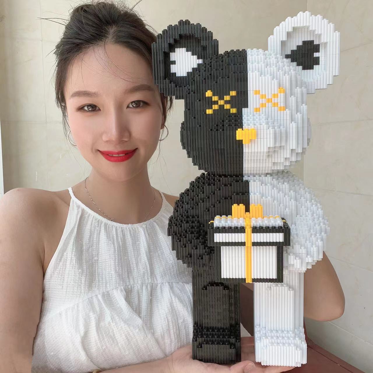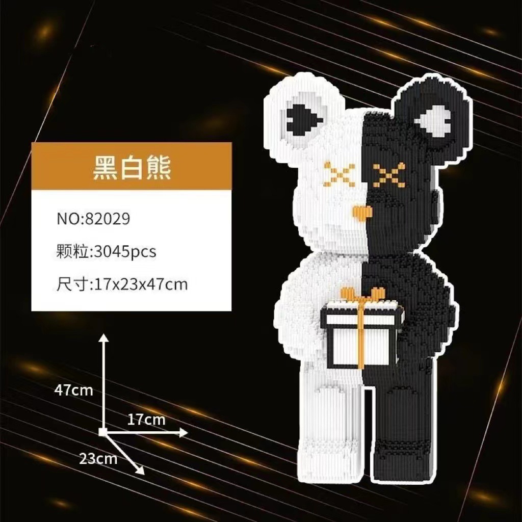 새로운 흑백 선물 곰 호환 레고 폭력 곰 빌딩 블록 시리즈 작은 입자 어린이 교육 장난감 장식품스토어 가기