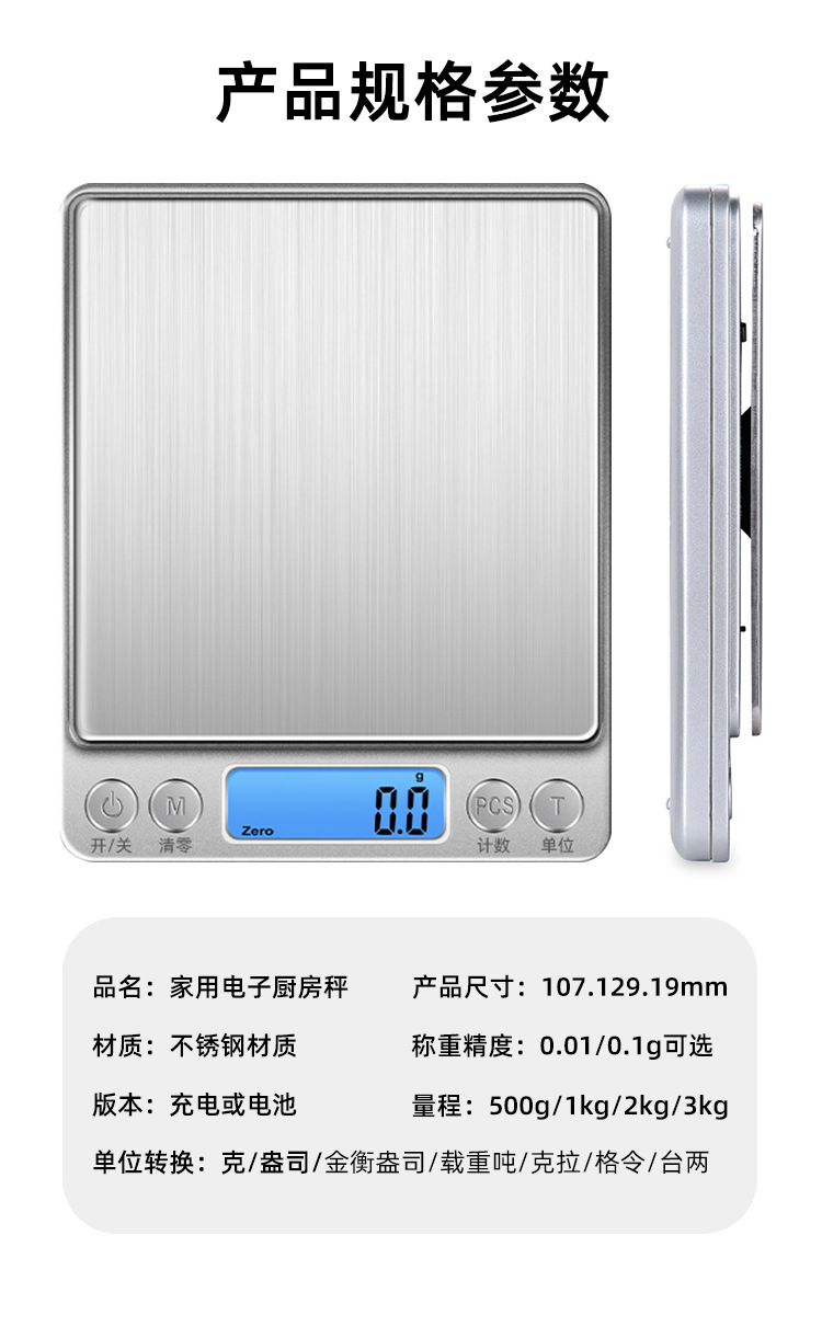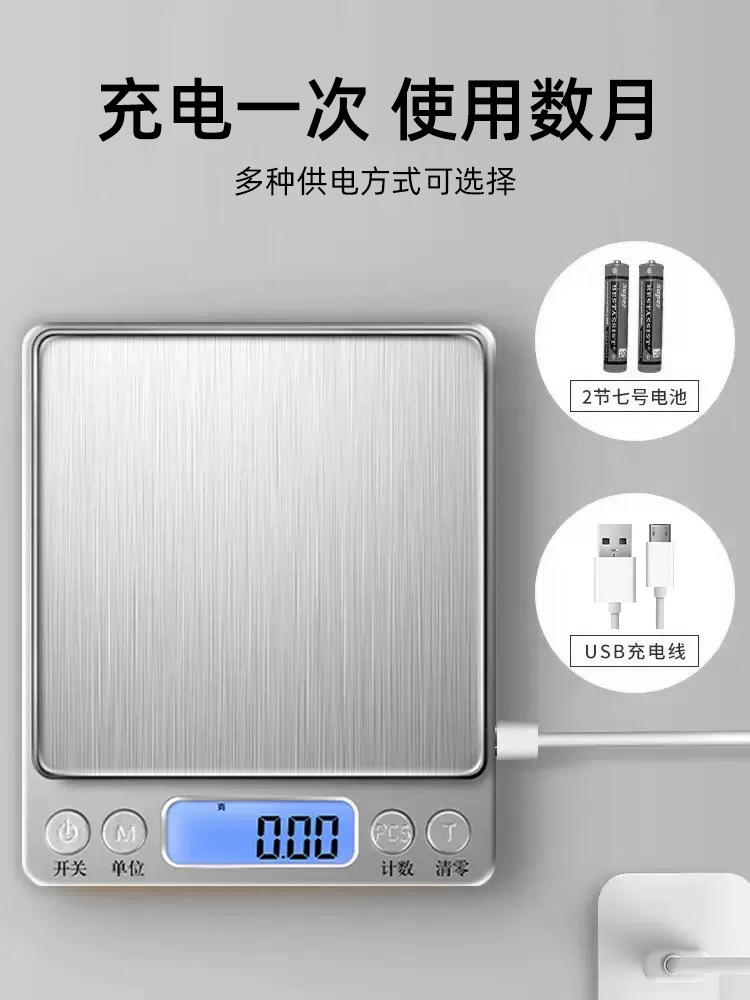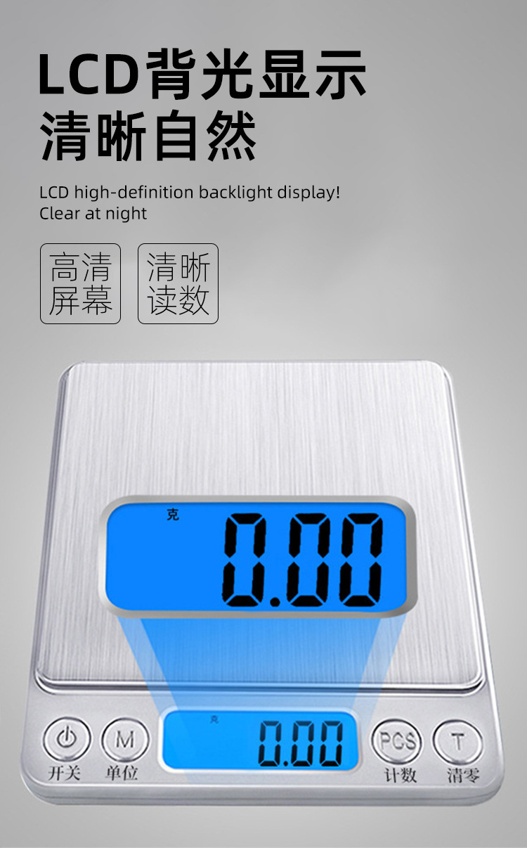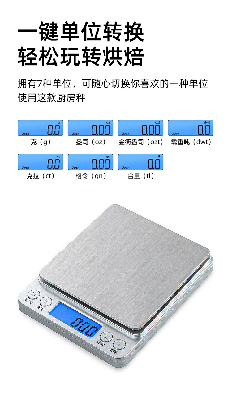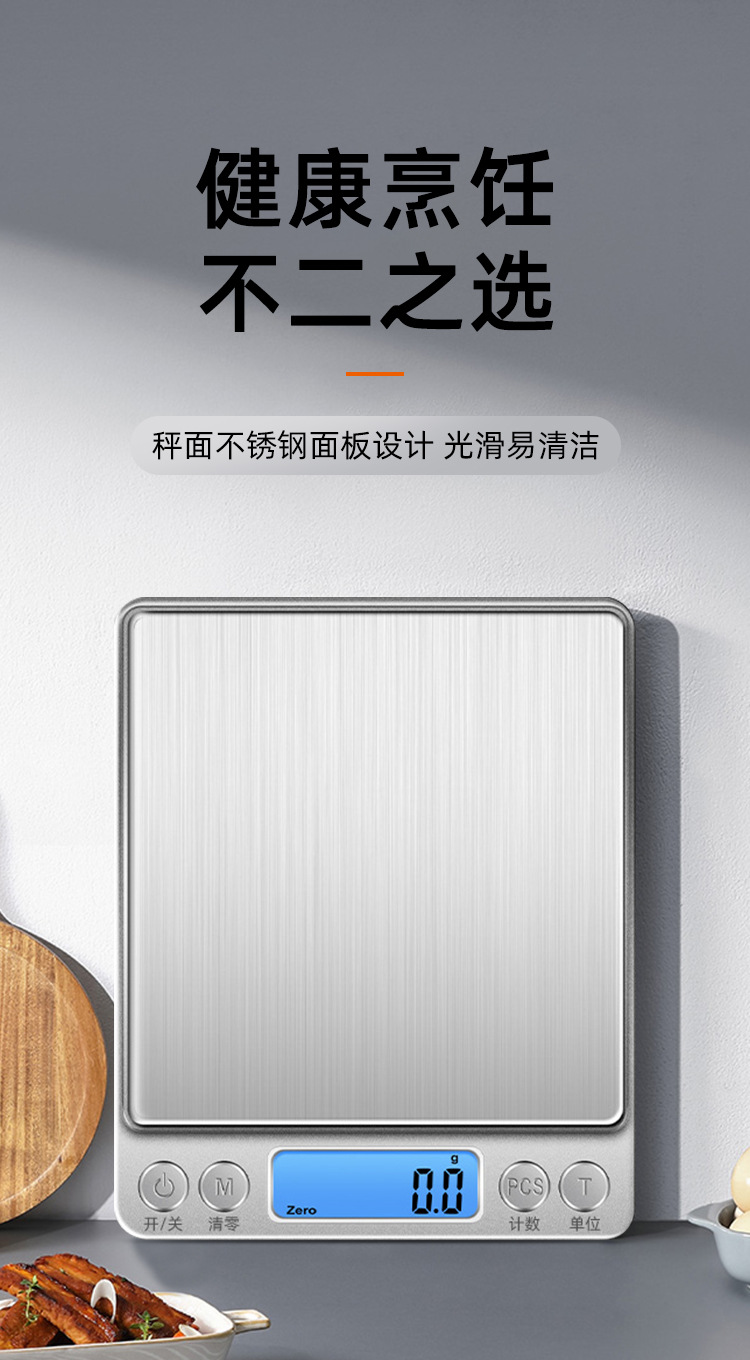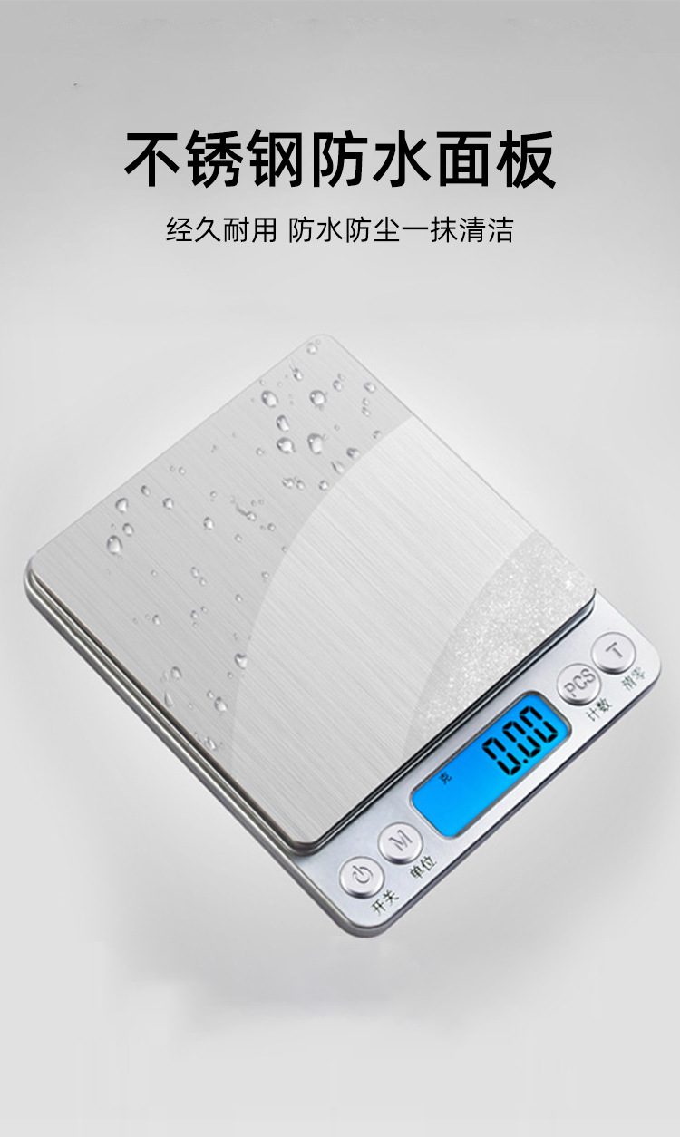 I2000 주방 전자 저울 커피 계량 소형 가정용 식품 중량 스케일 식품 베이킹 스테인레스 스틸 그램