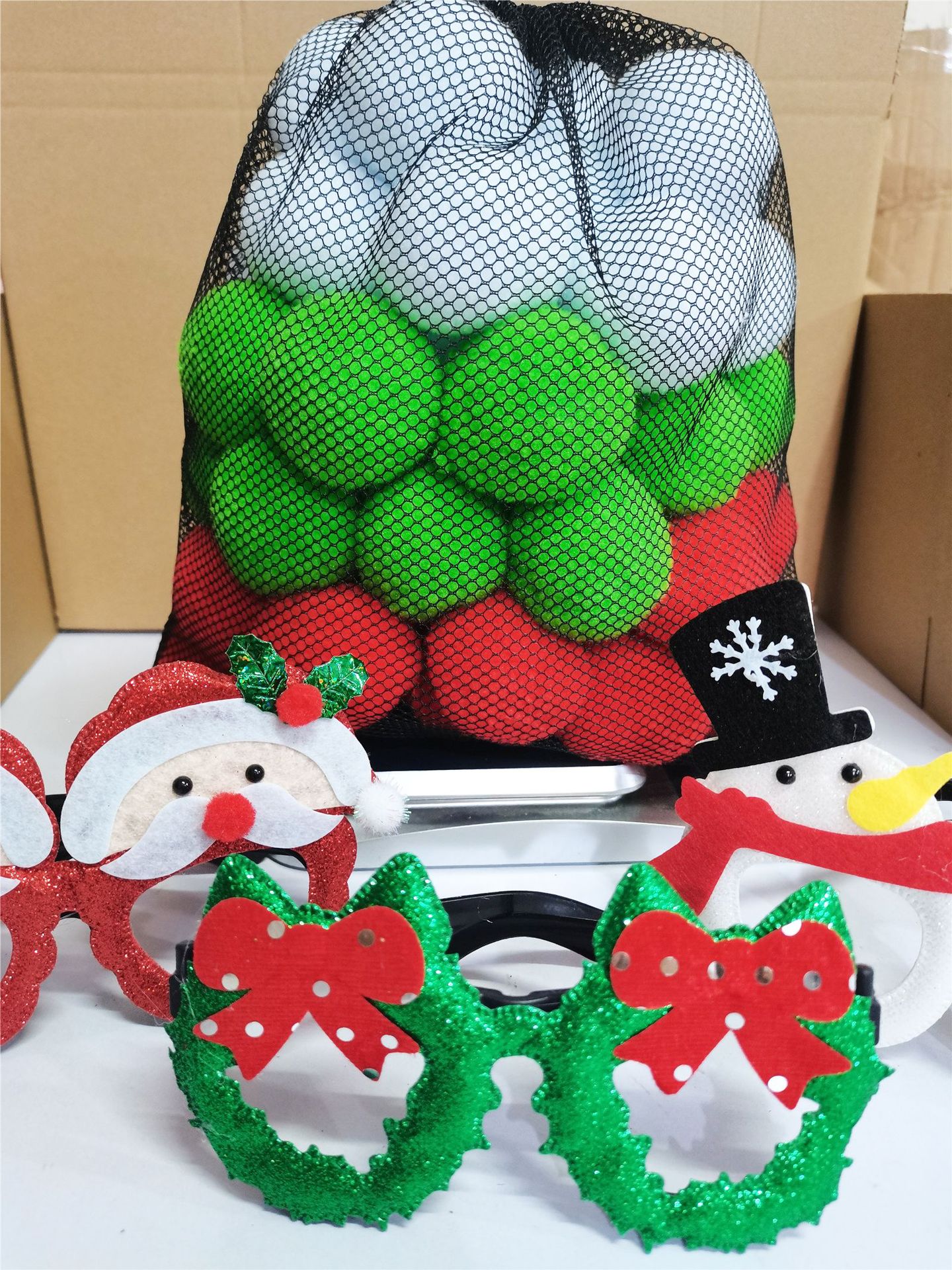 • 크리스마스 빨강, 녹색 및 흰색 60 그물 가방 269g