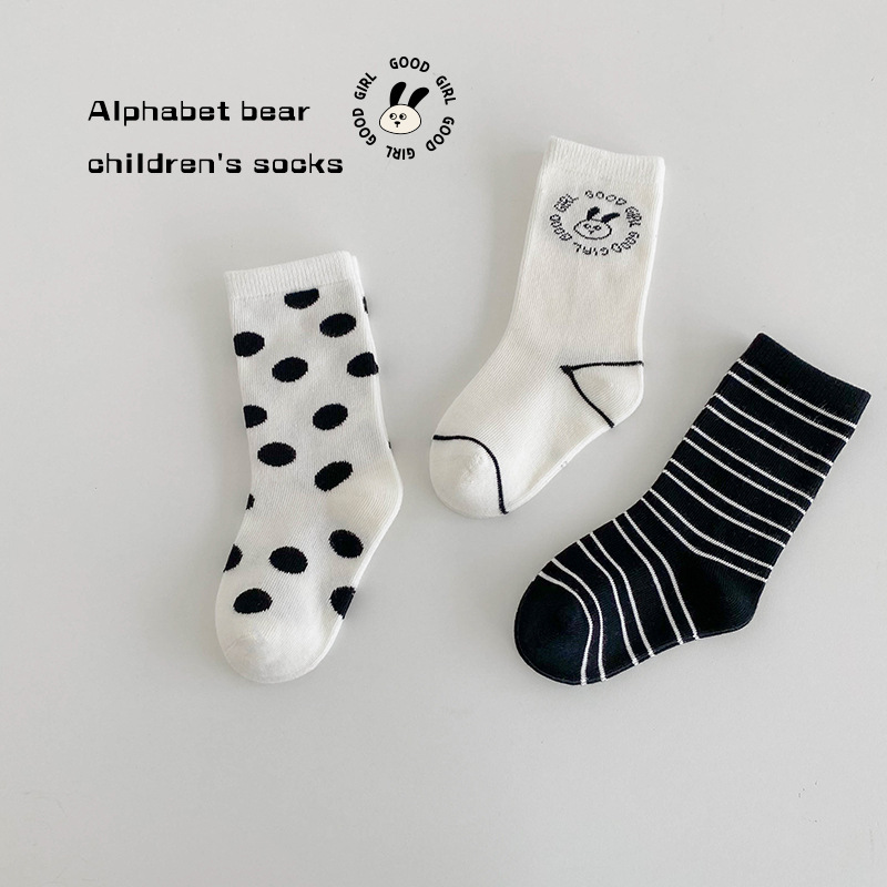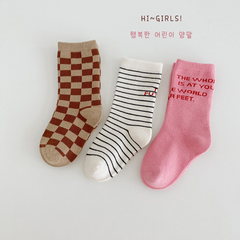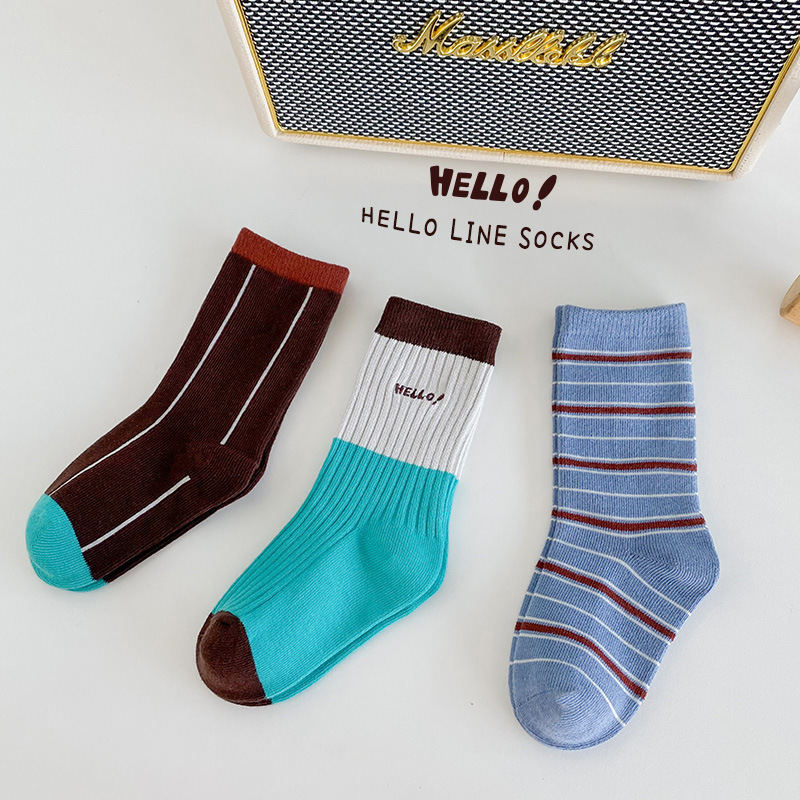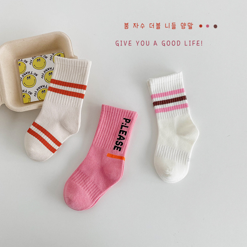 1519 어린이 양말 도매 2024 봄과 가을 색상 차단 줄무늬 스포츠 스타일 중반 송아지 양말 소년과 소녀를위한 면화 뼈없는 양말
