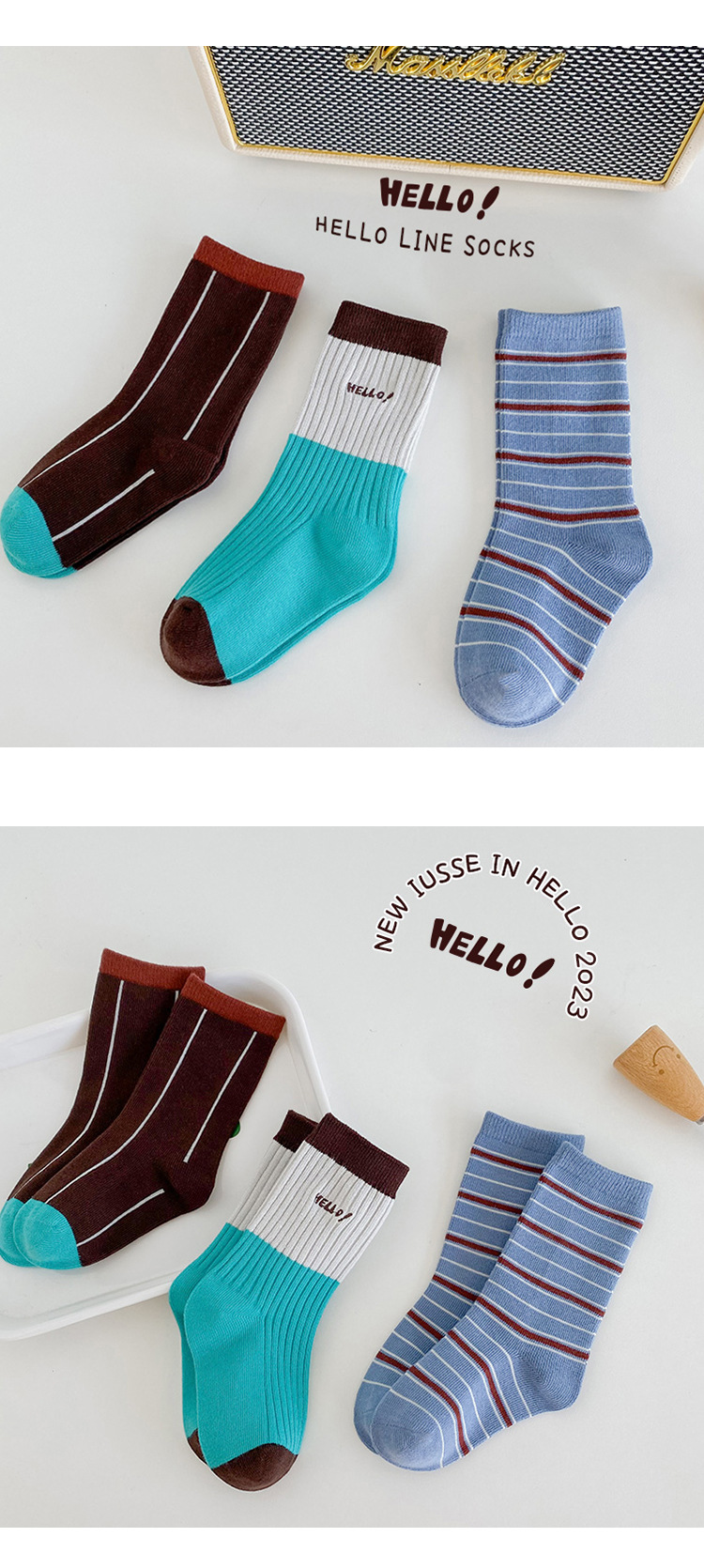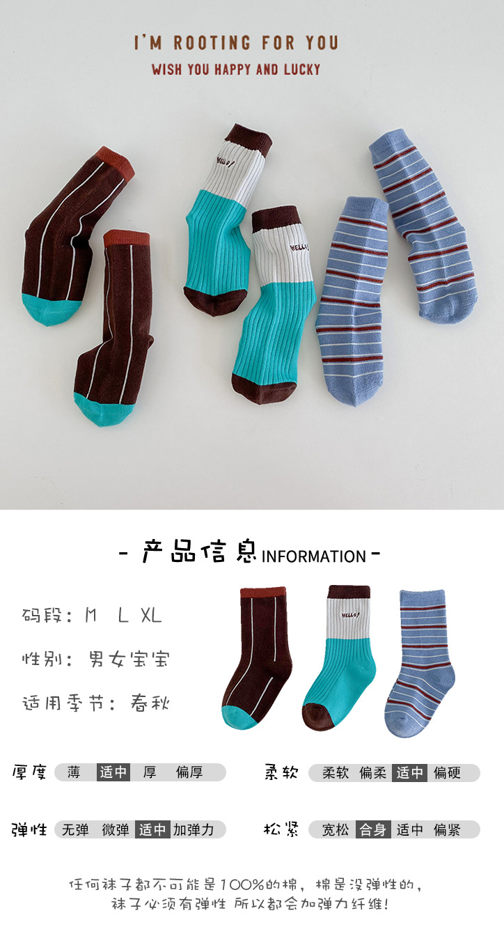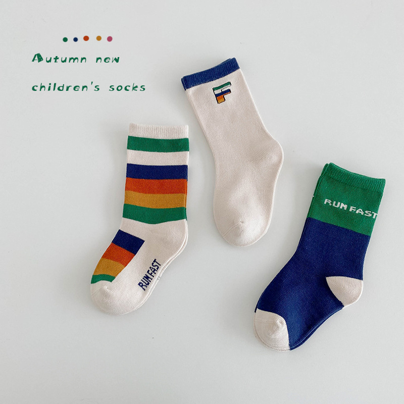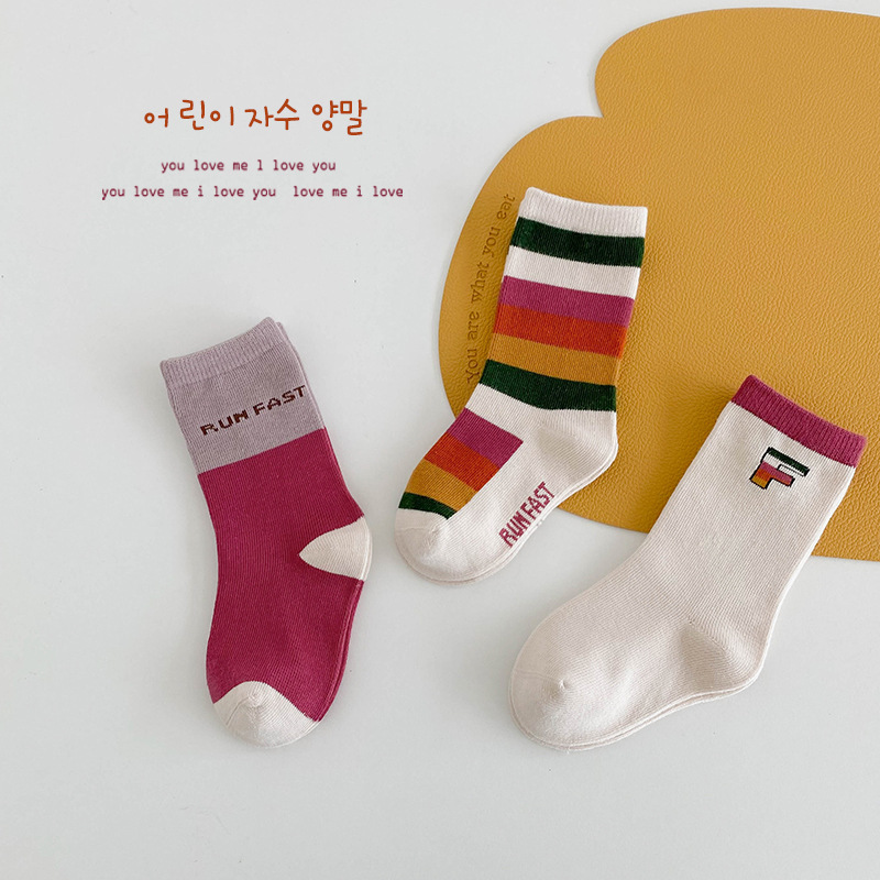 1519 어린이 양말 도매 2024 봄과 가을 색상 차단 줄무늬 스포츠 스타일 중반 송아지 양말 소년과 소녀를위한 면화 뼈없는 양말스토어 가기
