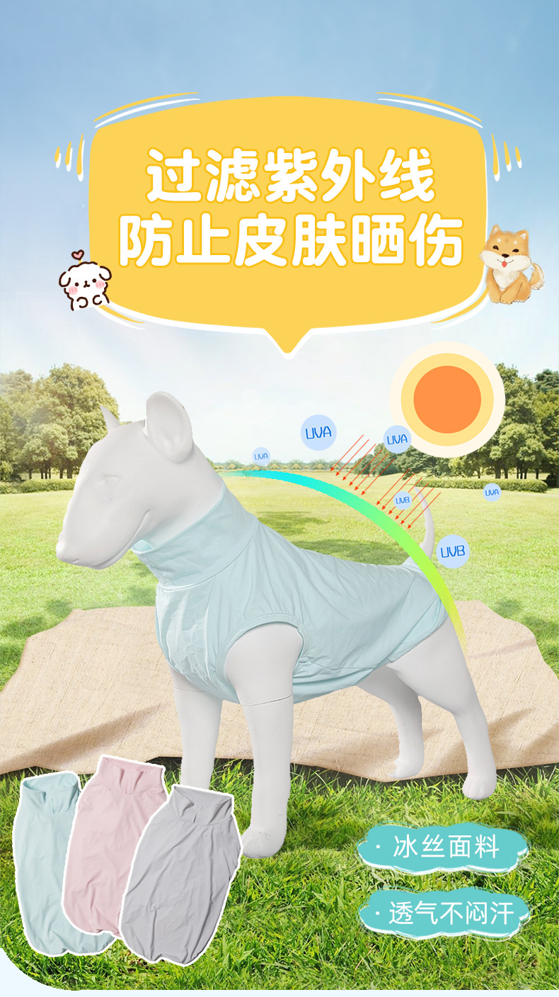 여름 애완 동물 태양 보호 의류 개 태양 보호 양모 조끼 경량 통기성스토어 가기