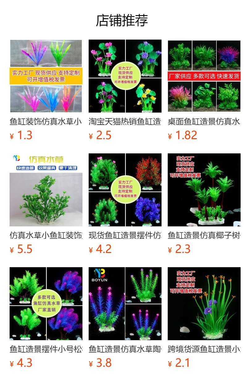 재고 어항 조경 수족관 장식 시뮬레이션 해초 스몰 사이즈 대나무 잎 조화 시뮬레이션 수초 플라스틱 꽃 도매스토어 가기