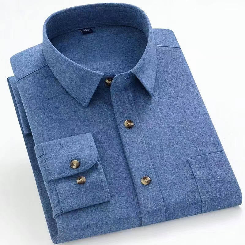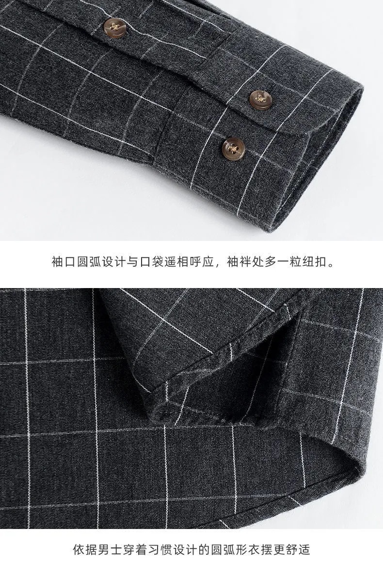 가을과 겨울 새로운 100% 면 워싱 샌딩 레트로 셔츠 남성용 긴 소매 스트라이프 격자 무늬 중년 및 젊은 탑