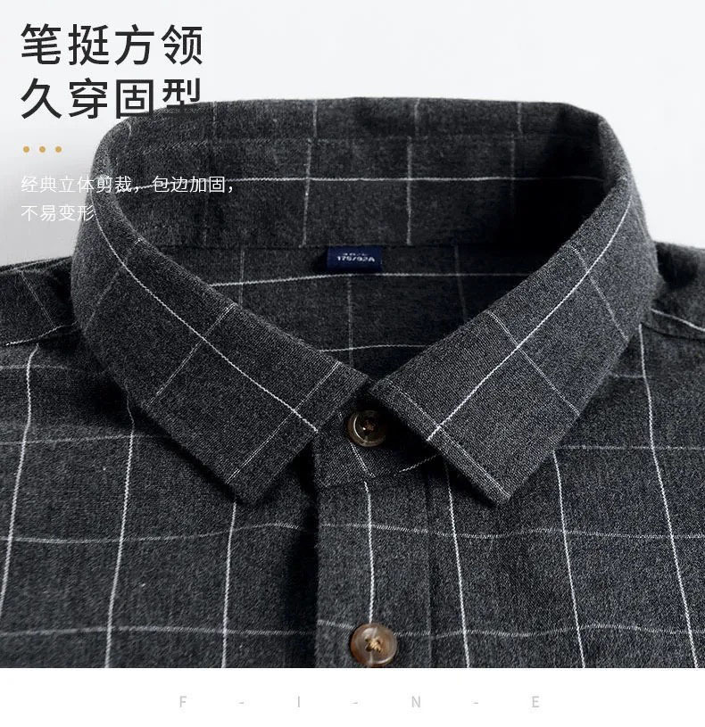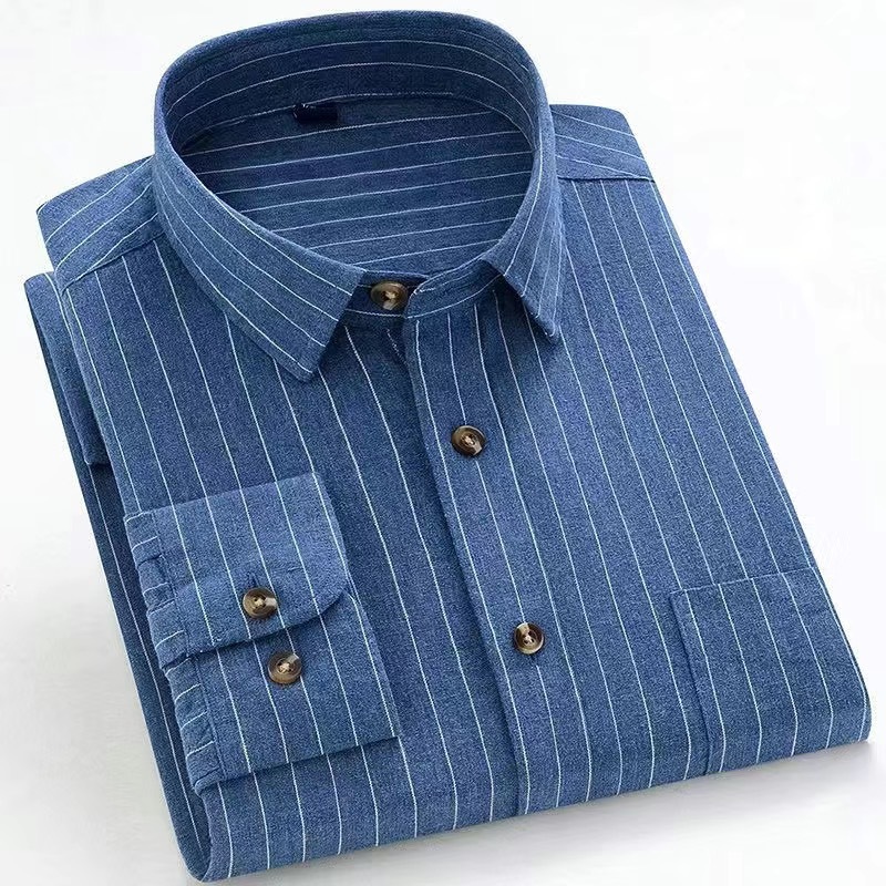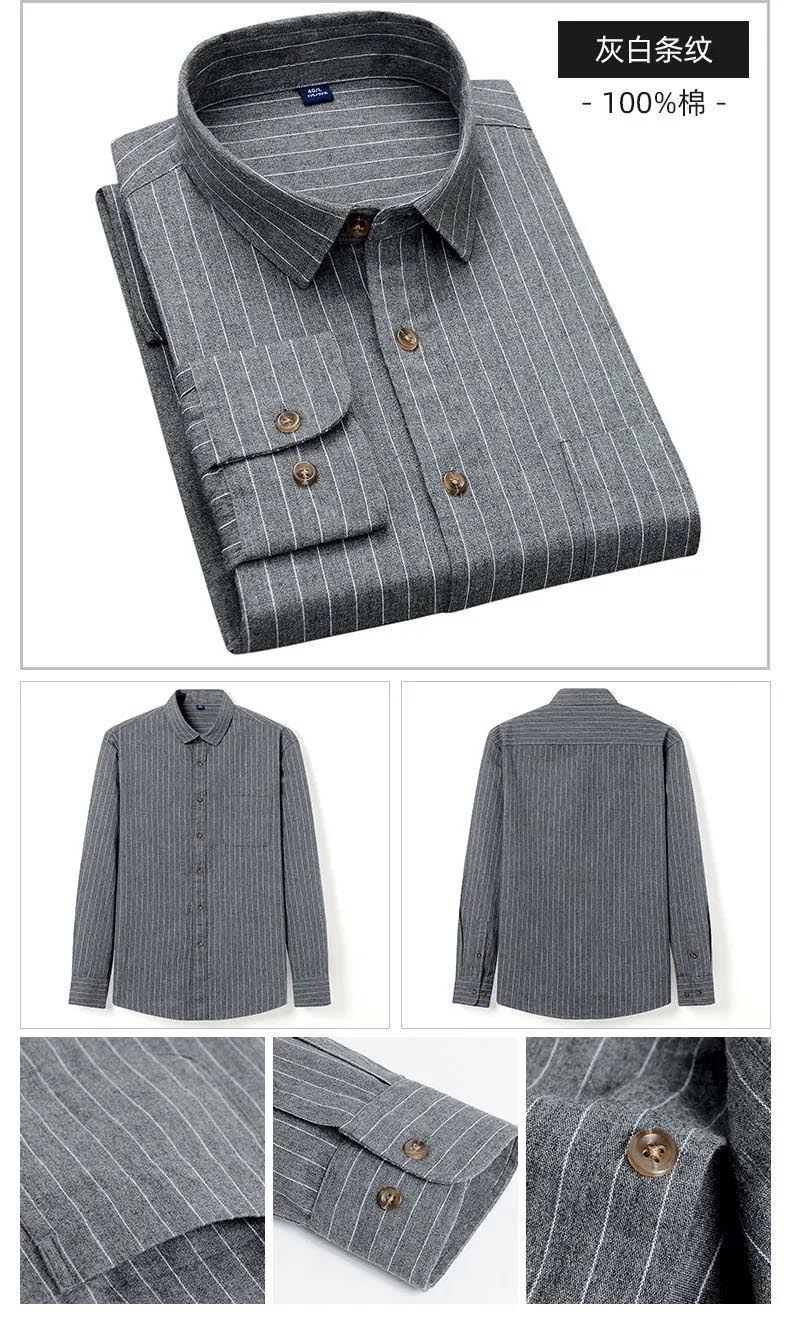 가을과 겨울 새로운 100% 면 워싱 샌딩 레트로 셔츠 남성용 긴 소매 스트라이프 격자 무늬 중년 및 젊은 탑스토어 가기