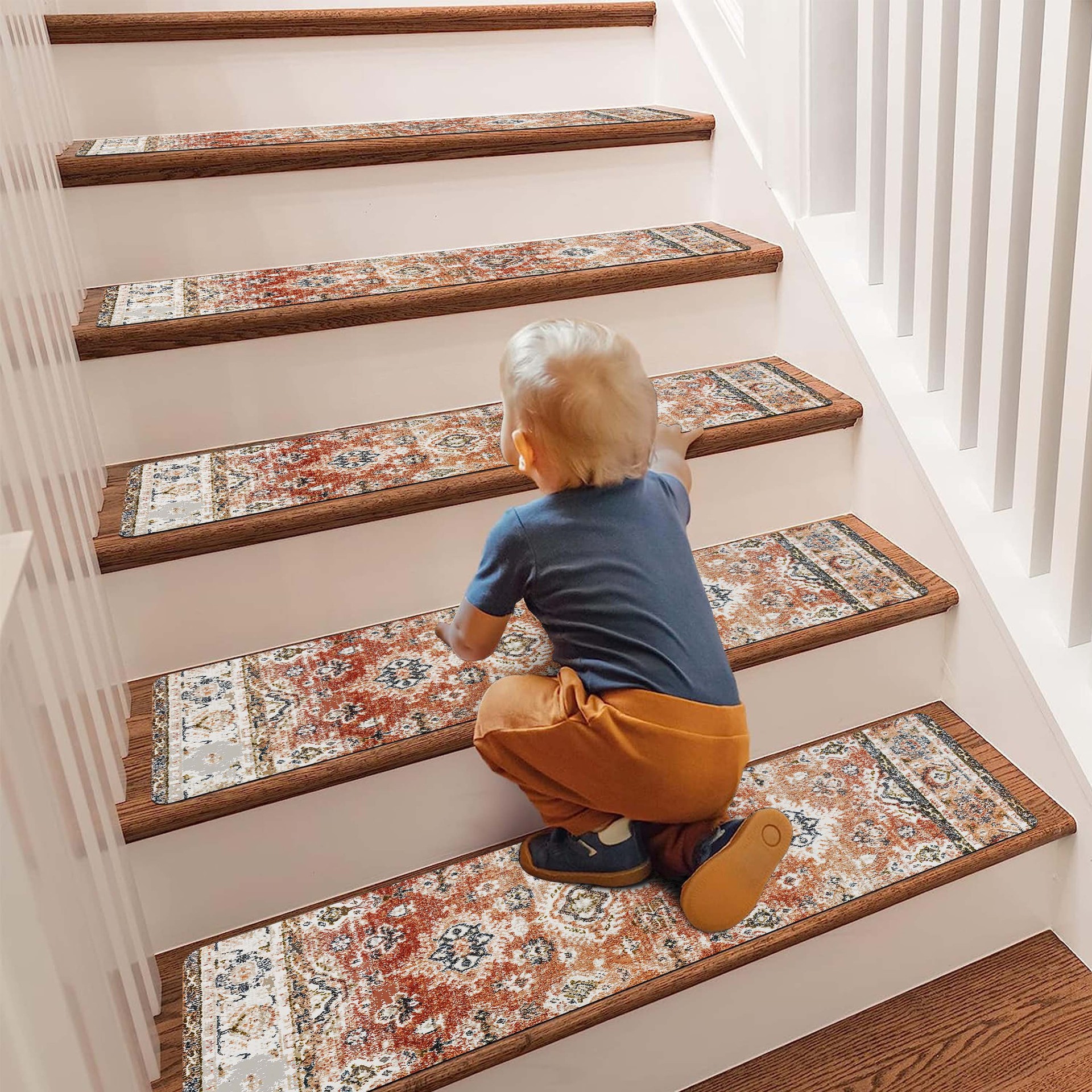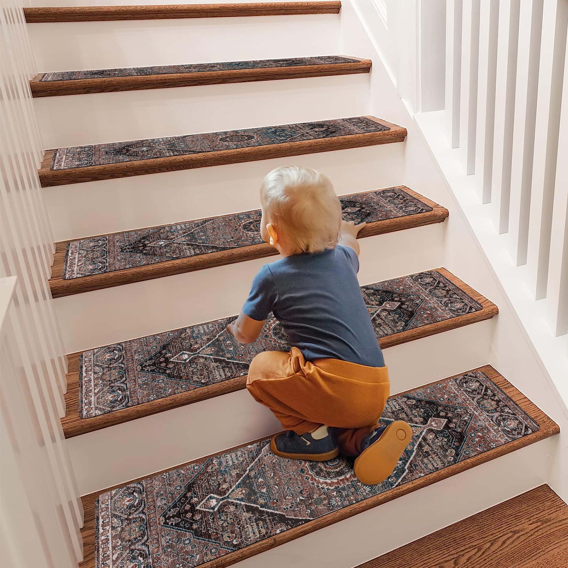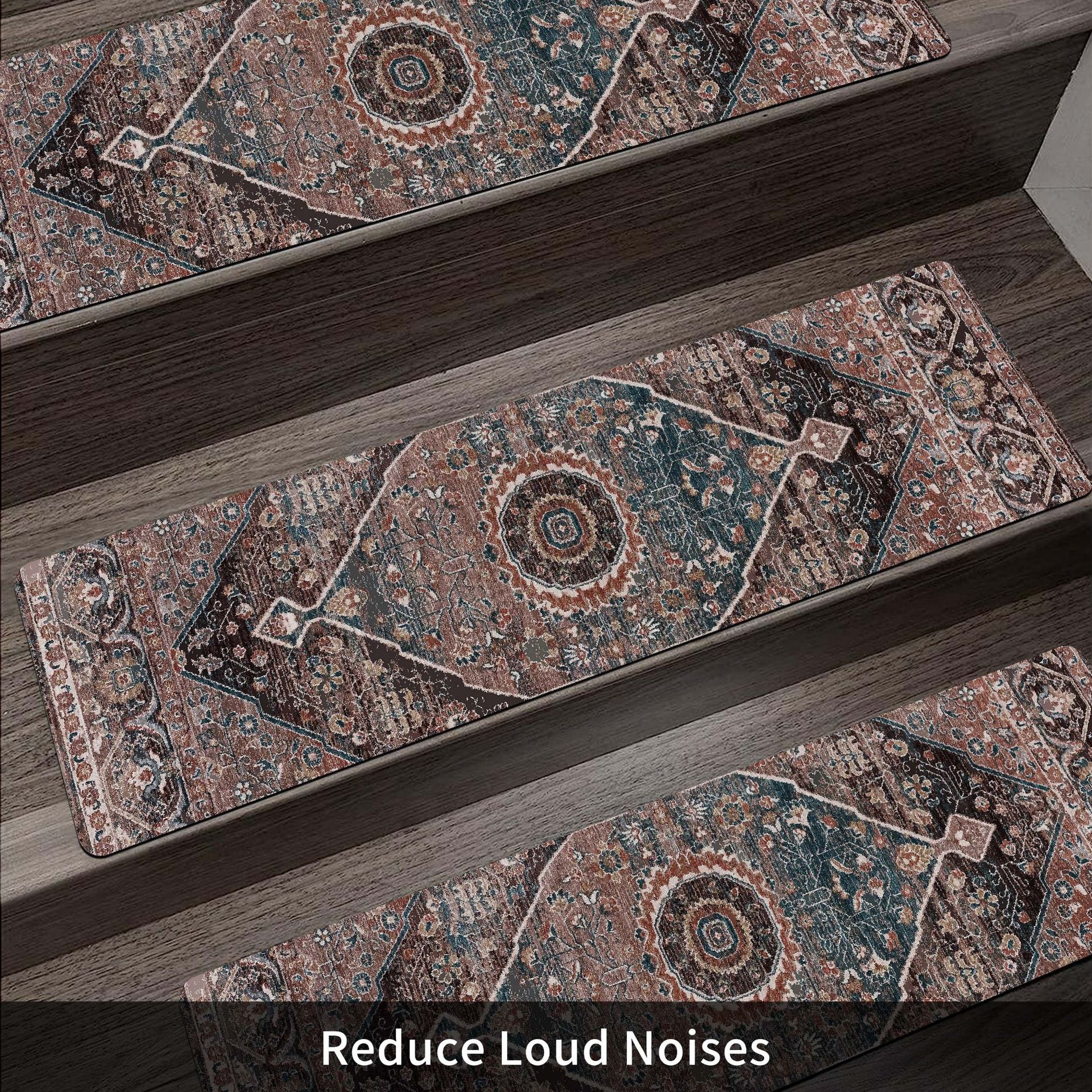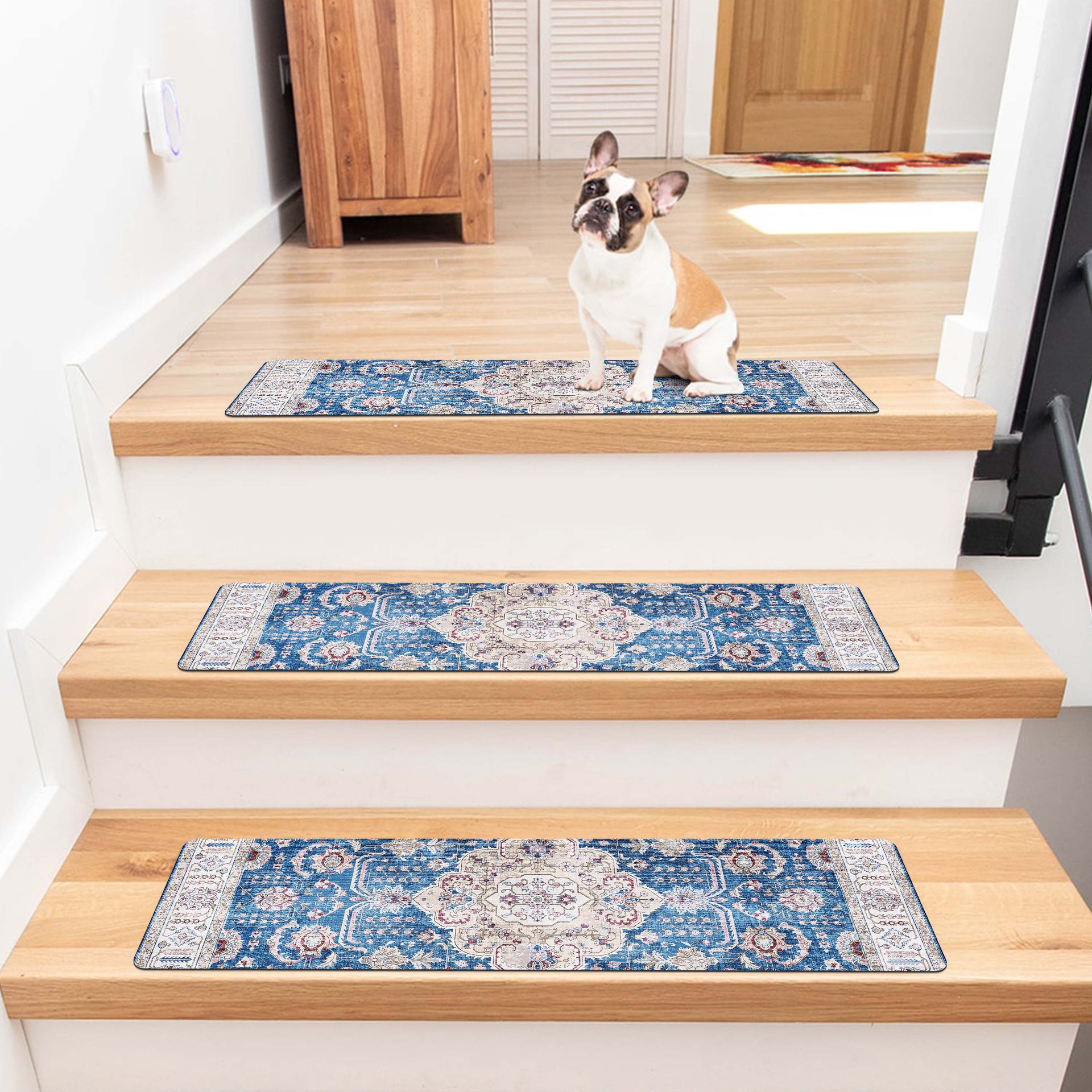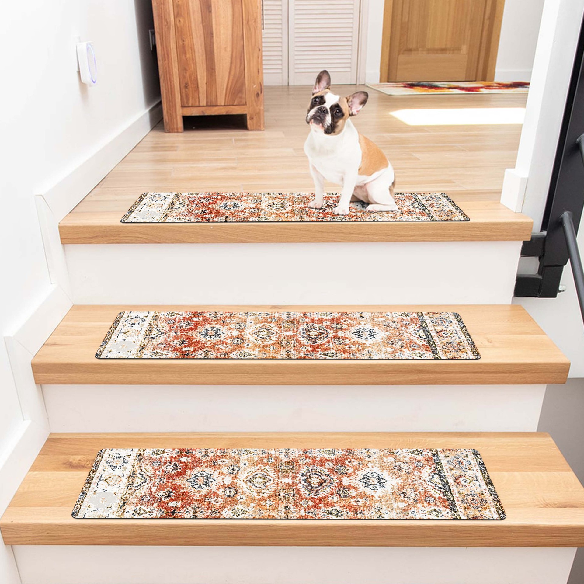 새로운 국경 클래식 패턴 인쇄 계단 매트 가정용 계단 단계 접착제가없는 자체 접착 TPR 얼룩 방지 미끄럼 방지 피트