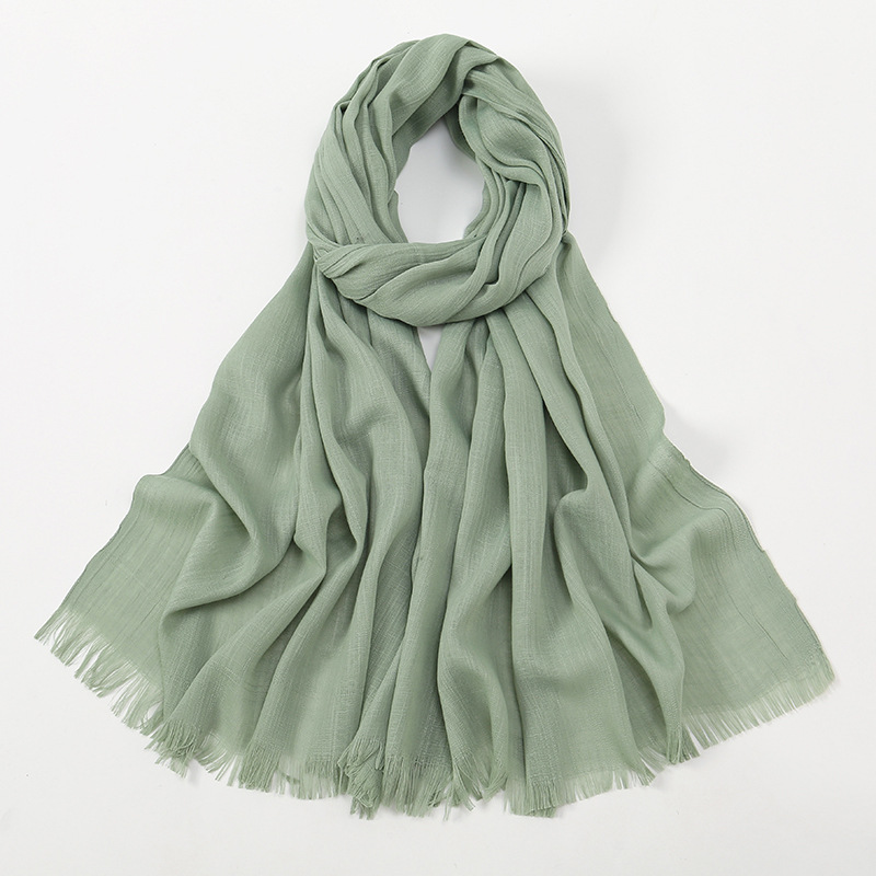 25년 전통 신주 면혼방 단색 스카프, 면과 린넨 느낌의 털가공 마감 여성용 헤드스카프, 사계절 활용 가능한 숄