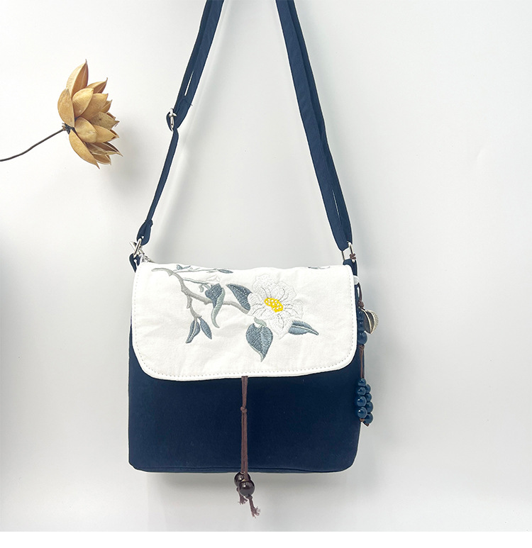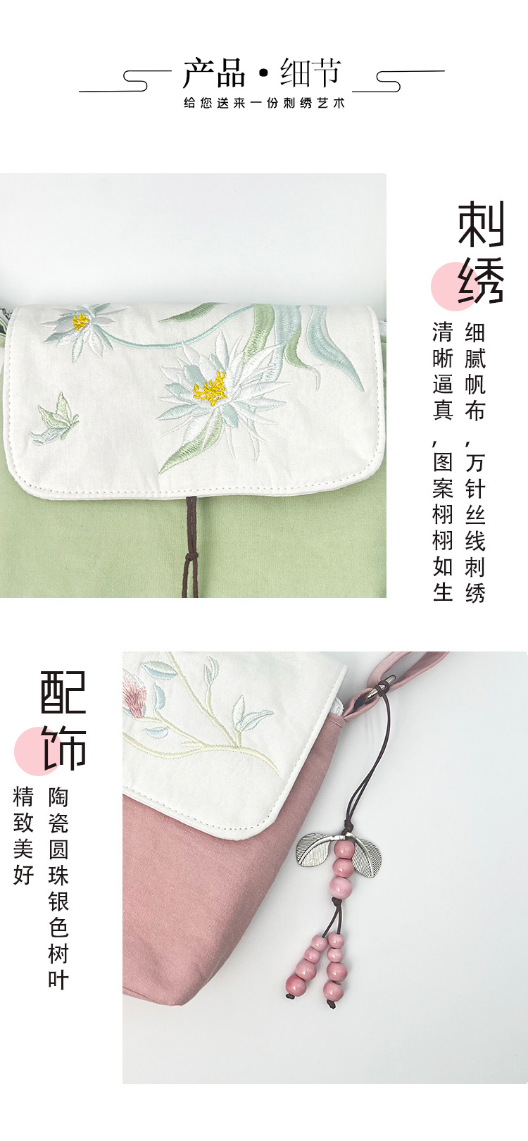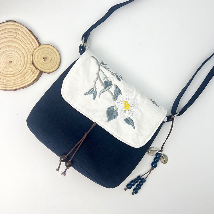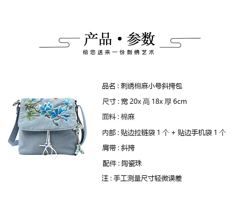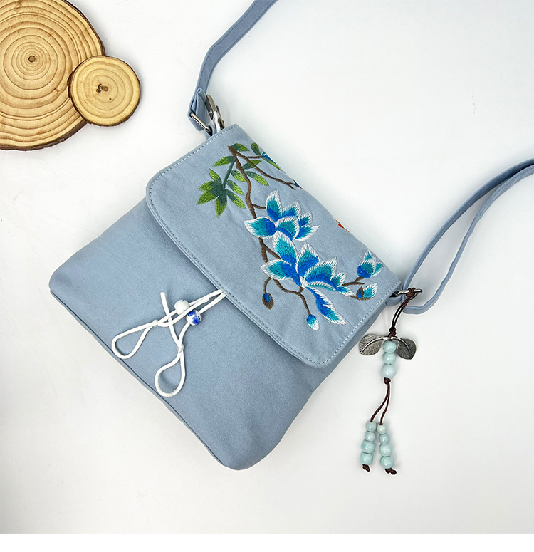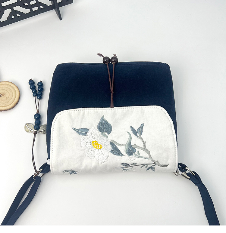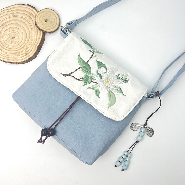 새로운 중국 스타일 여성 가방 면화 및 리넨 자수 크로스 바디 작은 스퀘어 가방 골동품 한 요소 틈새 예술적 올 매치 빈티지 휴대 전화 가방