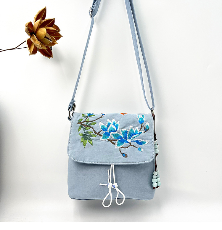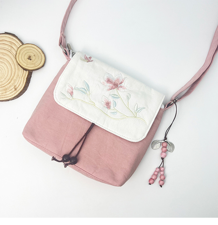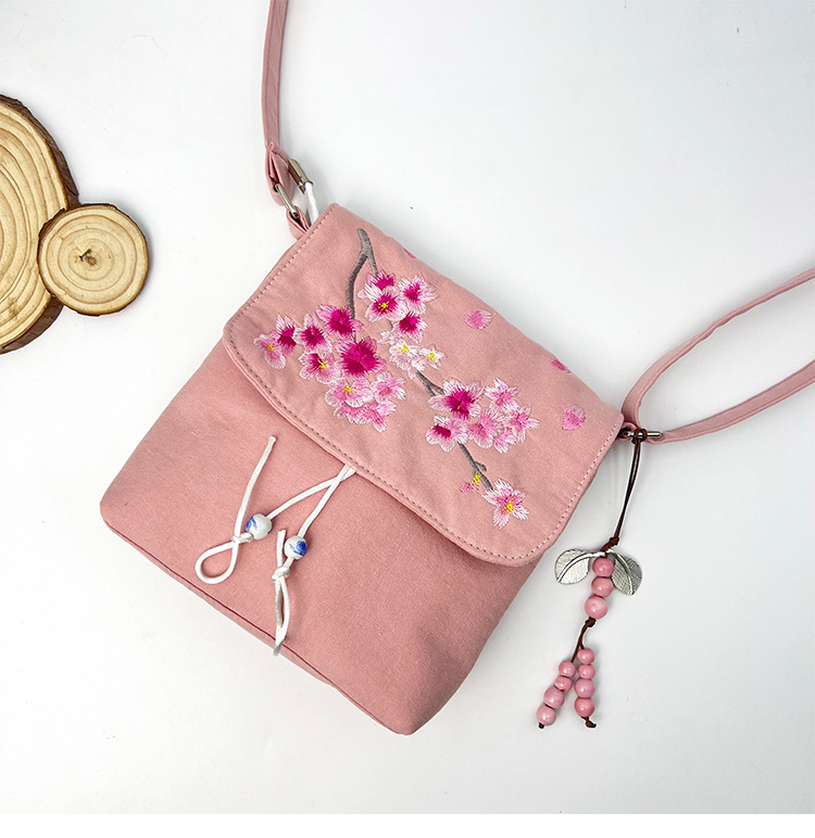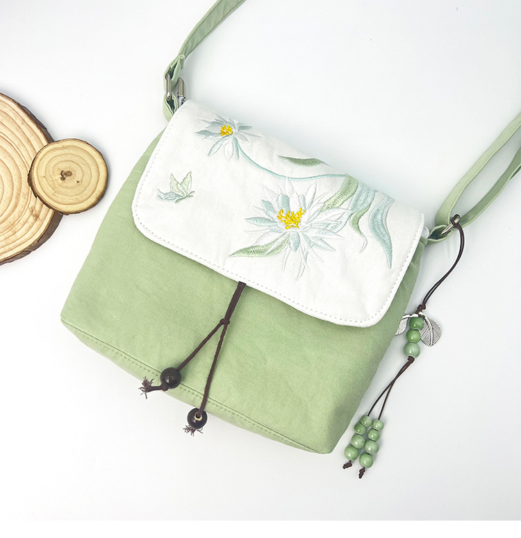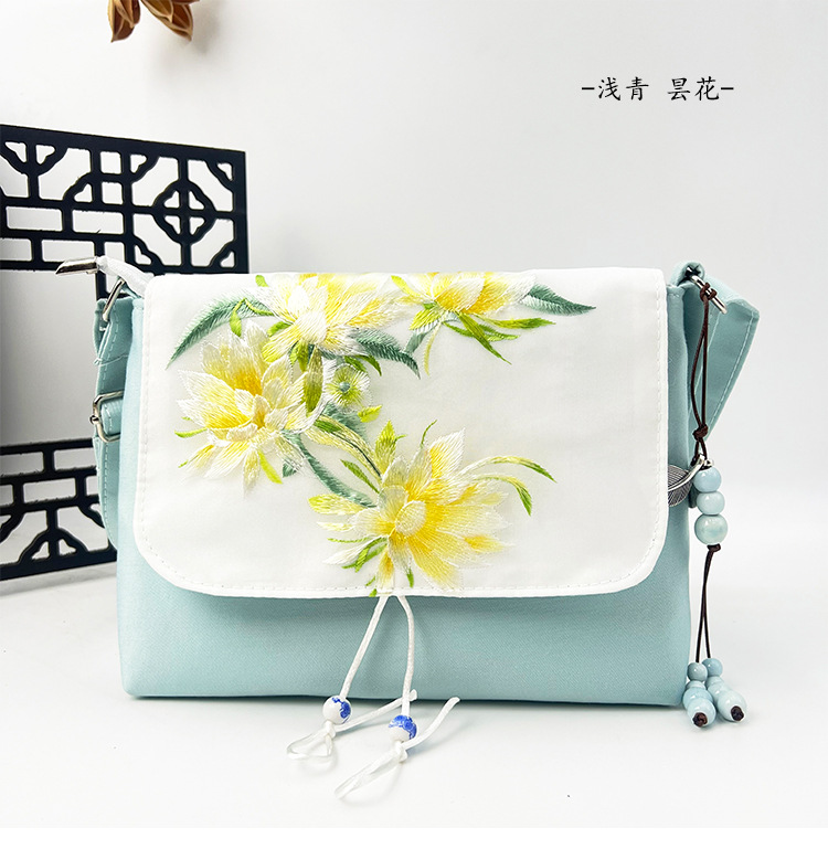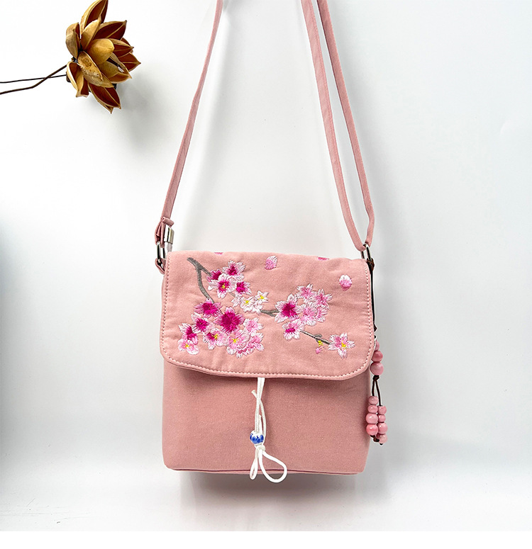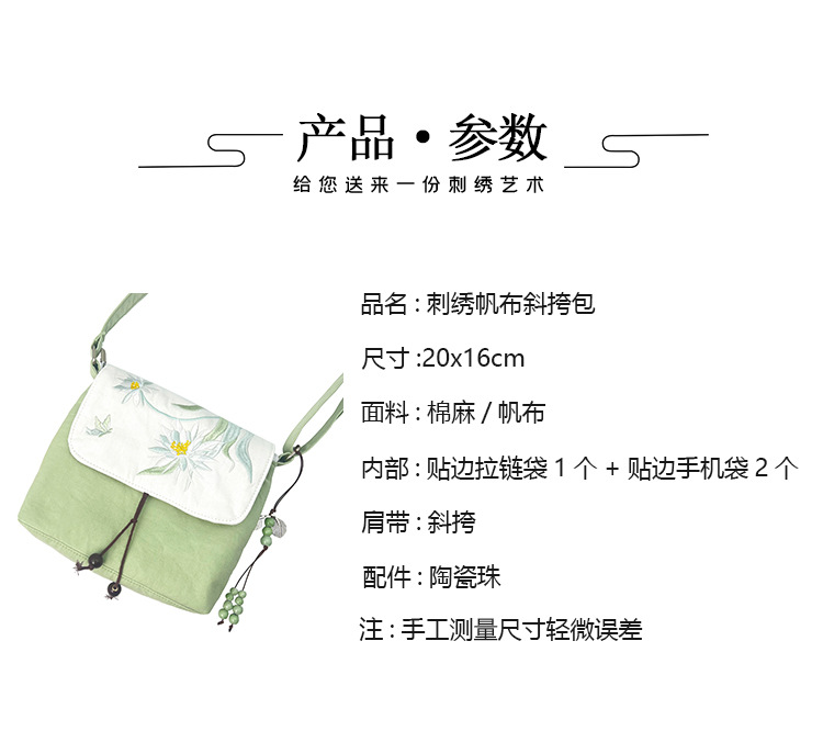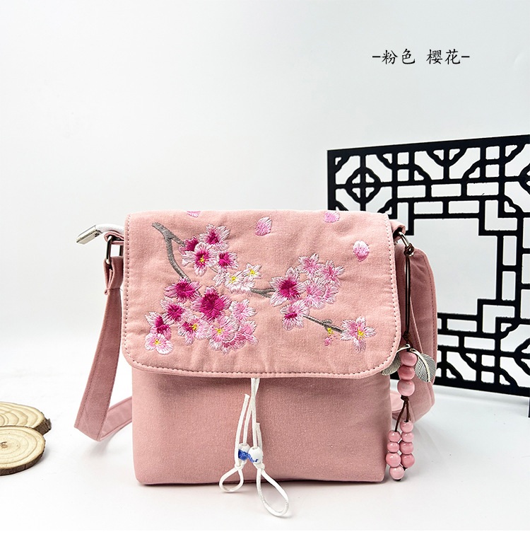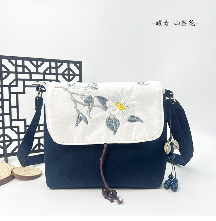 새로운 중국 스타일 여성 가방 면화 및 리넨 자수 크로스 바디 작은 스퀘어 가방 골동품 한 요소 틈새 예술적 올 매치 빈티지 휴대 전화 가방