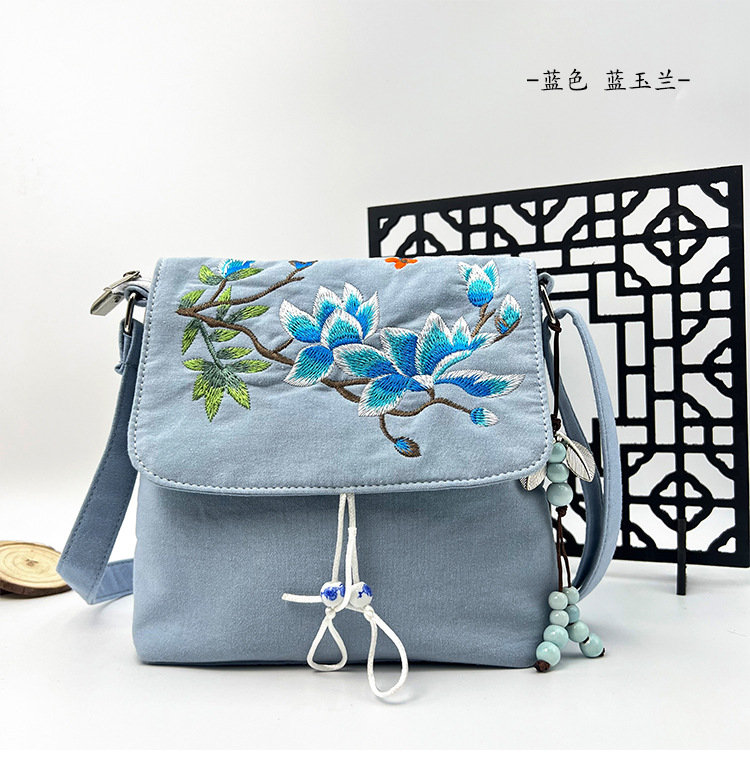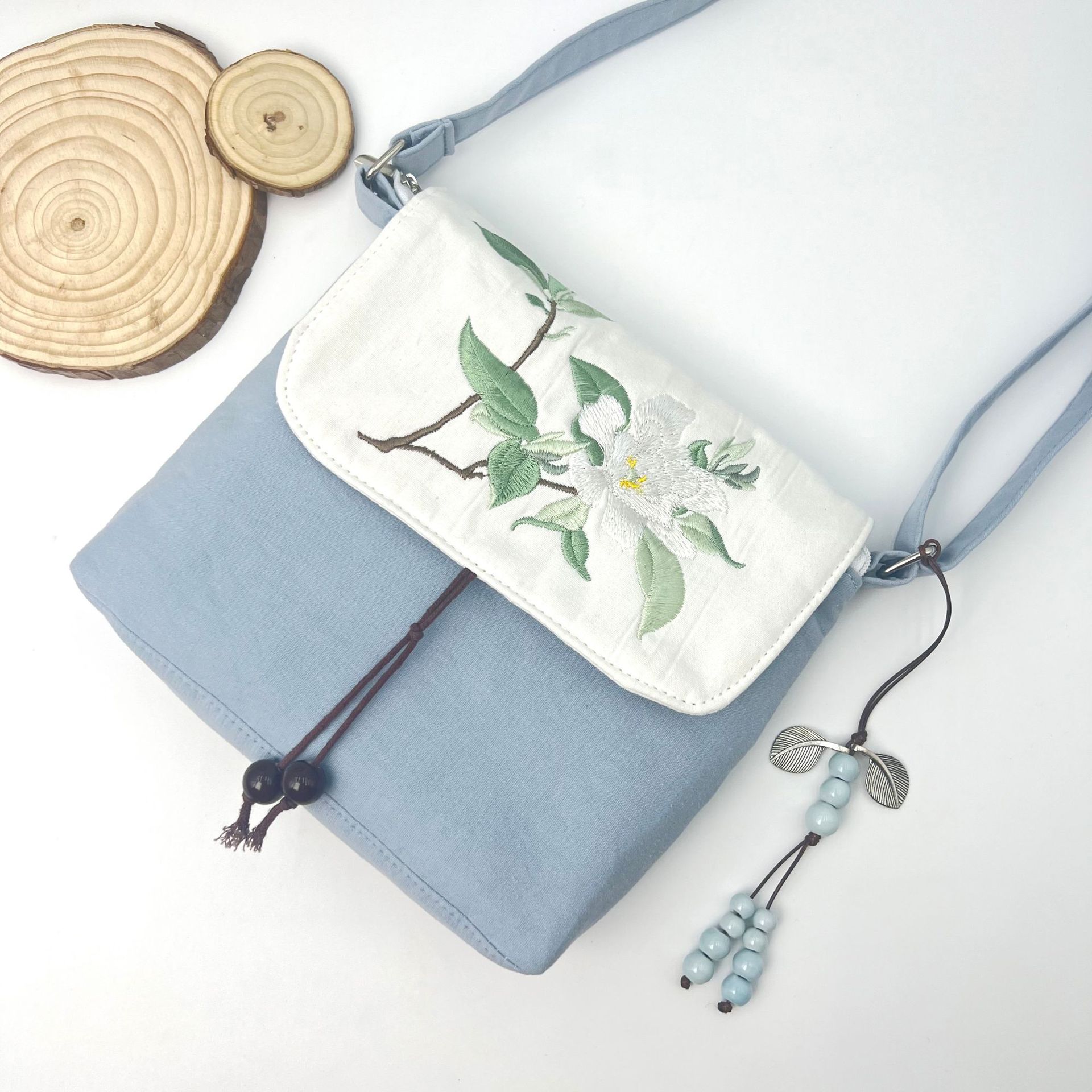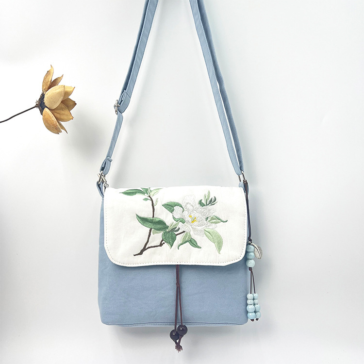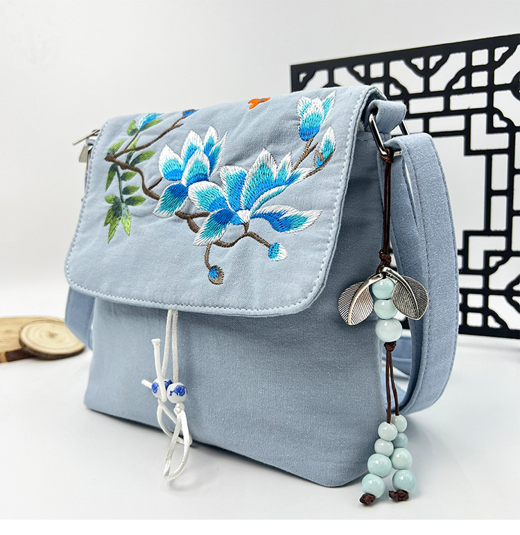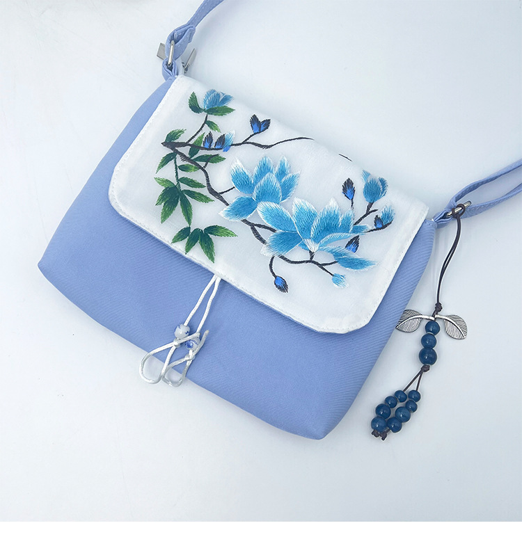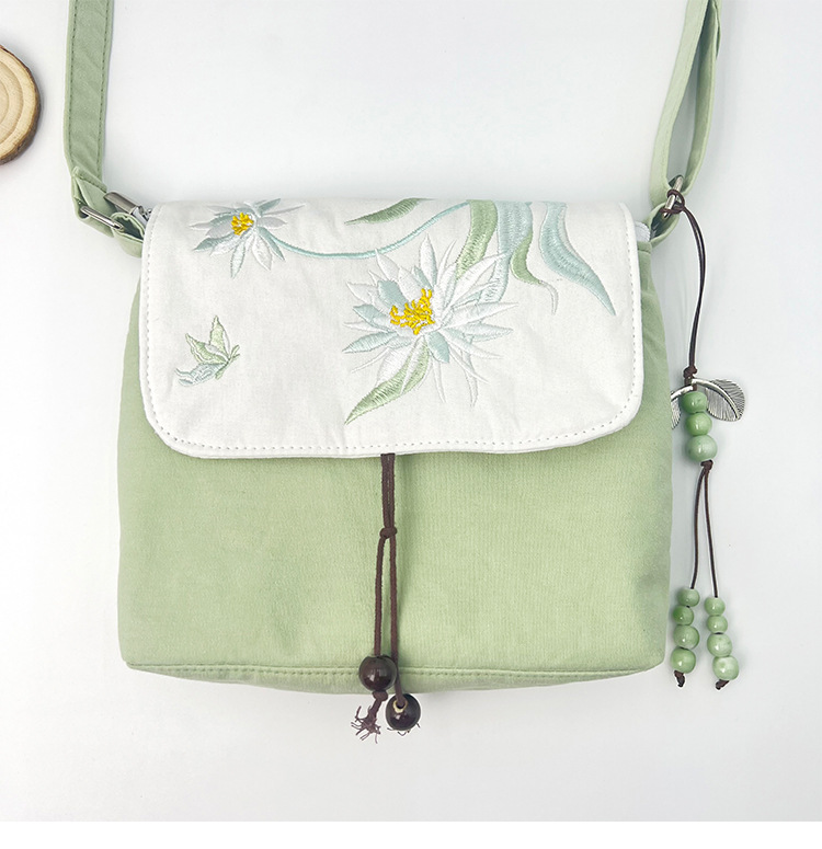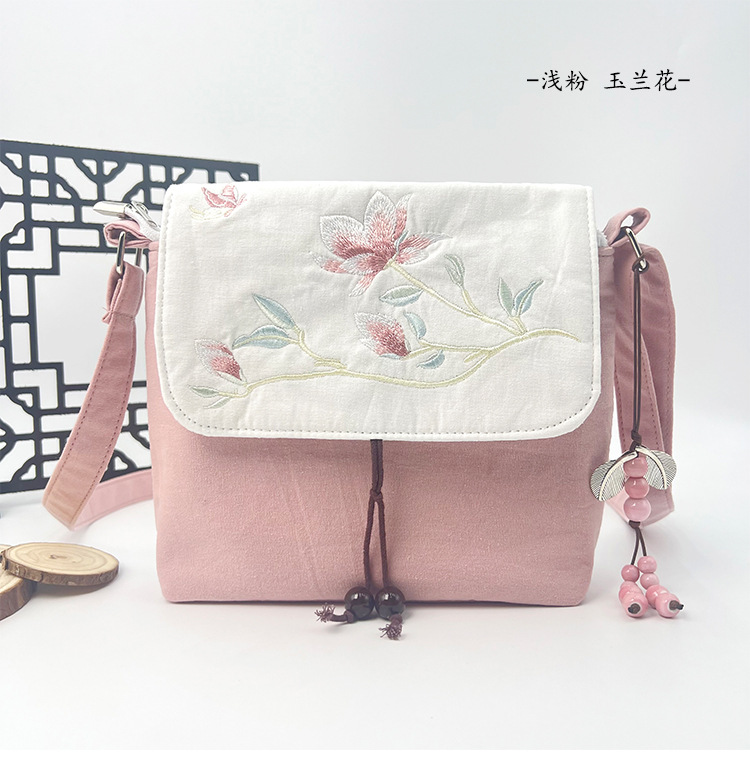 새로운 중국 스타일 여성 가방 면화 및 리넨 자수 크로스 바디 작은 스퀘어 가방 골동품 한 요소 틈새 예술적 올 매치 빈티지 휴대 전화 가방