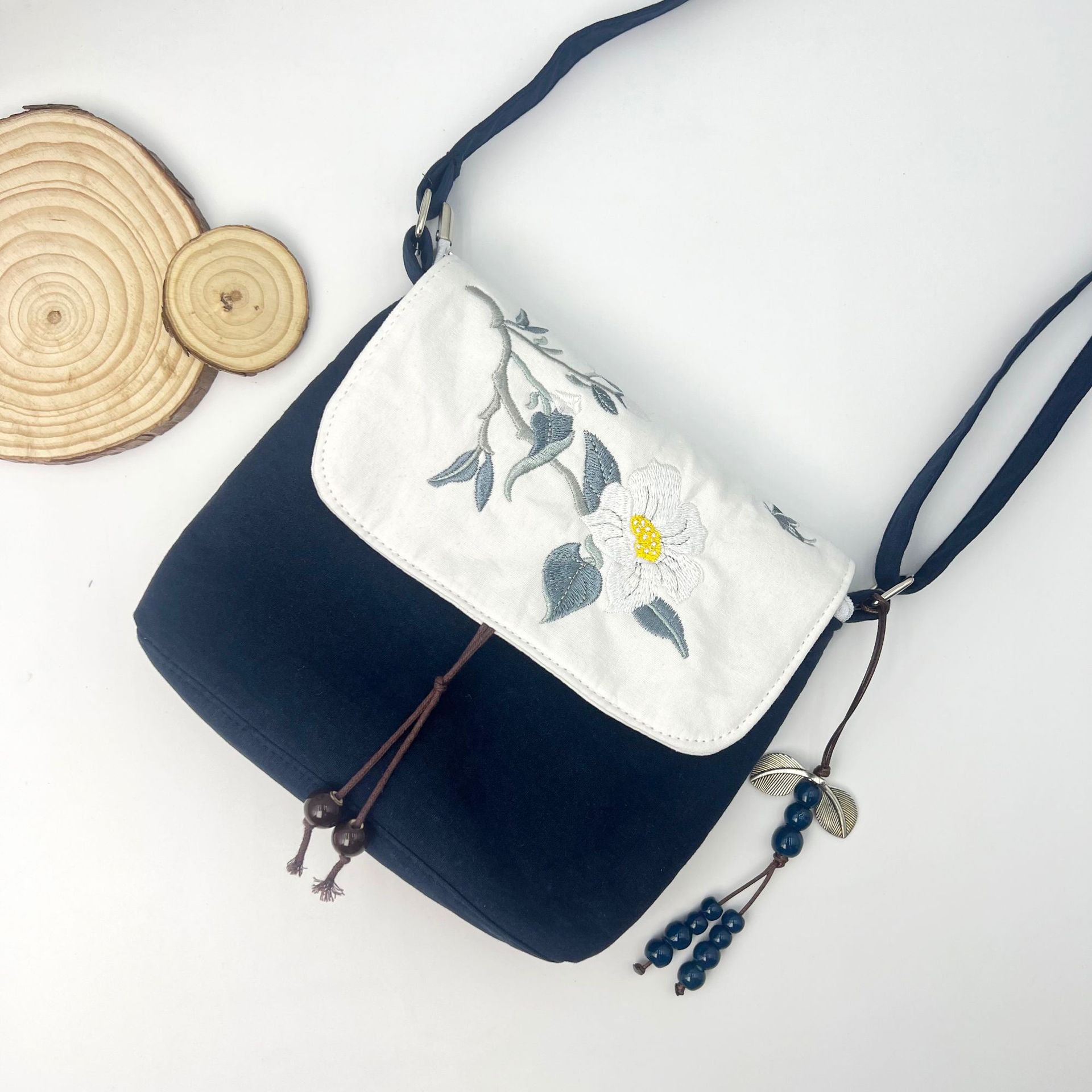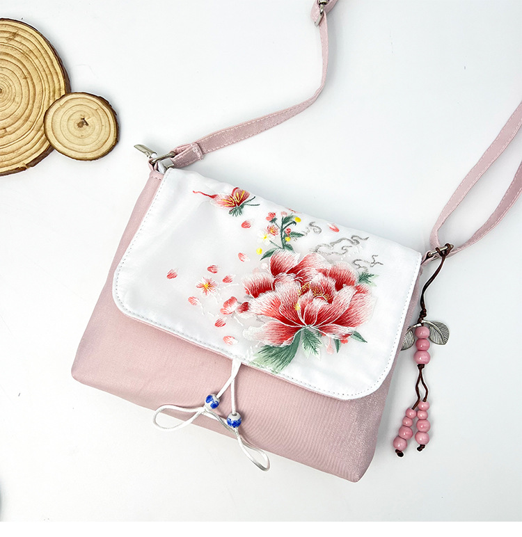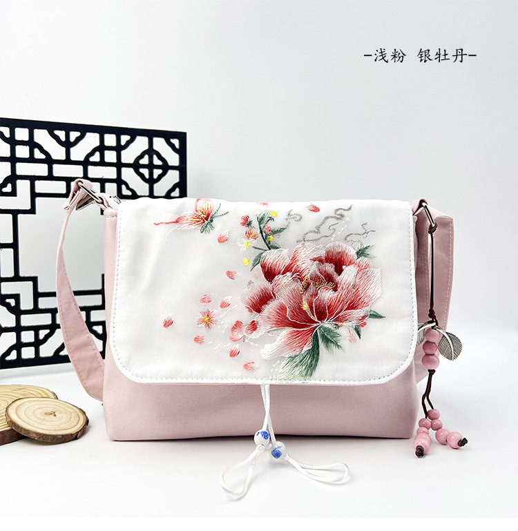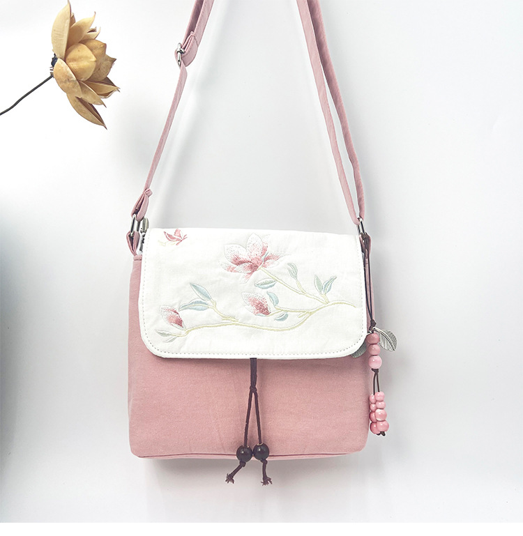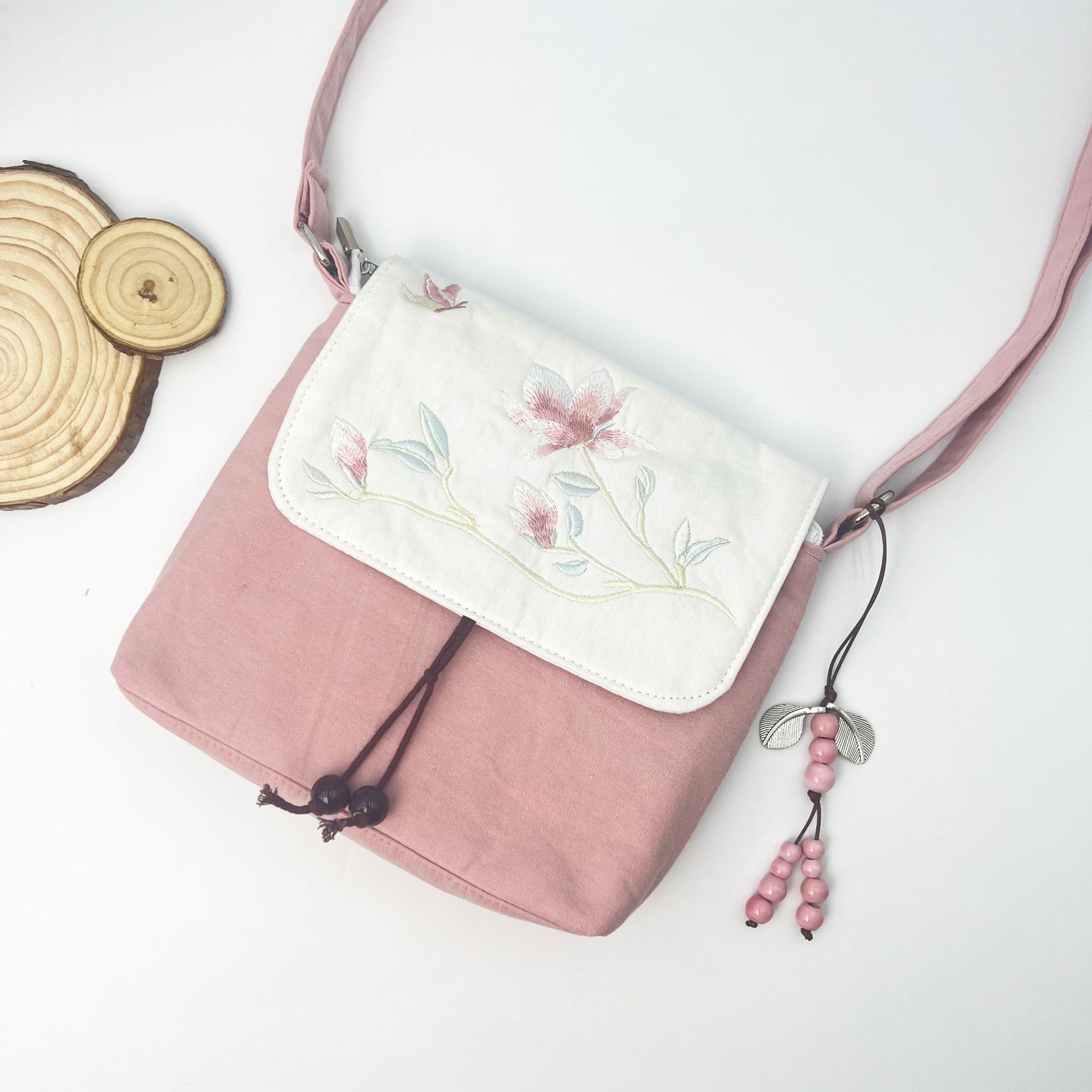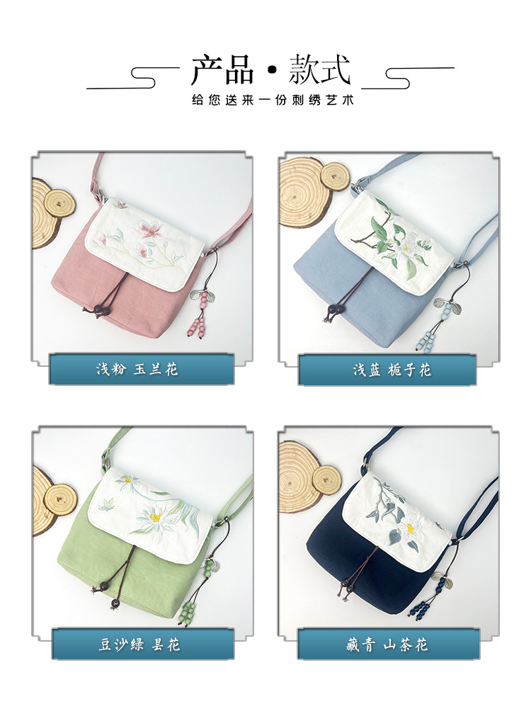 새로운 중국 스타일 여성 가방 면화 및 리넨 자수 크로스 바디 작은 스퀘어 가방 골동품 한 요소 틈새 예술적 올 매치 빈티지 휴대 전화 가방