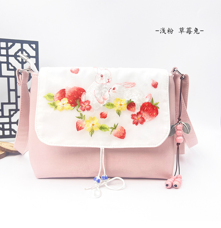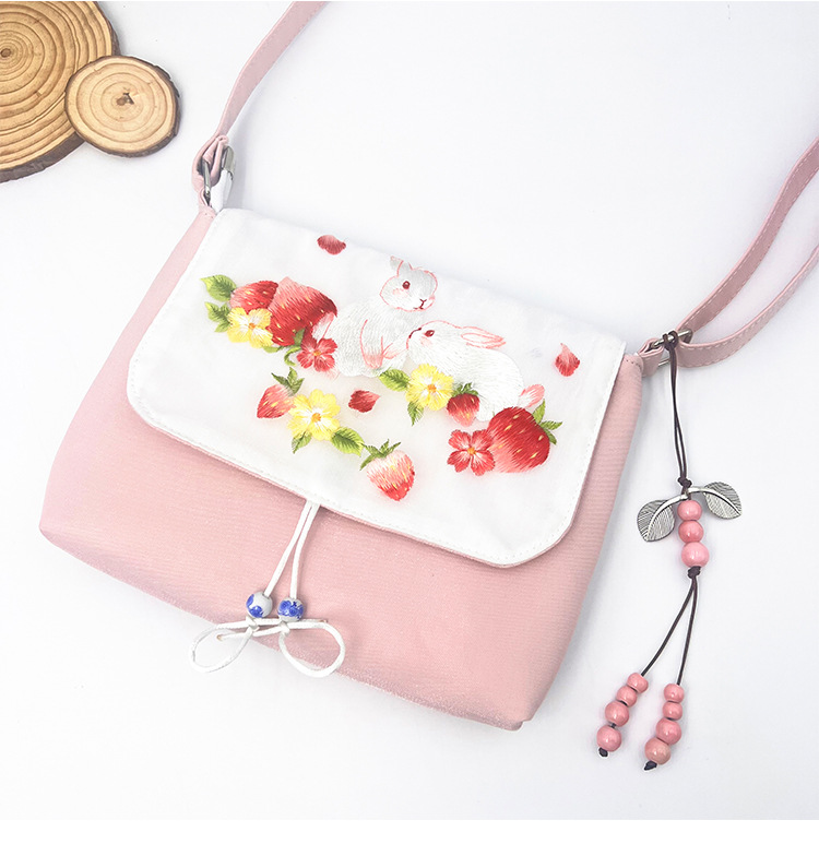 • 수 자수 가벼운 분말 밝은 실크 새틴 딸기 토끼 폭 23x 높이 19x 두께 3.5cm