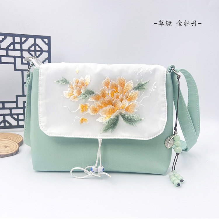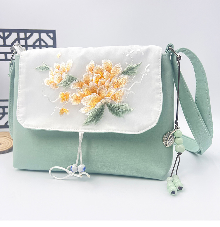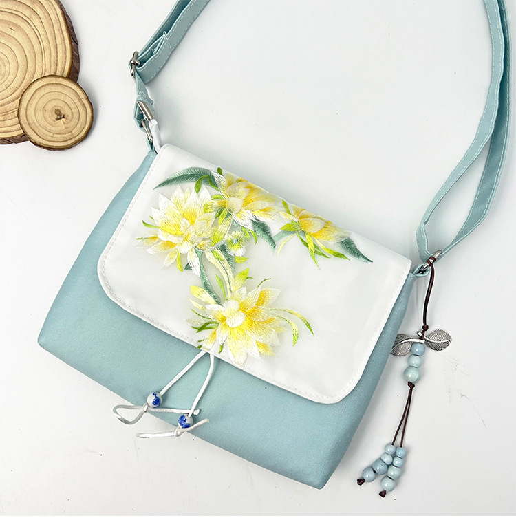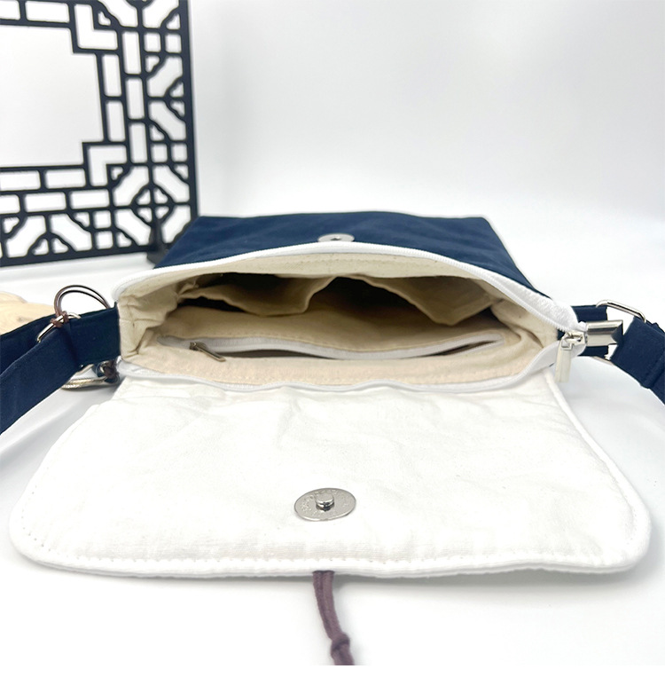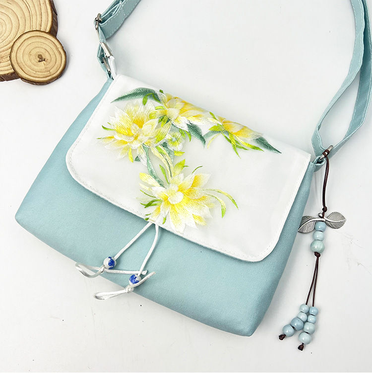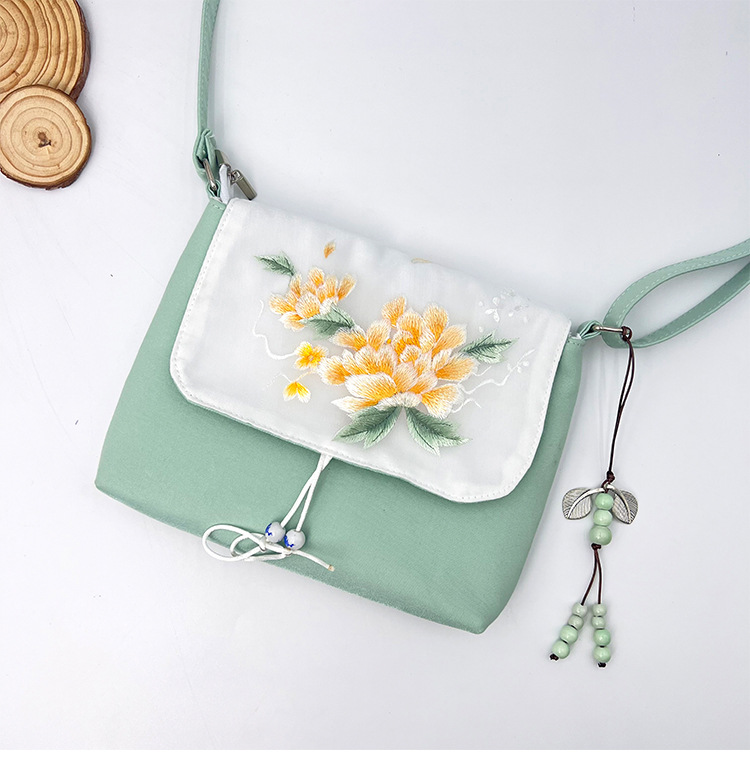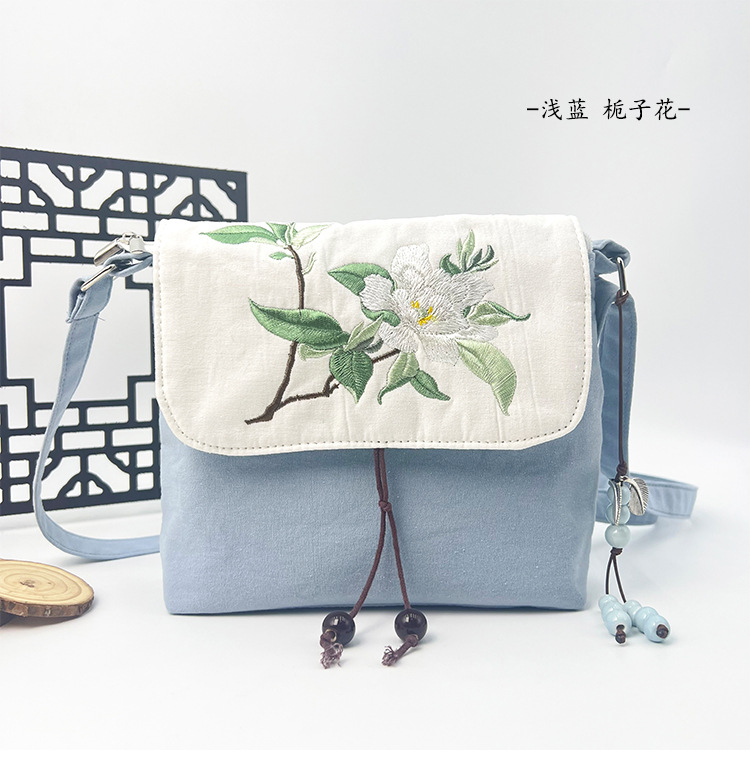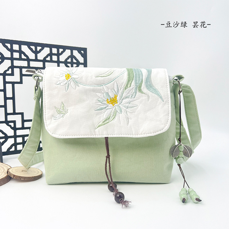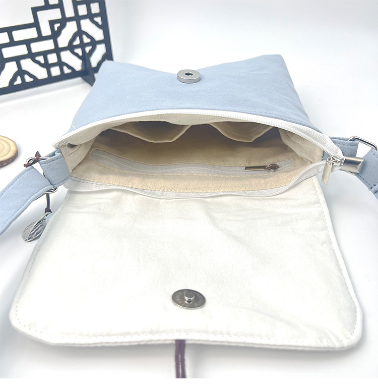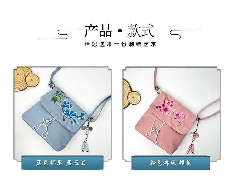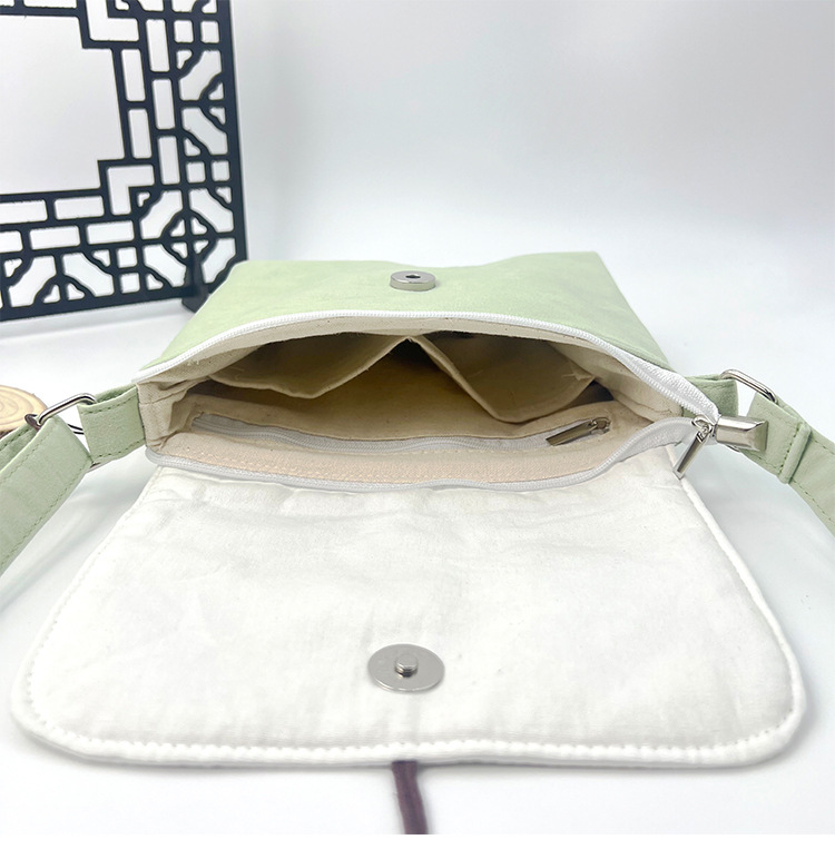 새로운 중국 스타일 여성 가방 면화 및 리넨 자수 크로스 바디 작은 스퀘어 가방 골동품 한 요소 틈새 예술적 올 매치 빈티지 휴대 전화 가방스토어 가기