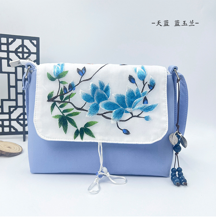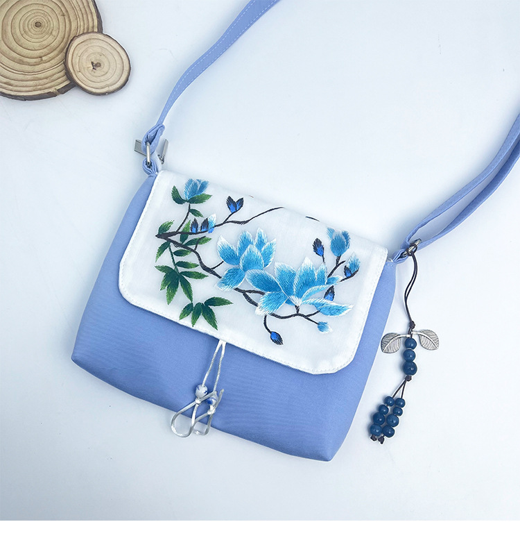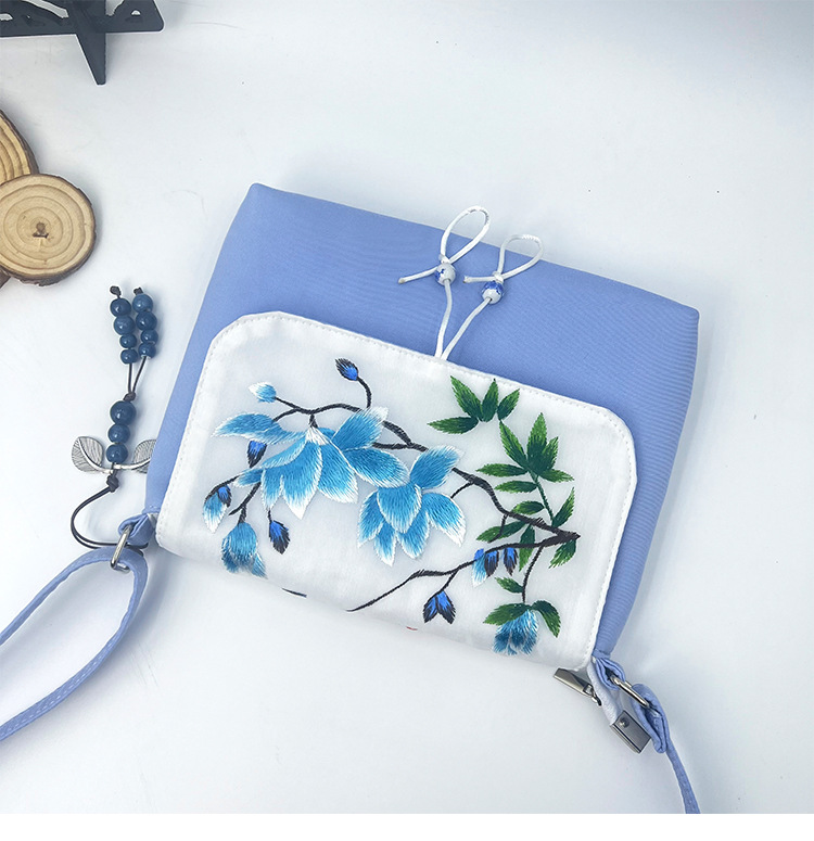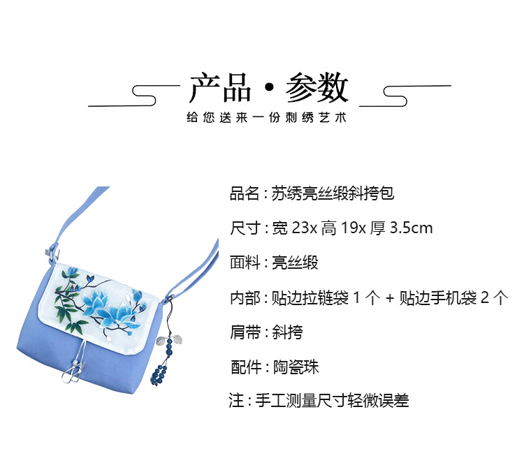 • 수 자수 하늘색 실크 새틴 블루 목련 폭 23x 높이 19x 두께 3.5cm