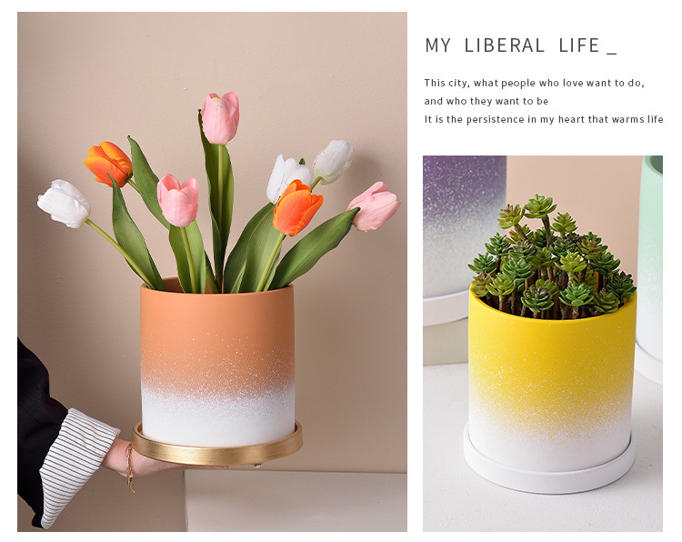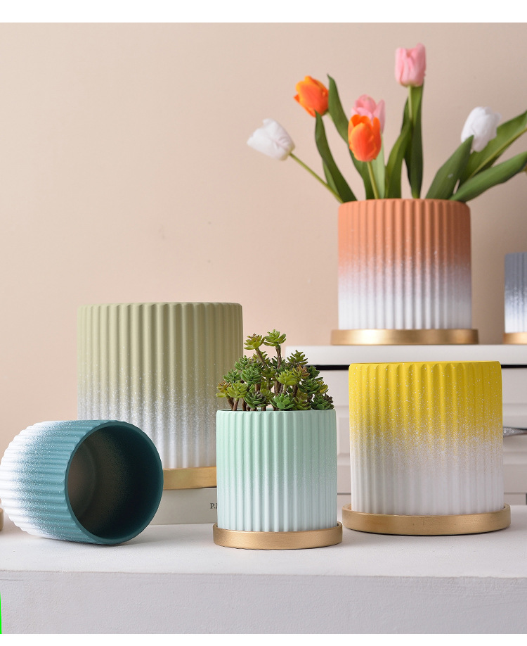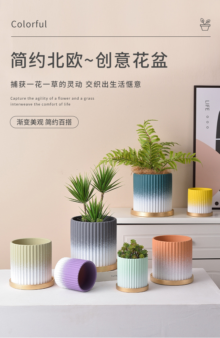 꽃 냄비 북유럽 간단한 창조적 인 개인 화분 세라믹 다육 녹색 장미 가정용 대형 공장 도매 트레이