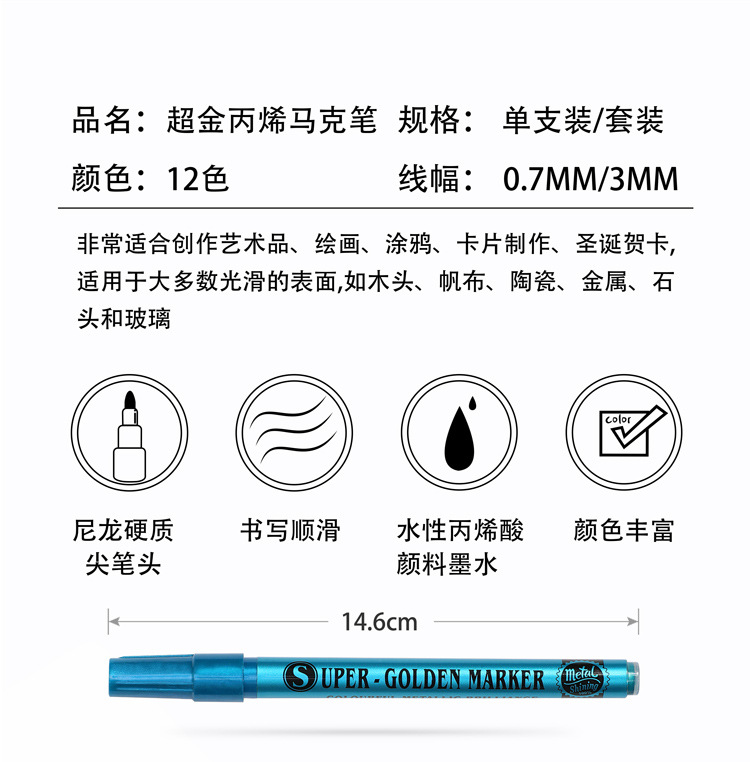 광나 1103 얇은 막대 0.7 펜촉 슈퍼 골드 수성 아크릴 안료 마커 모델 낙서 아트 펜