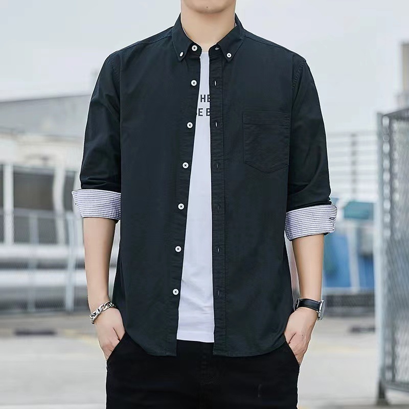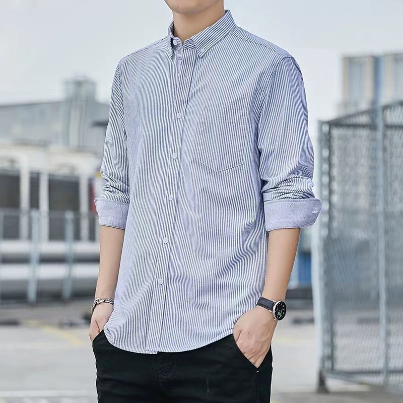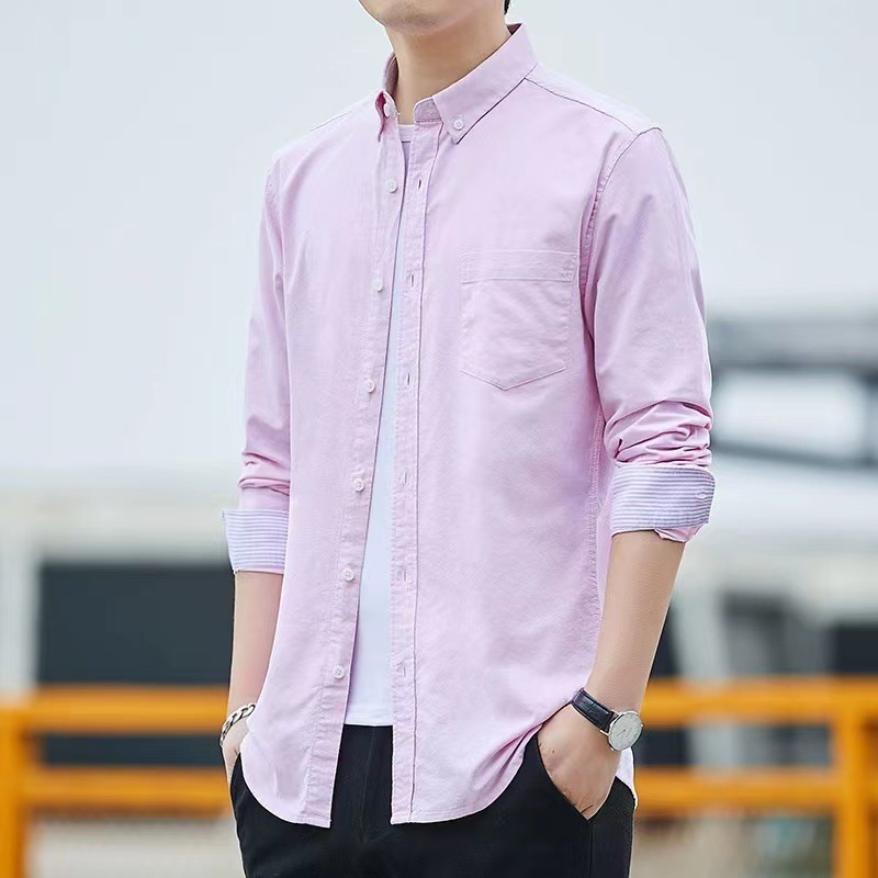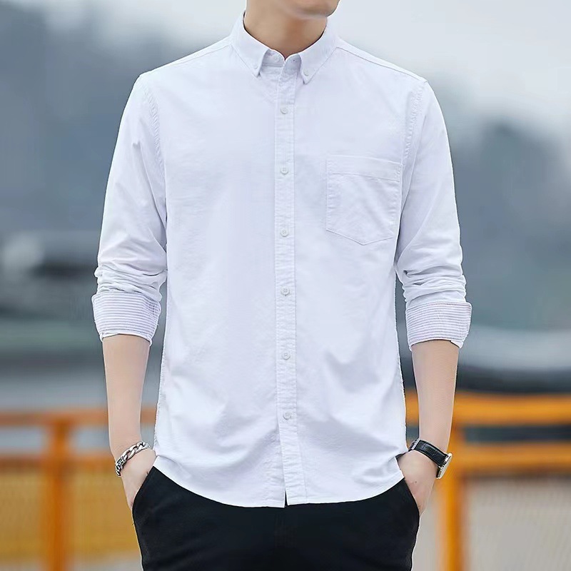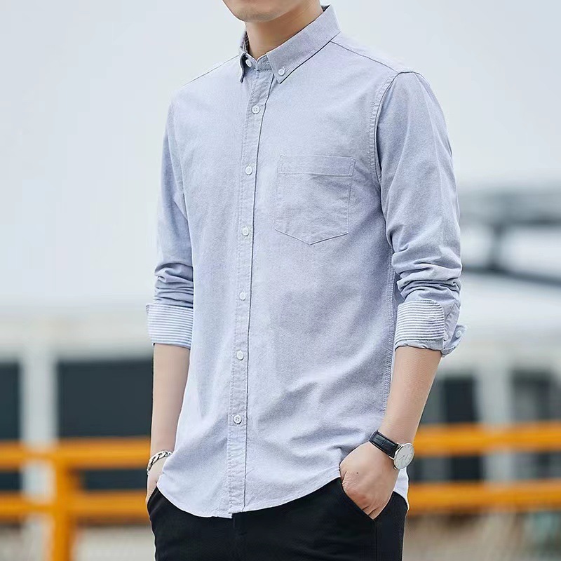 2024 신상 순면 옥스포드 긴팔 셔츠 남성 봄 가을 비즈니스 캐주얼 면 셔츠 슬림핏 남성복스토어 가기