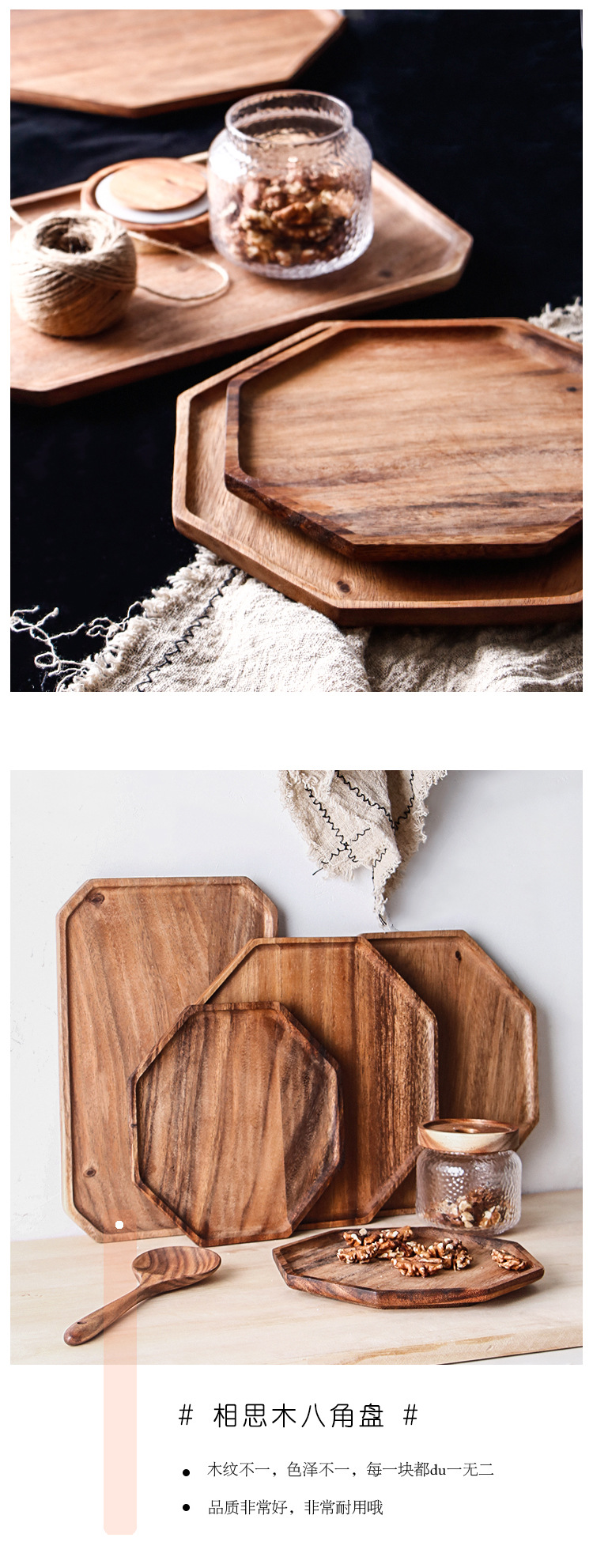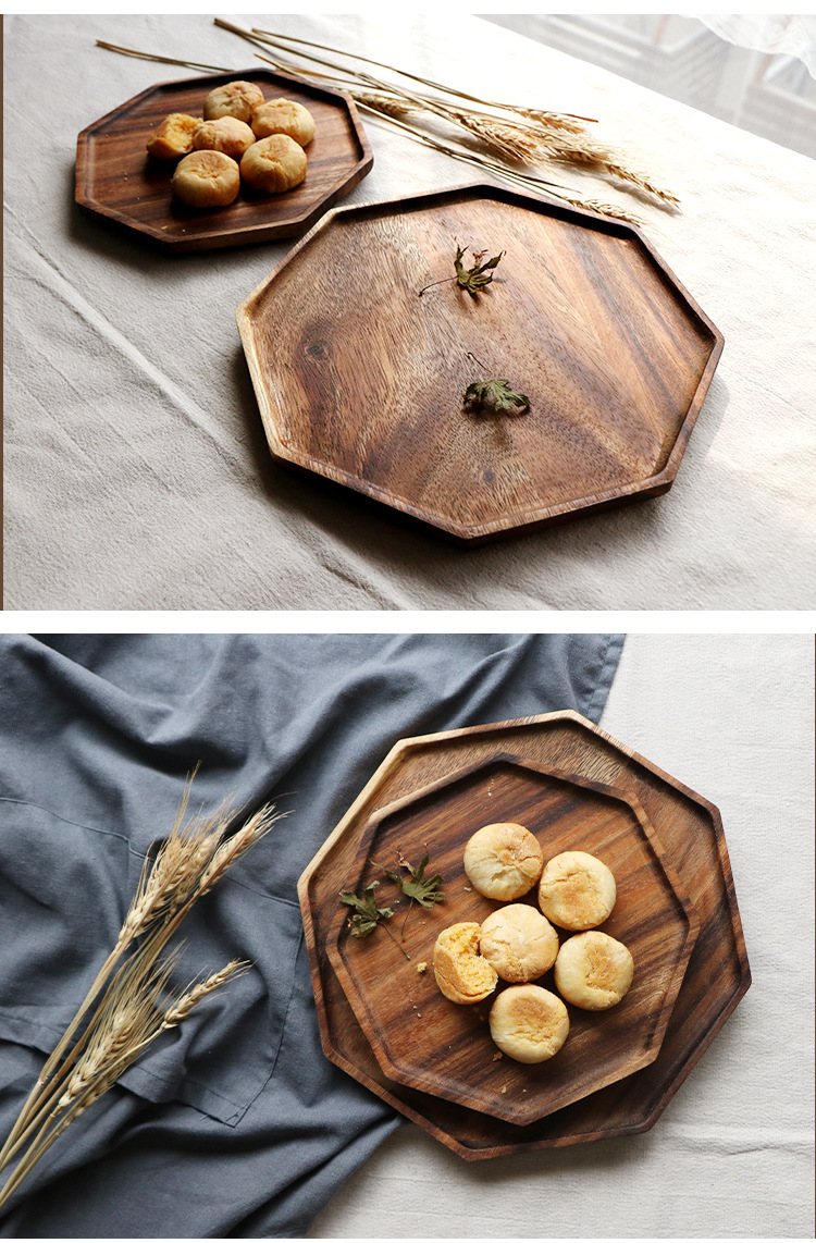 단단한 나무 접시 접시 나무 쟁반 디스크 가정용 원형 직사각형 디너 플레이트 과일 간식 아침 식사 접시 아카시아 나무