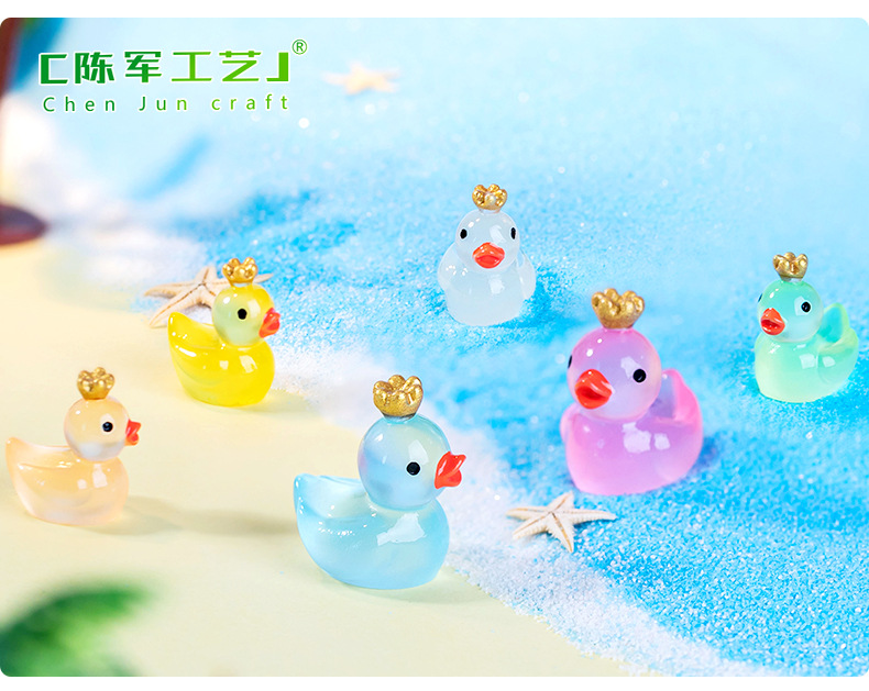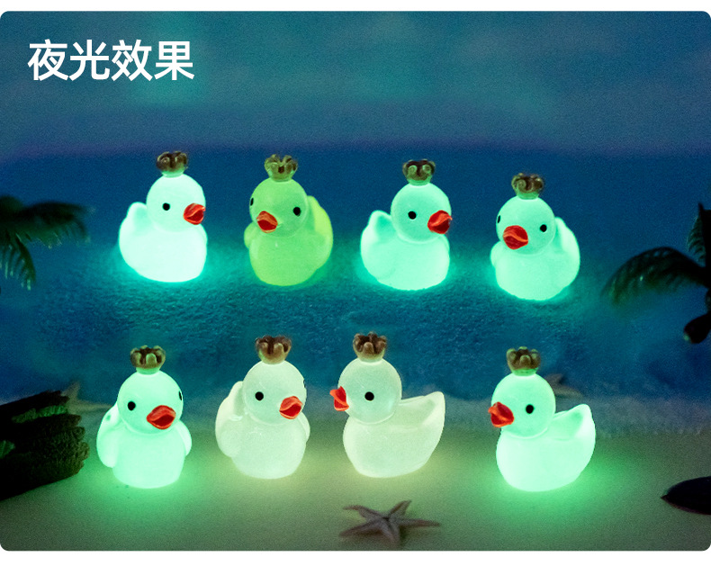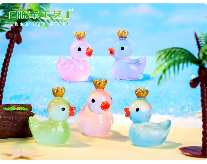 빛나는 왕관 큰 노란색 오리 작은 오리 인형 이끼 물고기 탱크 조경 장식 액세서리 마이크로 풍경 작은 장식품