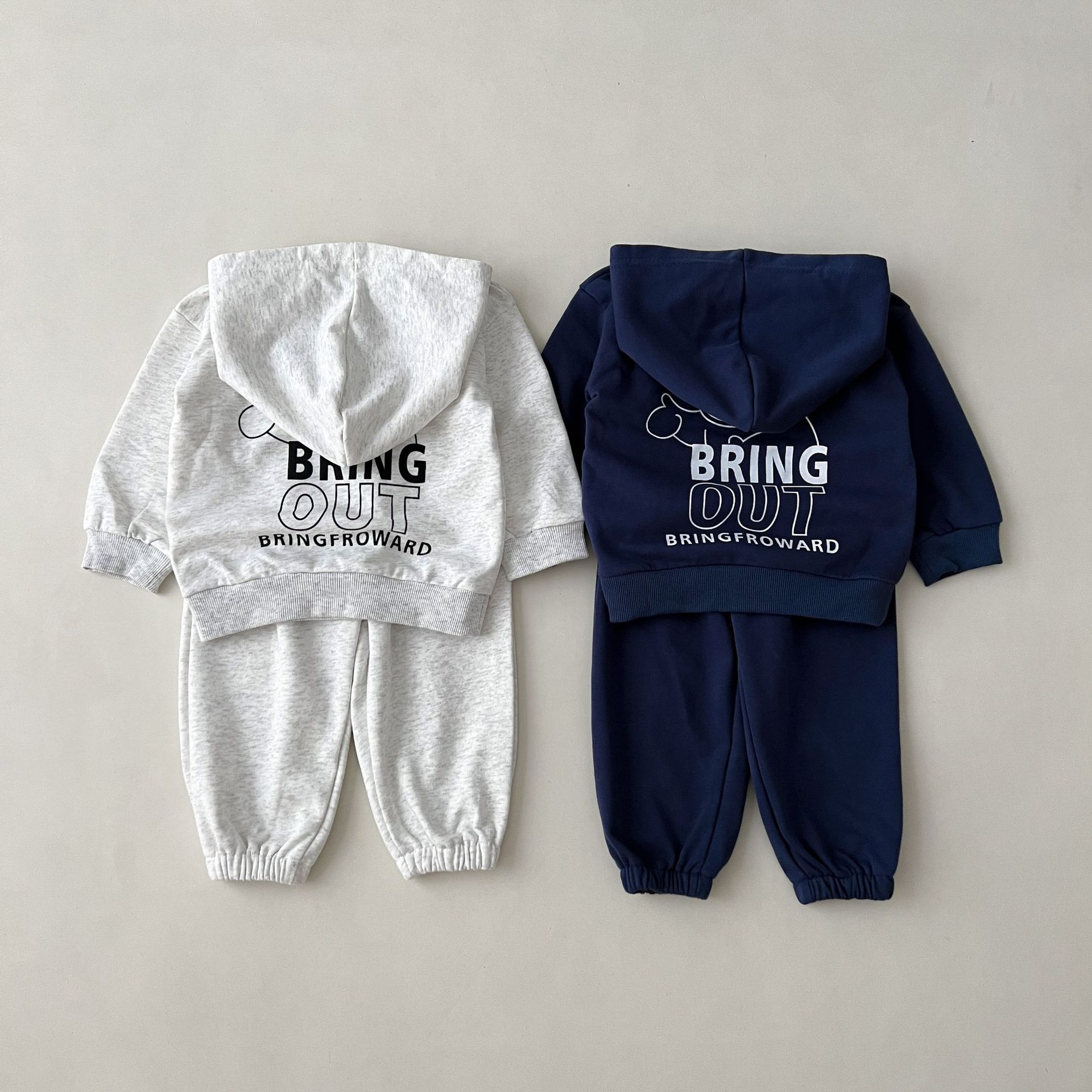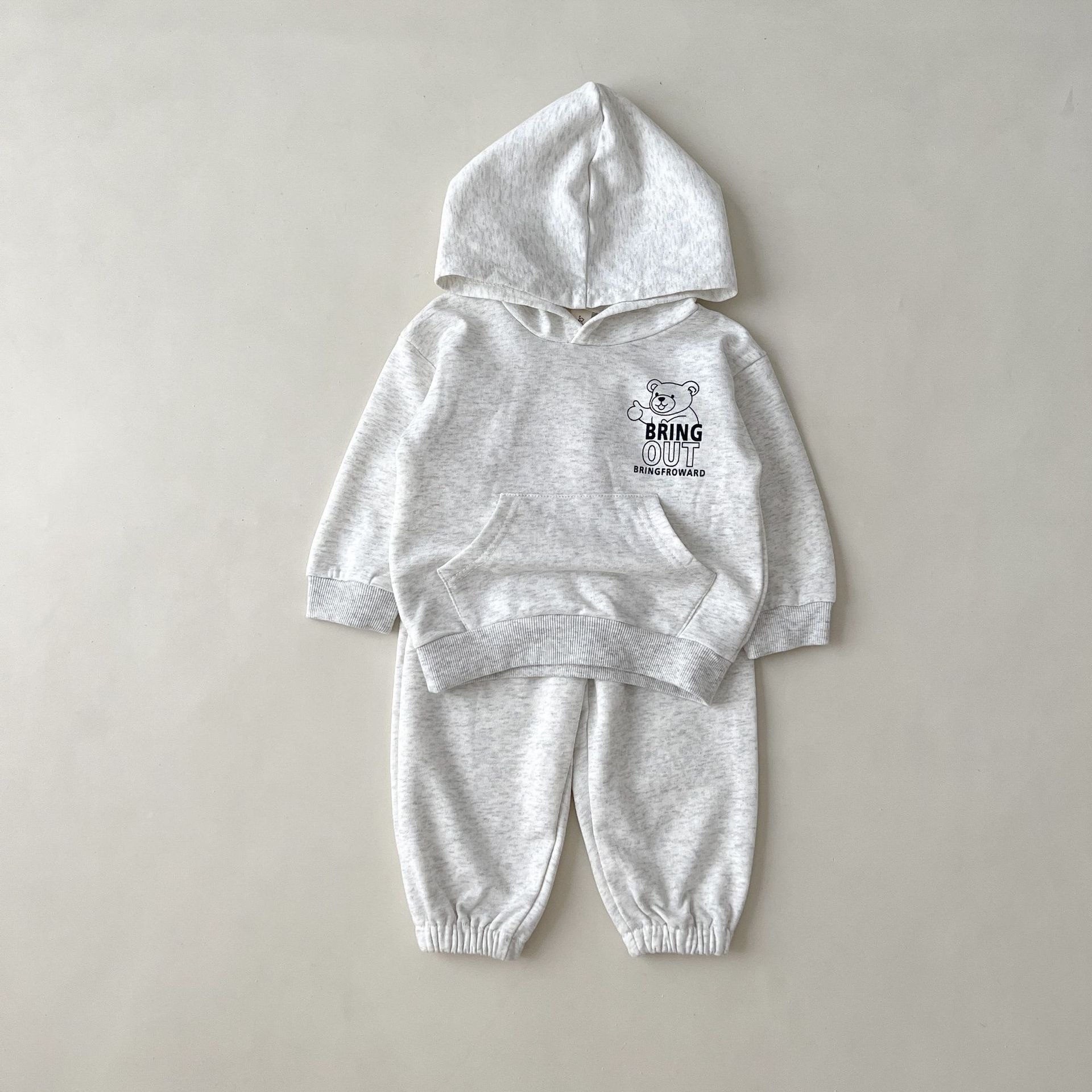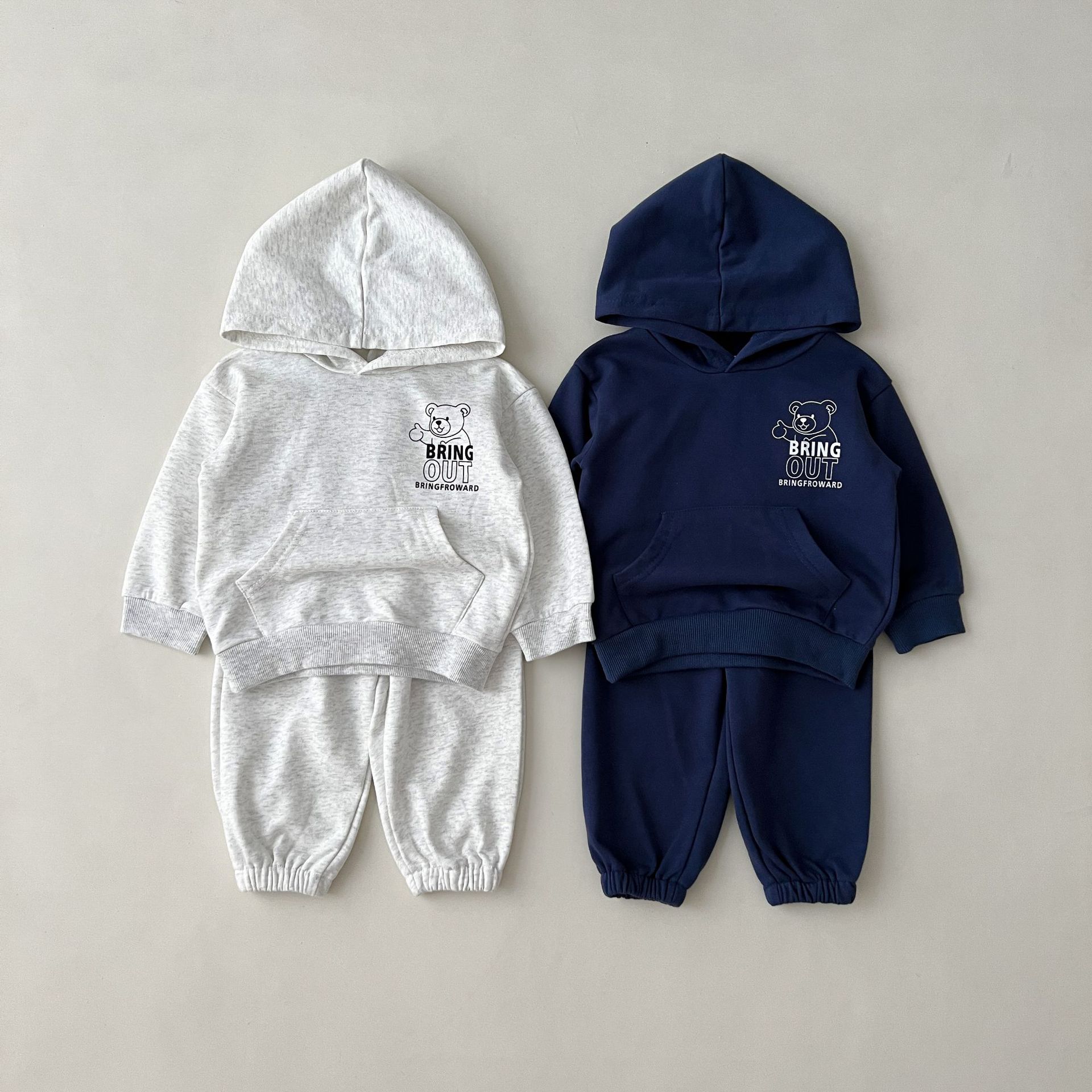 의 가을 한국어 버전 아동복 세트 2023 새로운 큰 포켓 후드 스웨터 곰 아기 소년과 소녀 투피스 세트스토어 가기
