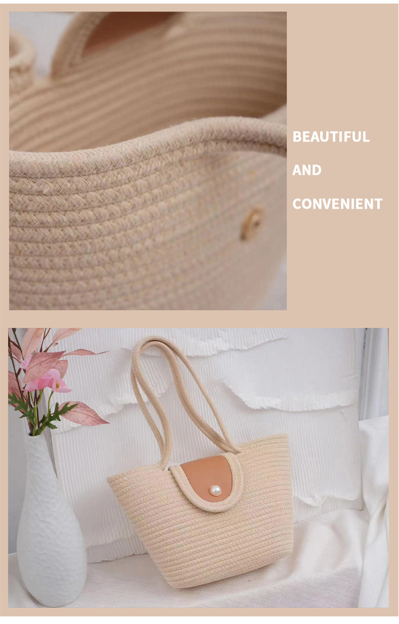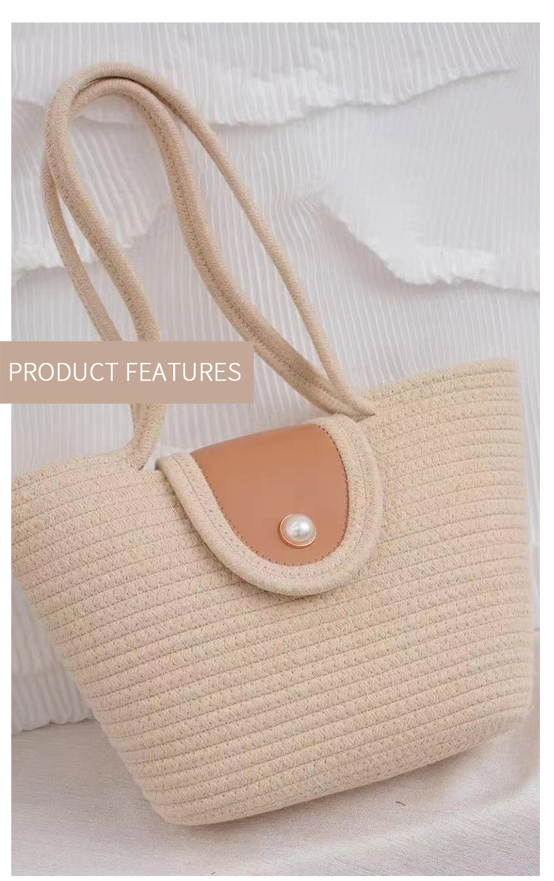 새로운 다용도 짠 가방 베이지 심플 대용량 겨드랑이 가방 면사 핸드메이드 숄더백스토어 가기