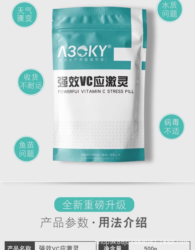 Vc 잉질링 양식 특수 비타민 C 생선 비타민 C 정제 수생 전기 분해 다차원 안티 스트레스 솔루션