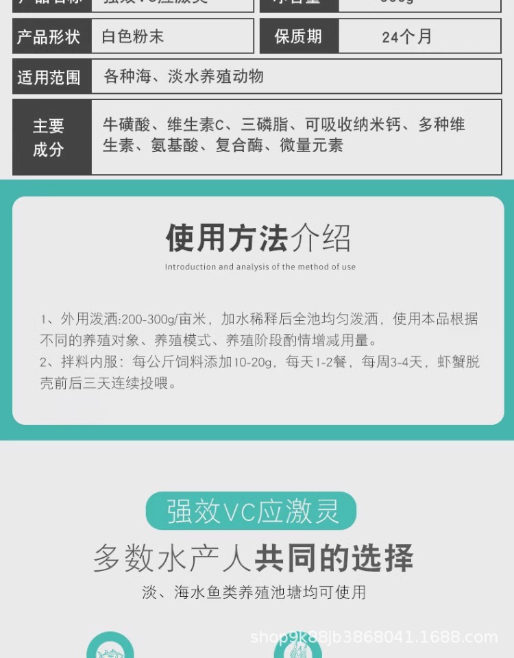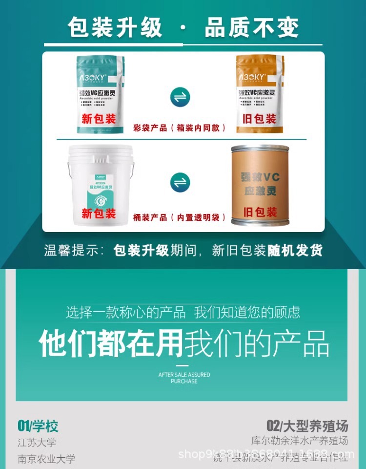 Vc 잉질링 양식 특수 비타민 C 생선 비타민 C 정제 수생 전기 분해 다차원 안티 스트레스 솔루션스토어 가기