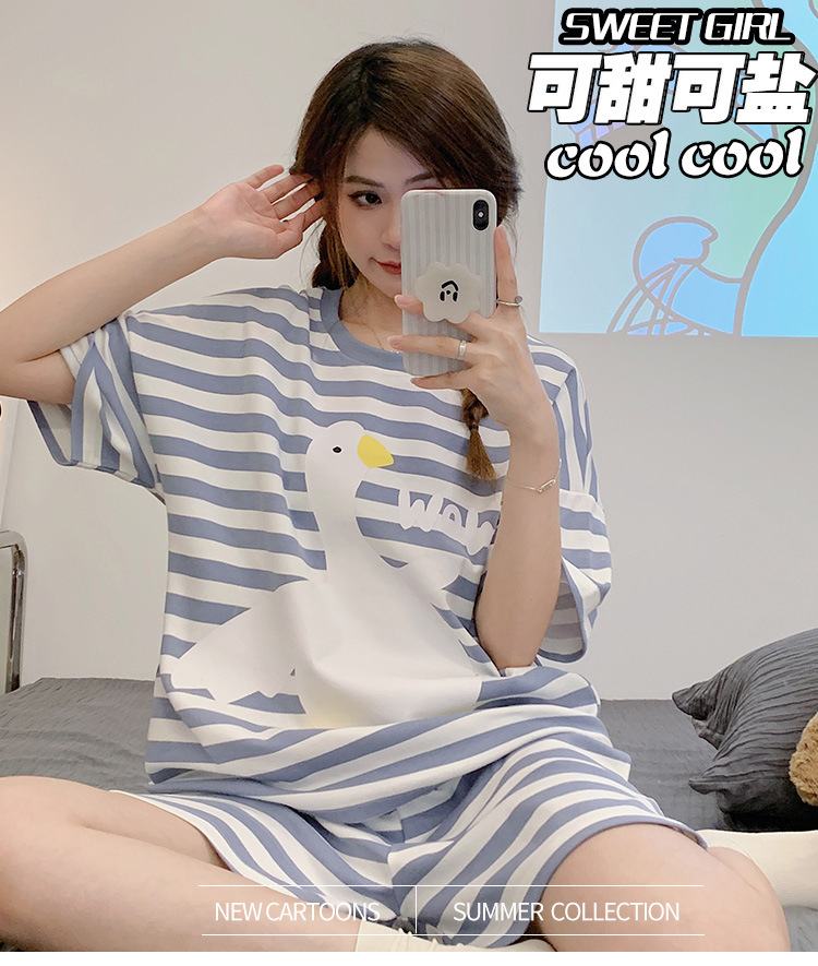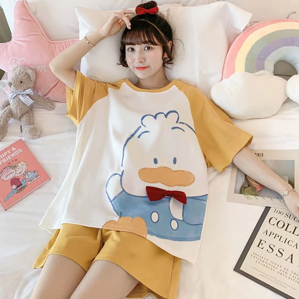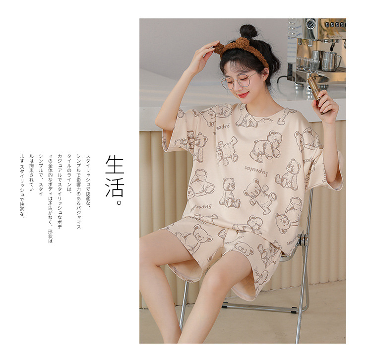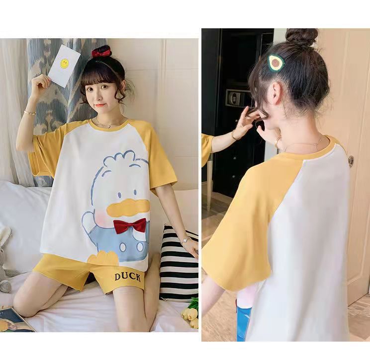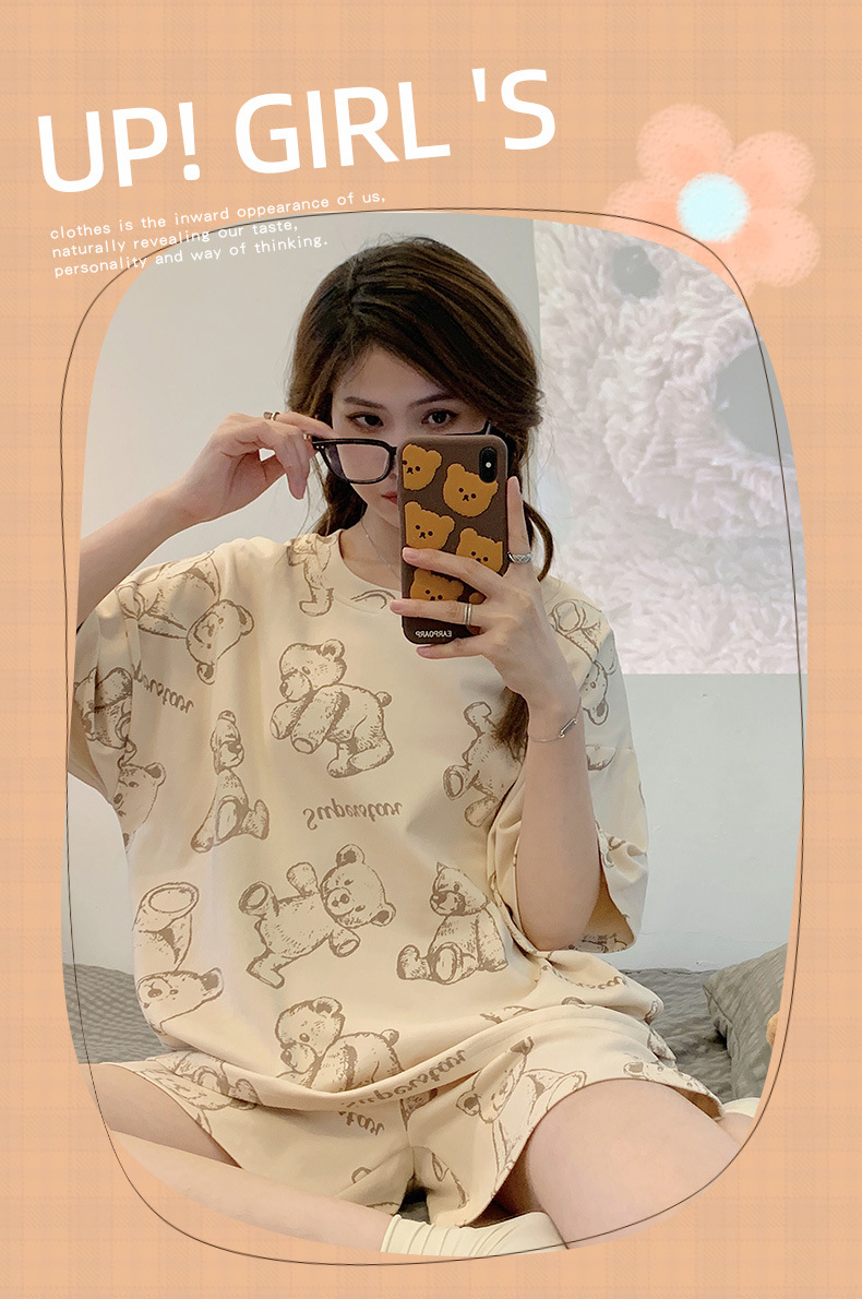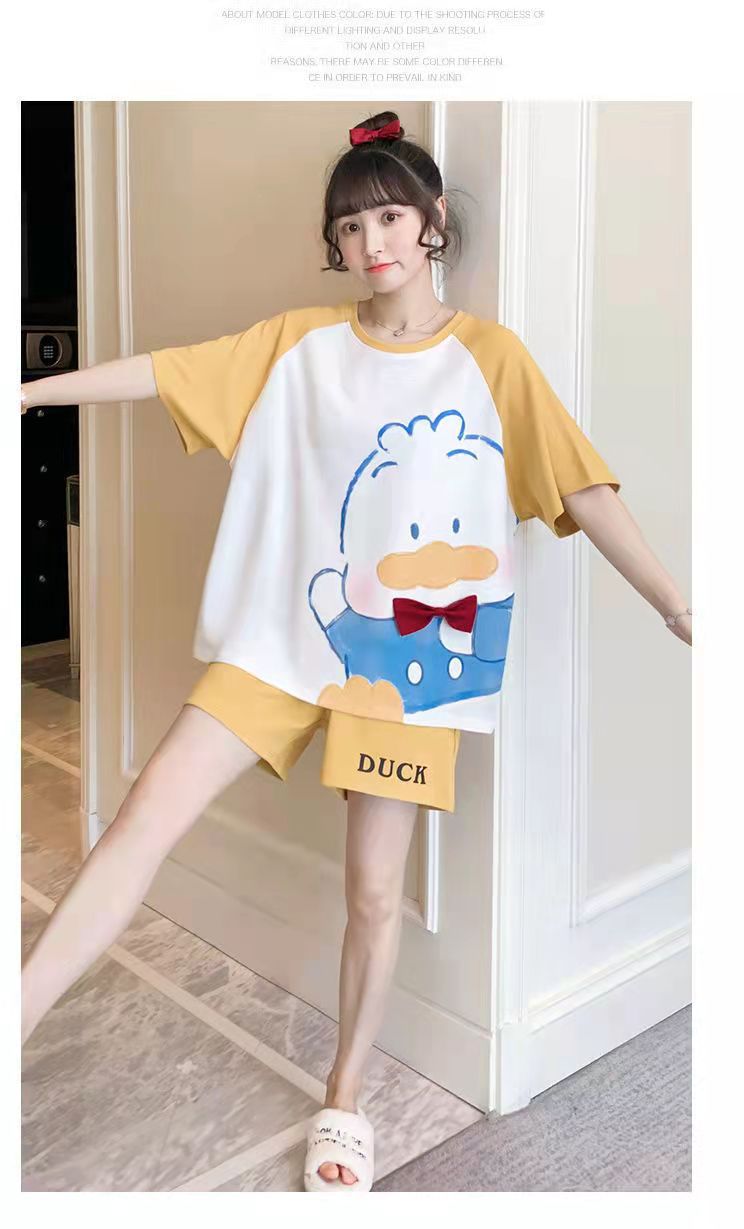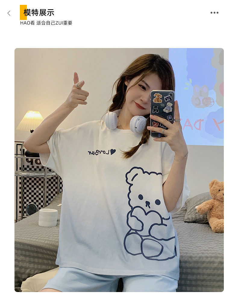 대외 무역 초대형 잠옷 여자의 여름 만화 귀여운 반팔 반바지 세트 학생 부드러운 여름 가정 의류스토어 가기