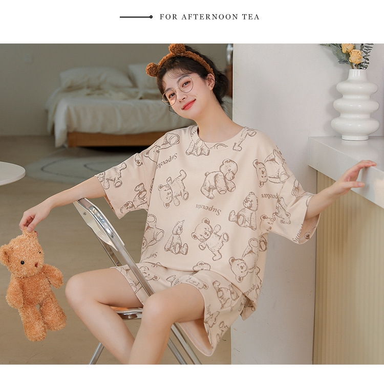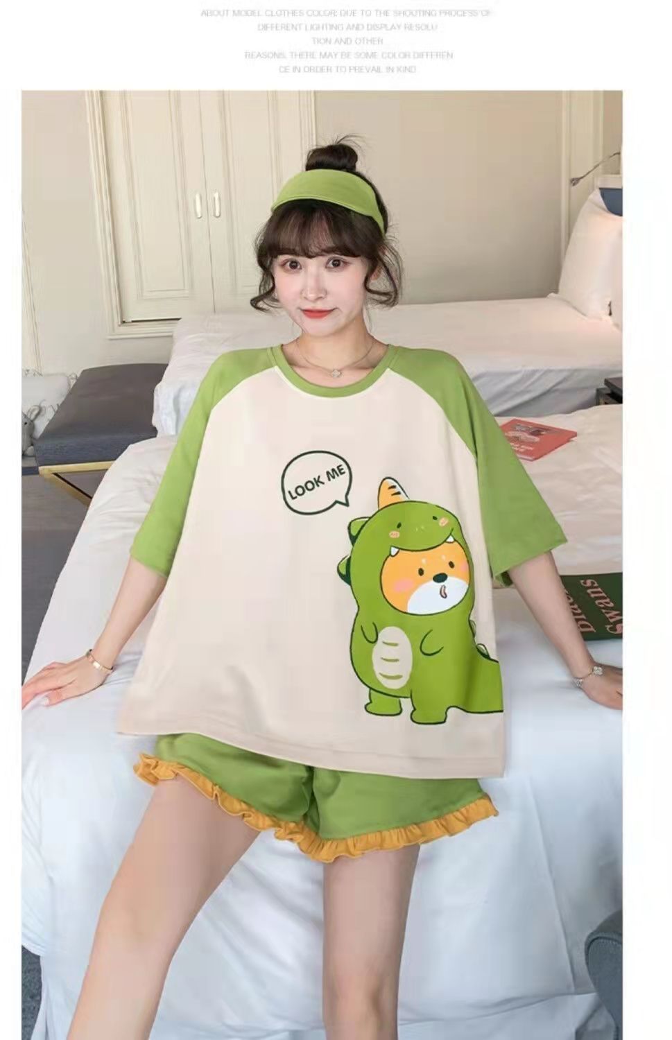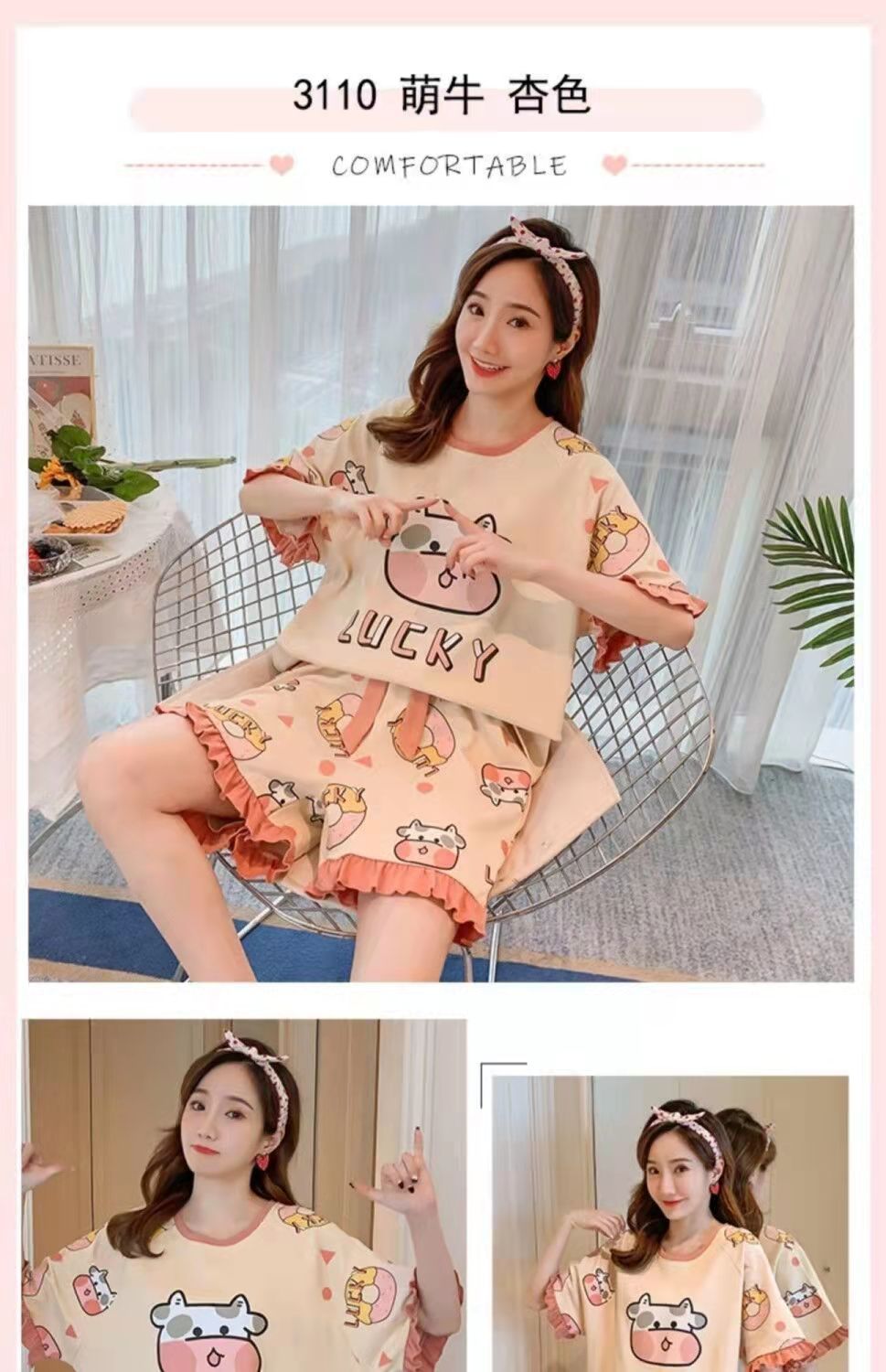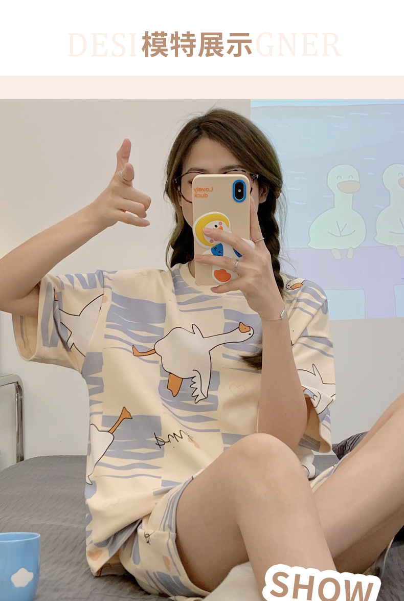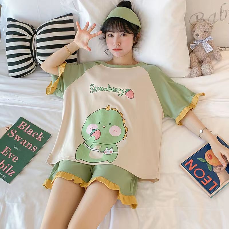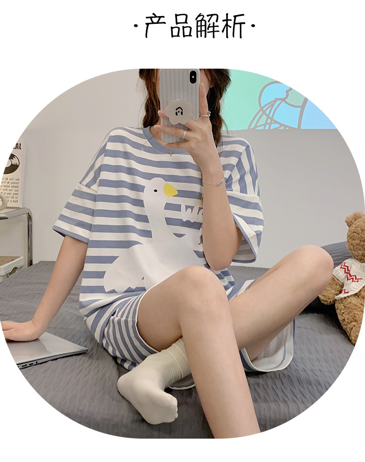대외 무역 초대형 잠옷 여자의 여름 만화 귀여운 반팔 반바지 세트 학생 부드러운 여름 가정 의류스토어 가기