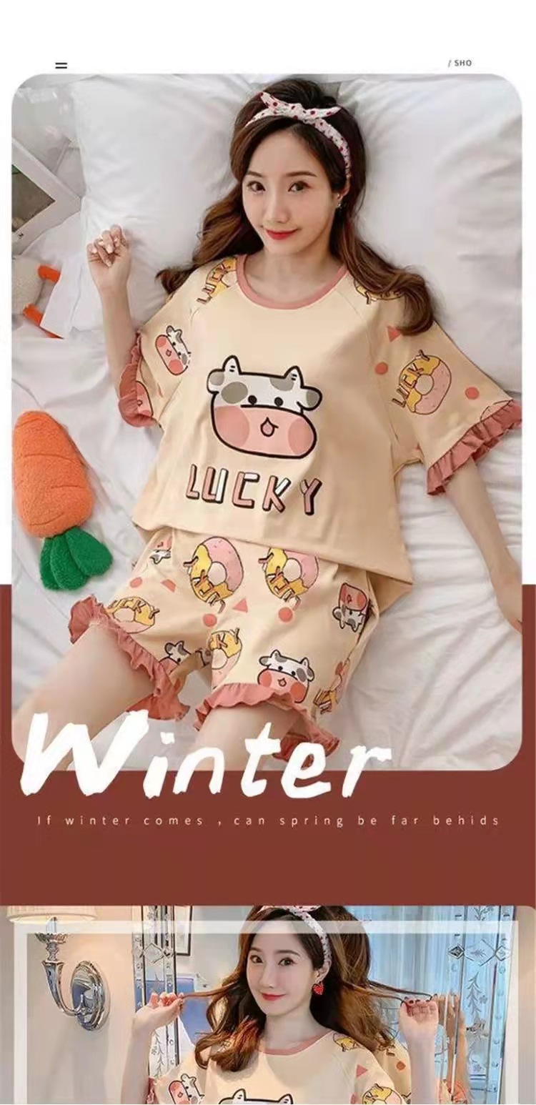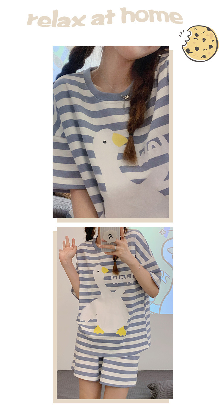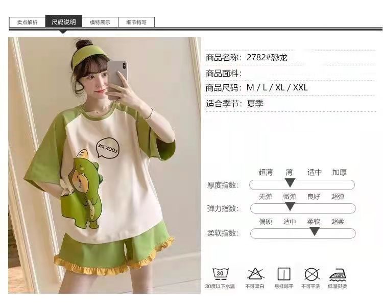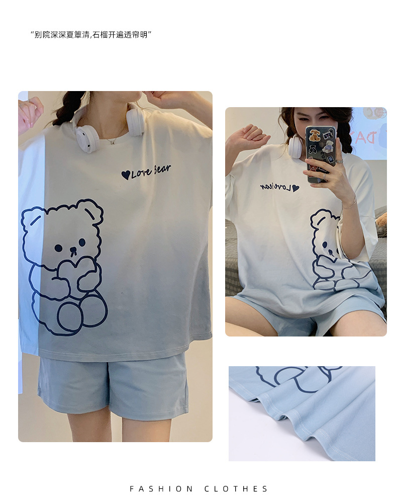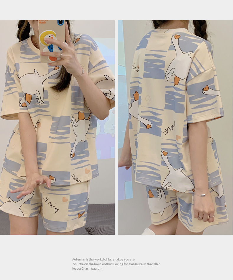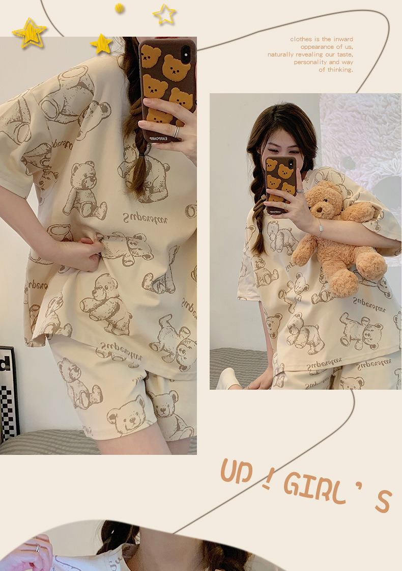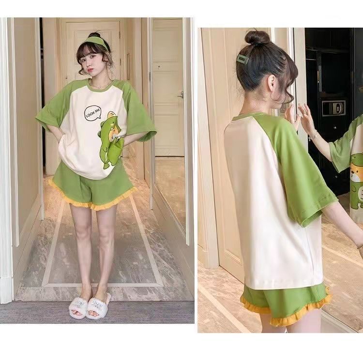 대외 무역 초대형 잠옷 여자의 여름 만화 귀여운 반팔 반바지 세트 학생 부드러운 여름 가정 의류스토어 가기