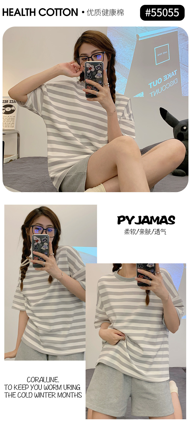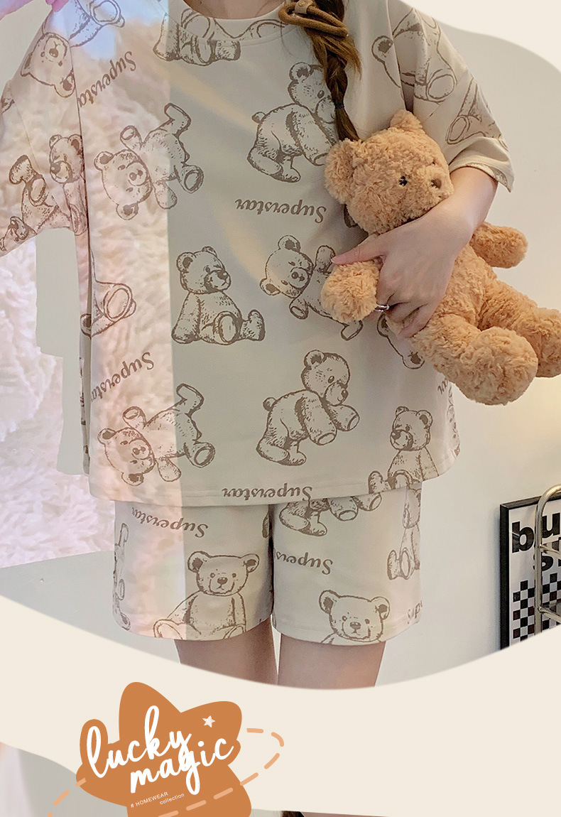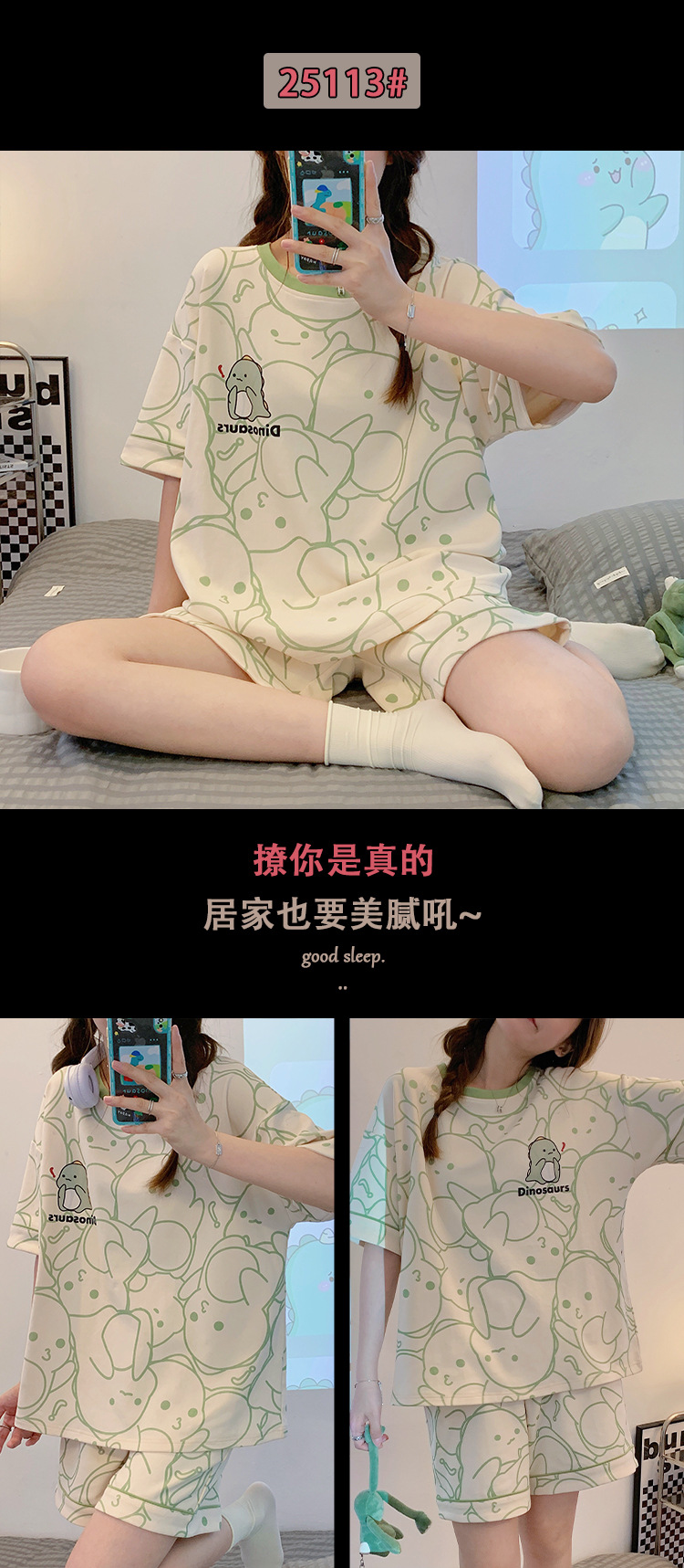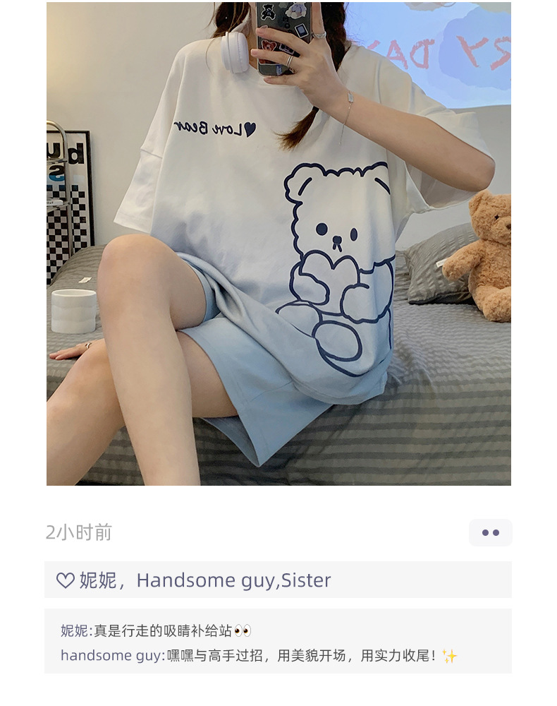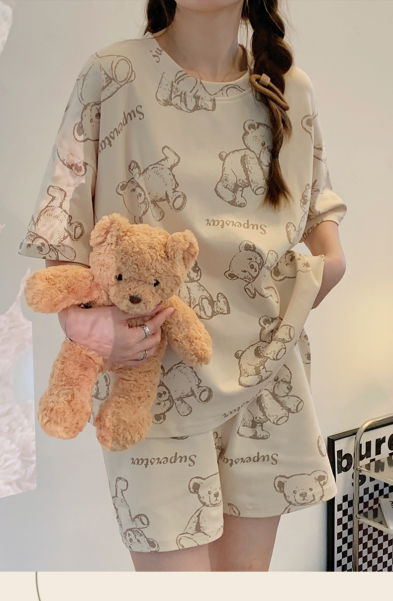 대외 무역 초대형 잠옷 여자의 여름 만화 귀여운 반팔 반바지 세트 학생 부드러운 여름 가정 의류스토어 가기