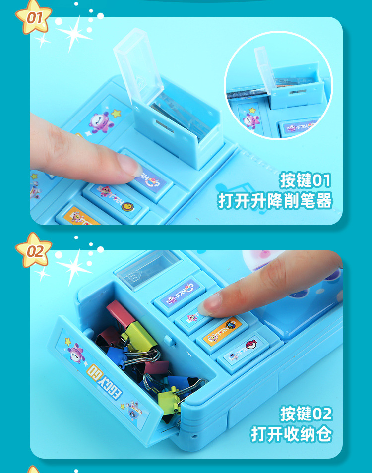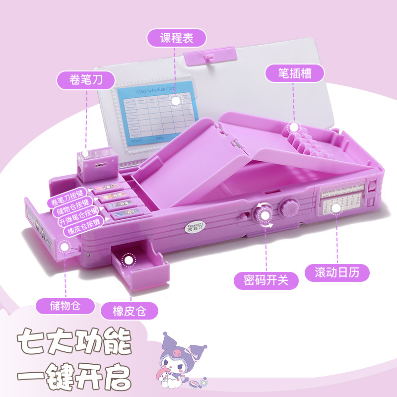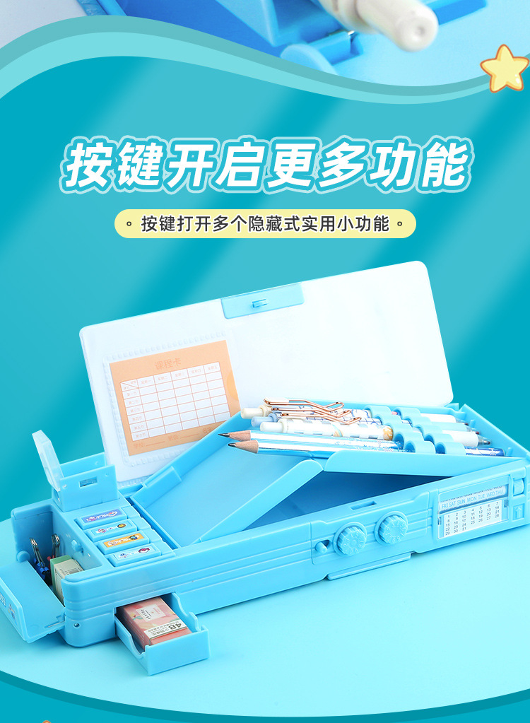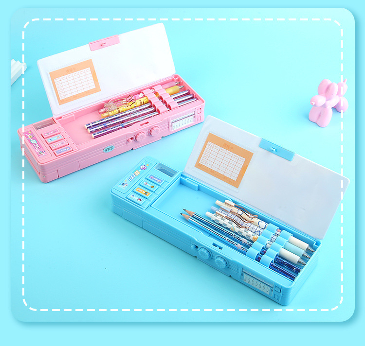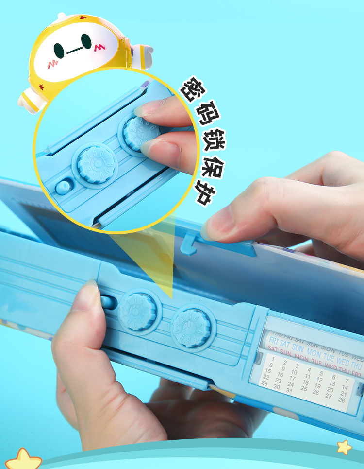 비밀번호 잠금 문구함+화이트보드 펜 전용 체인 증정, 다기능 이중층 대용량 필통 남녀 초등학생용
