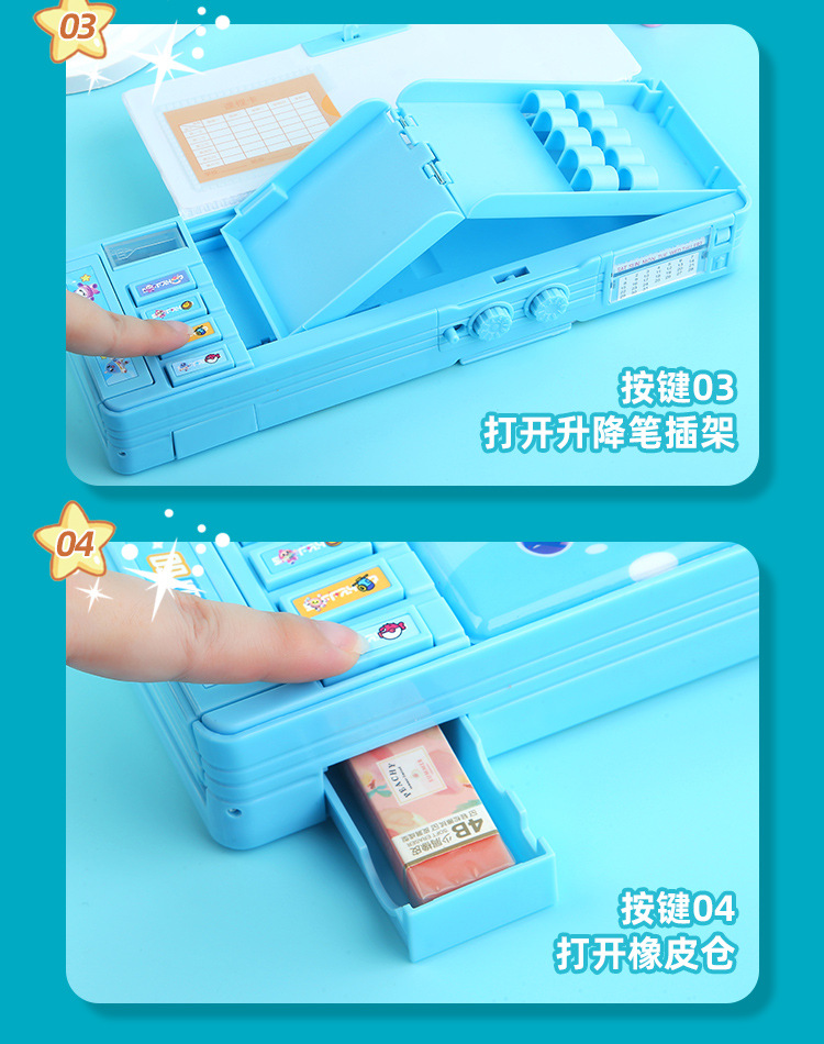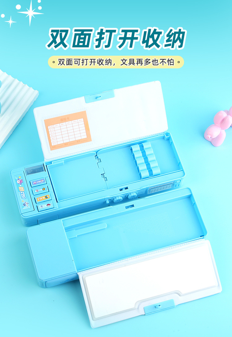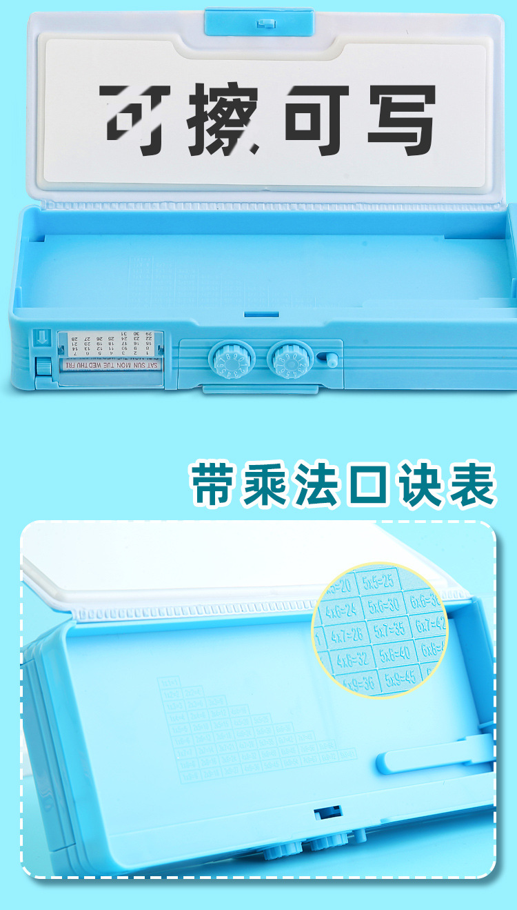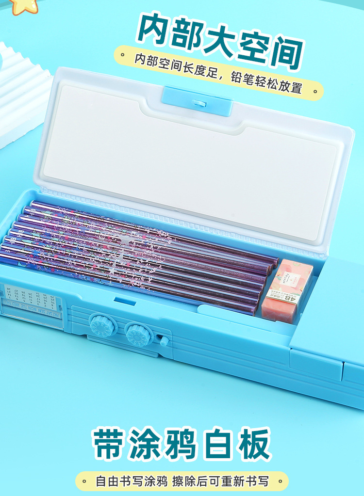 비밀번호 잠금 문구함+화이트보드 펜 전용 체인 증정, 다기능 이중층 대용량 필통 남녀 초등학생용스토어 가기