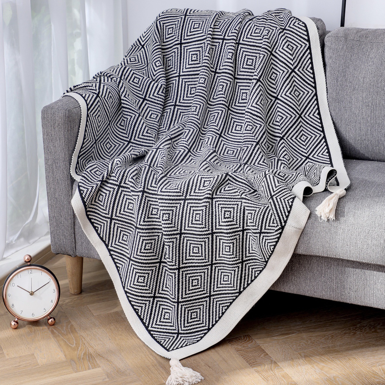 낮잠 담요 소파 담요 에어컨 담요 소파 담요 사무실 담요 기하학적 니트 싱글 캠핑 스타일스토어 가기