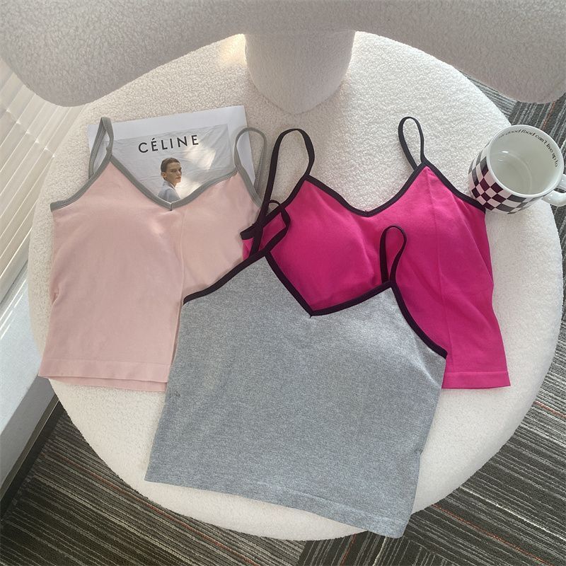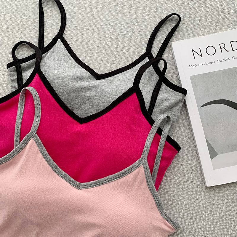 가슴 패드가있는 섹시한 캐미솔 작은 조끼 아름다운 뒤로 감싼 가슴 향신료 소녀 바깥 입고 짧은 배꼽 백업 탑 여성용 끈이없는스토어 가기