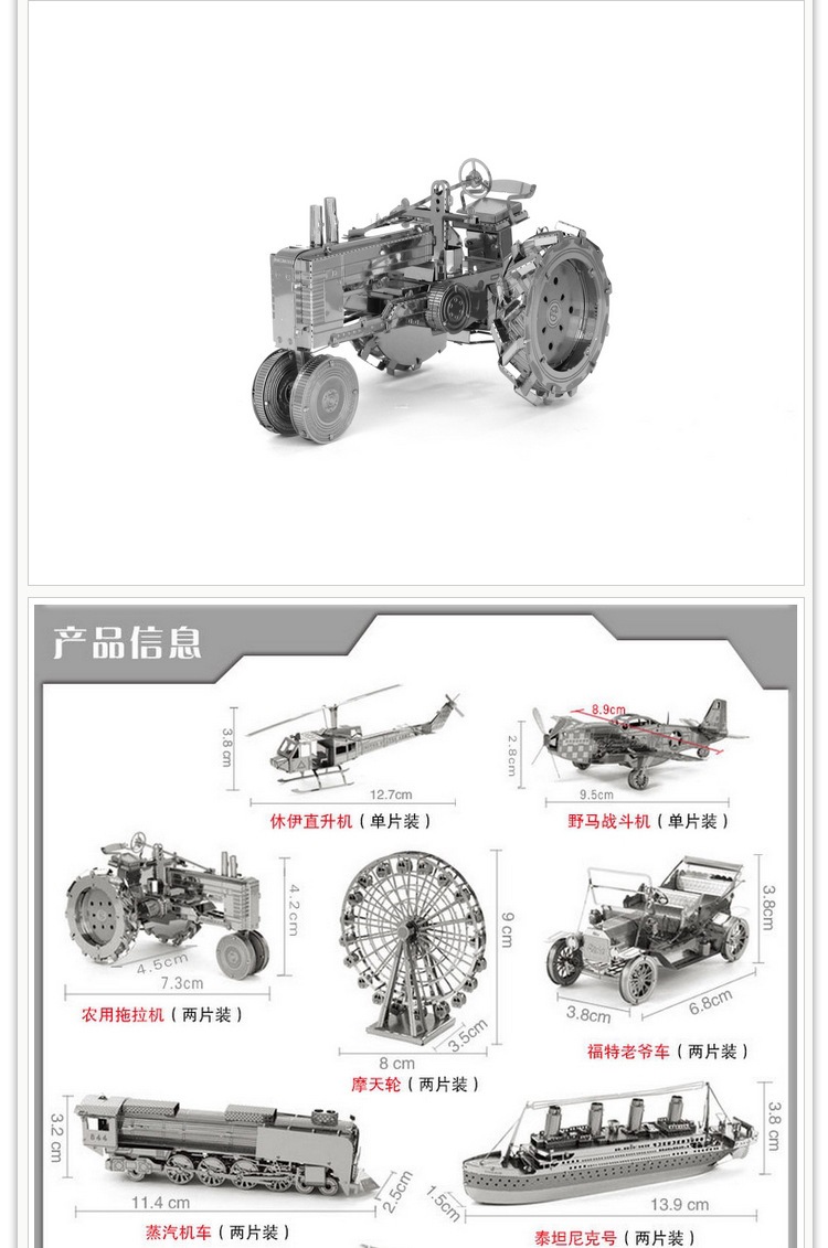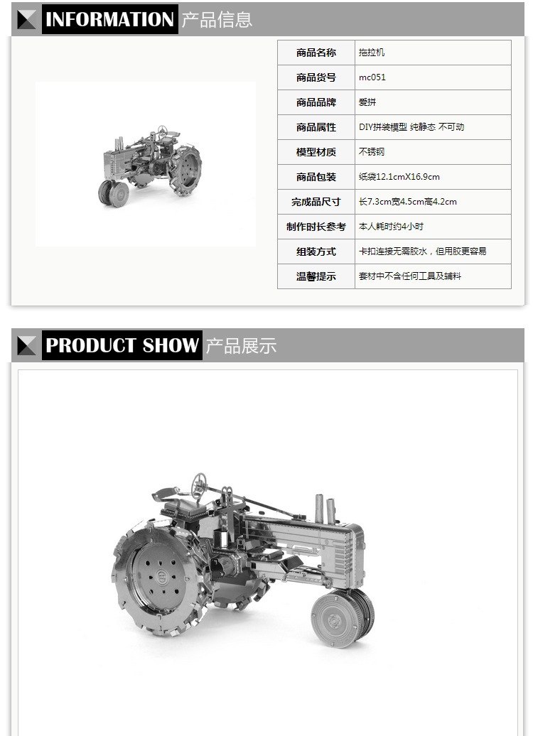 미친 금형 트랙터 모든 금속 스테인레스 스틸 DIY 조립 모델 3D 접착제가없는 3 차원 퍼즐 장난감스토어 가기