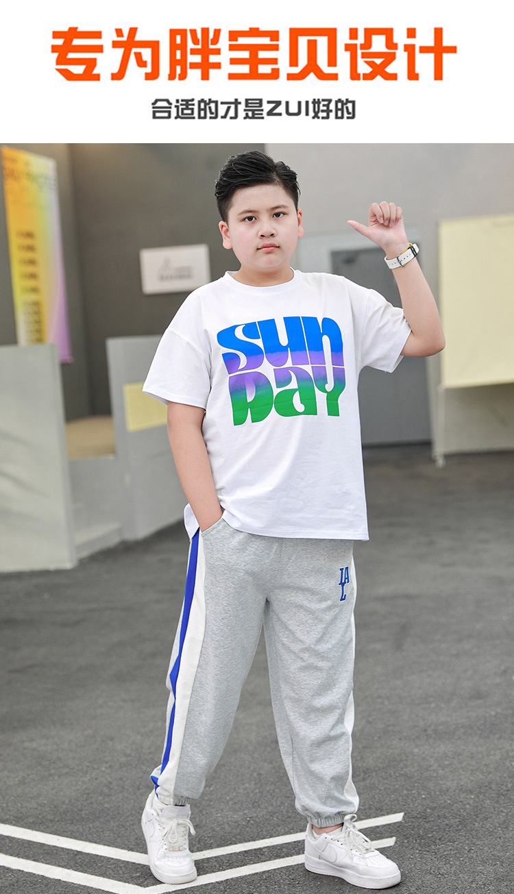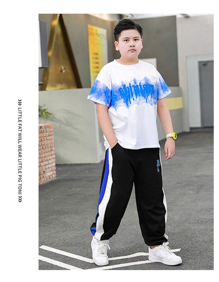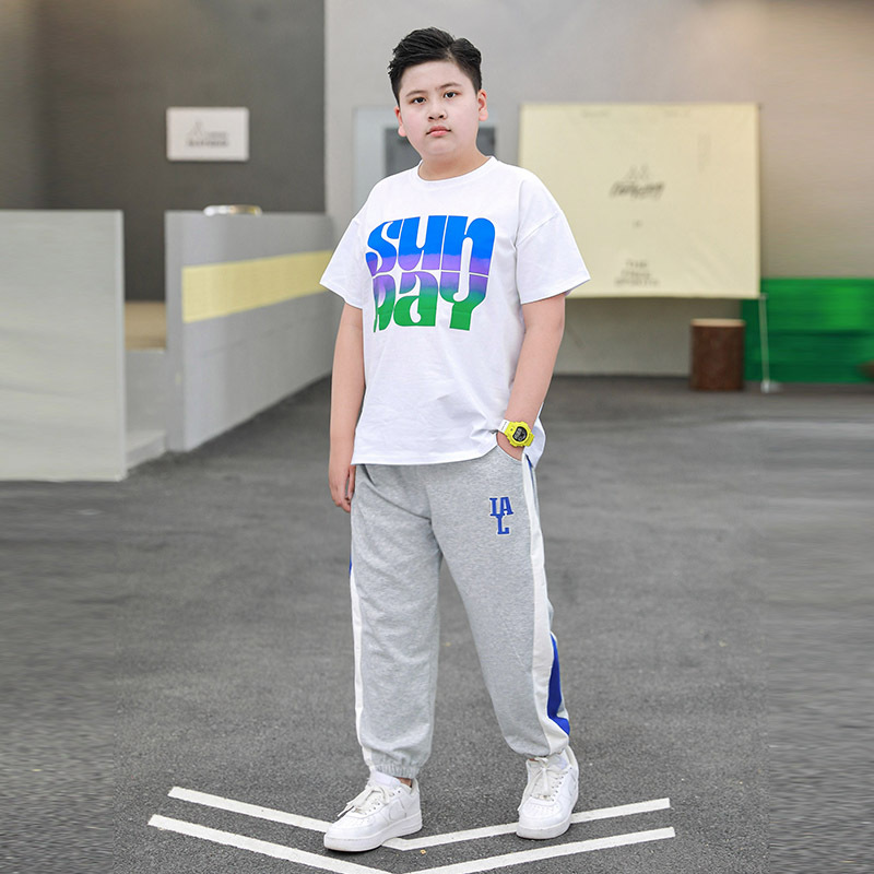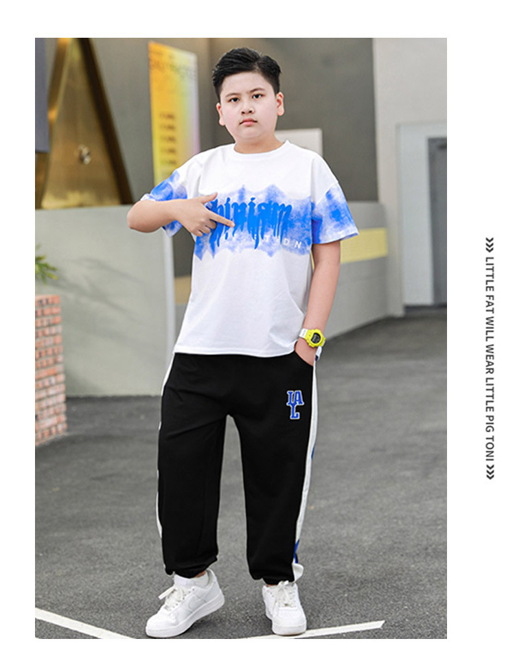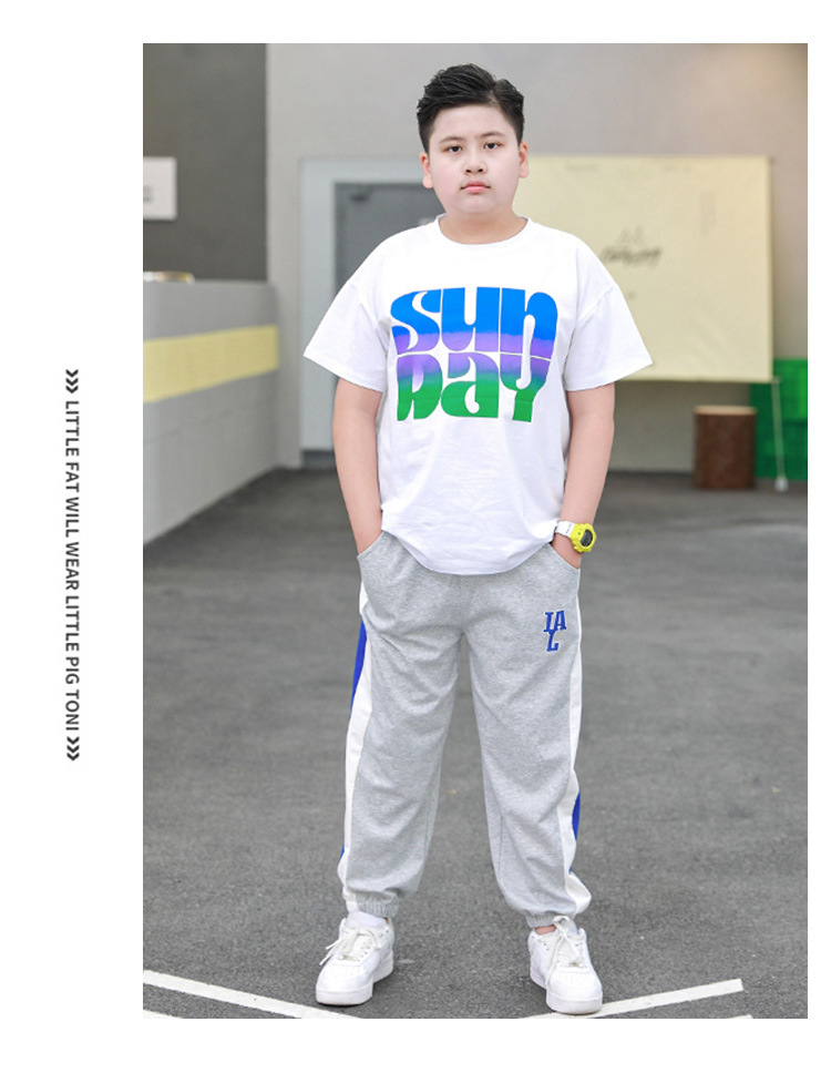 아동복 남아 여름 세트 느슨한 12-15 중간 및 큰 어린이 티셔츠 짧은 소매 바지 뚱뚱한 어린이 소년 아기 여름 착용