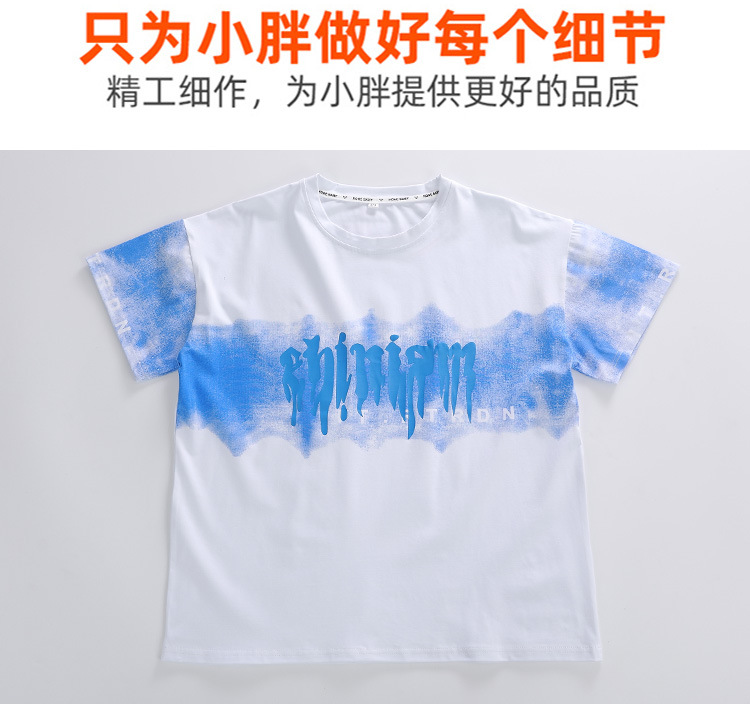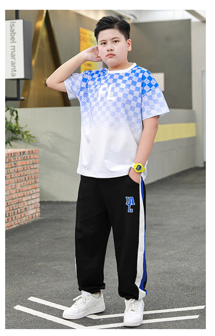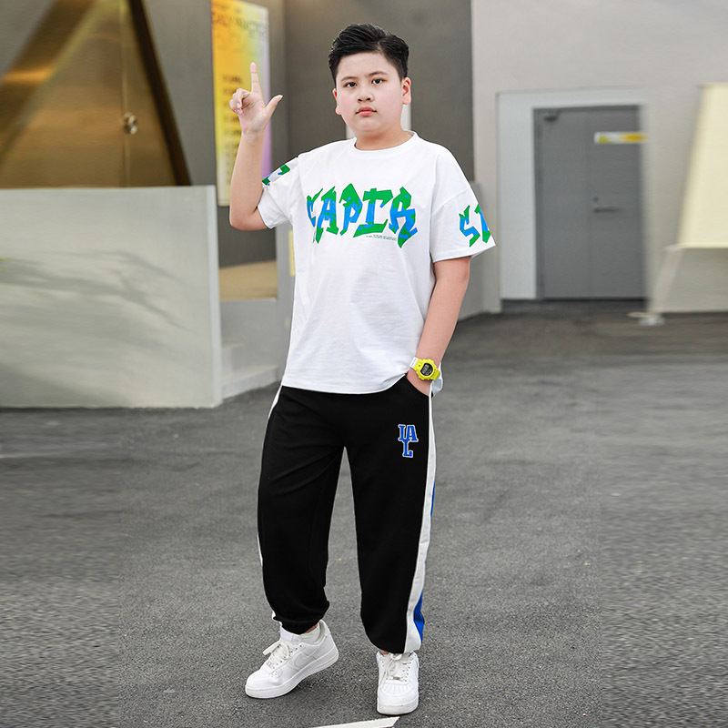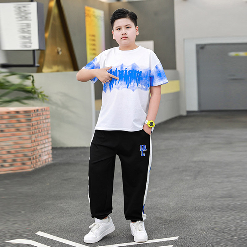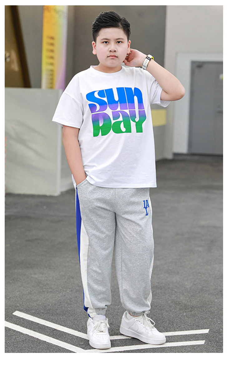 아동복 남아 여름 세트 느슨한 12-15 중간 및 큰 어린이 티셔츠 짧은 소매 바지 뚱뚱한 어린이 소년 아기 여름 착용