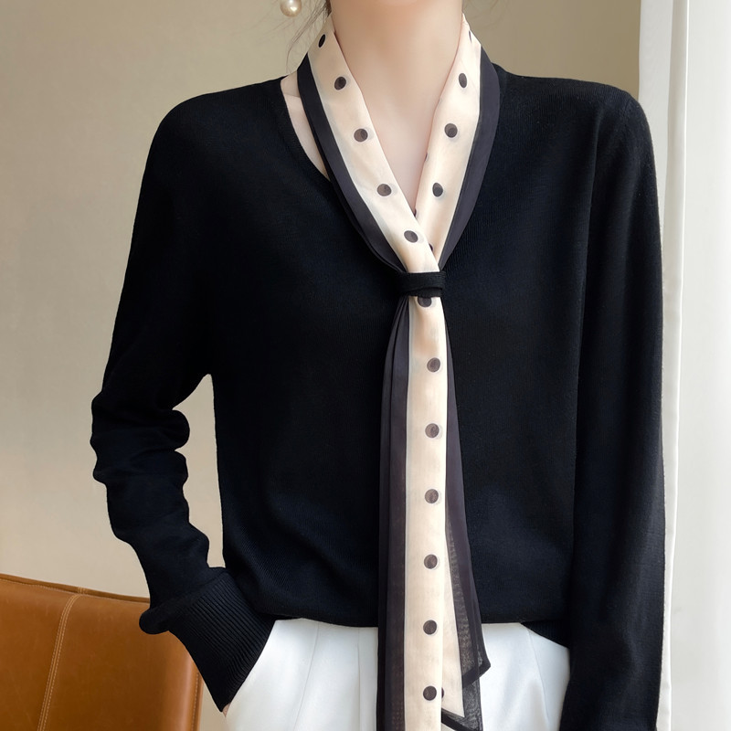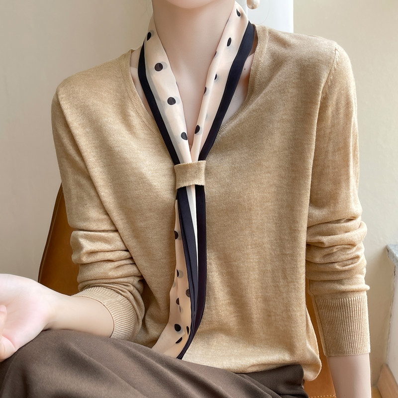 봄과 가을 얇은 긴팔 스웨터 여성용 느슨한 스카프 V-넥 최악의 울 짧은 내부 니트 베이스 셔츠 재킷