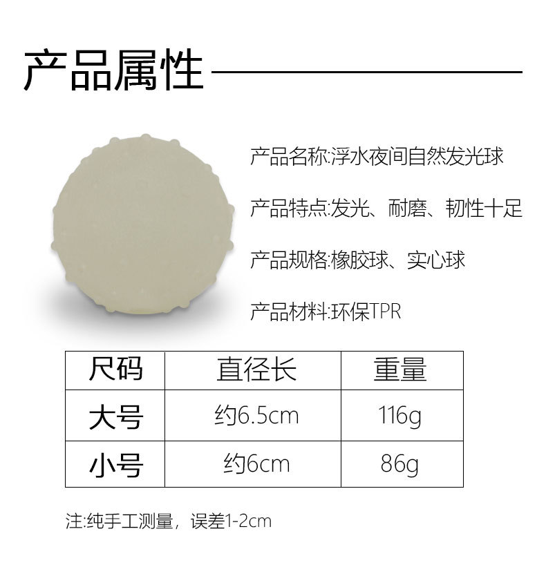 球需要吸收光能在黑暗的环境下发出绿色的光,正常情况下 大号的球偏绿一些小号的球偏白一些,不属于质量问题介意的亲谨慎购买。