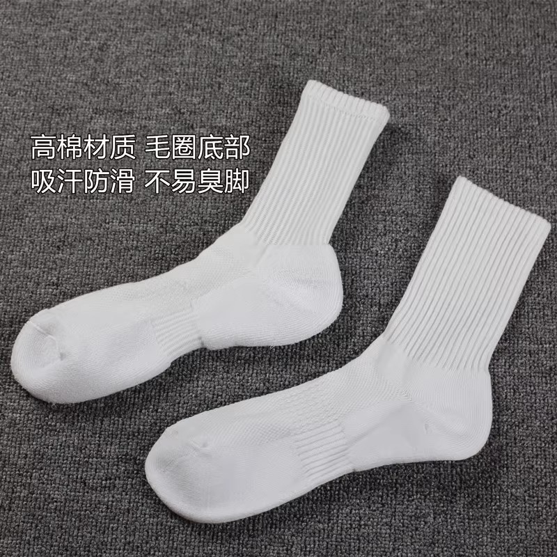 Zhuji 양말 Youjia 순면 수건 바닥 흰색 남자 양말 높은 배럴 스포츠 승마 통근 배드민턴 농구 양말스토어 가기