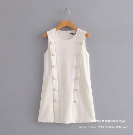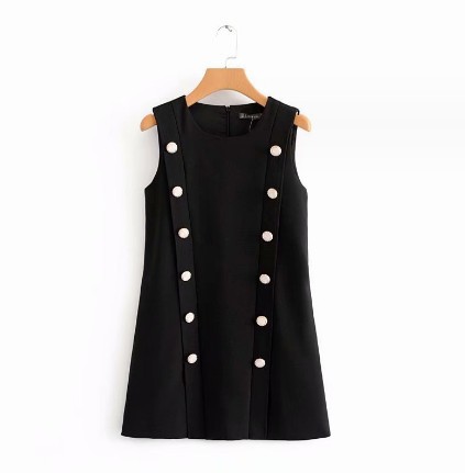 2025년 가을 유럽 및 미국 스타일 여성용 더블 버튼 조끼 드레스 짧은 원피스스토어 가기