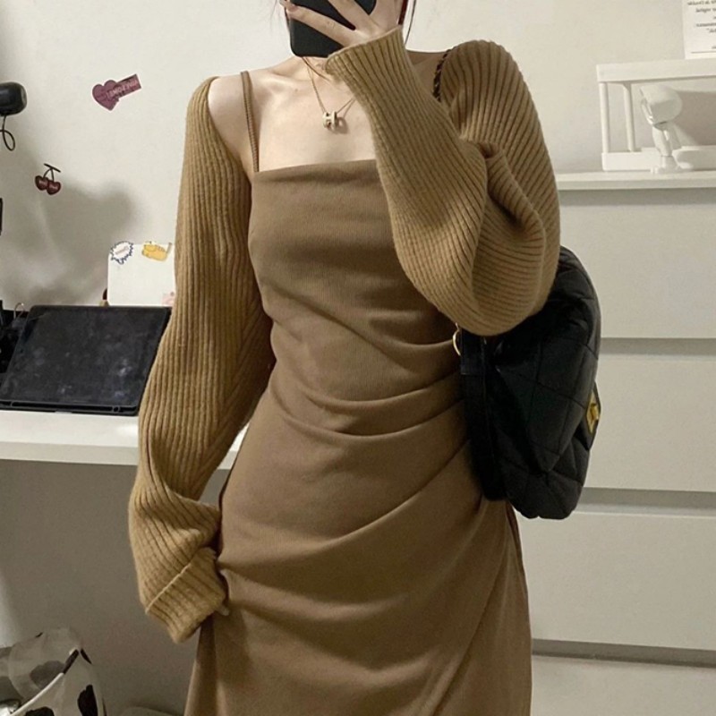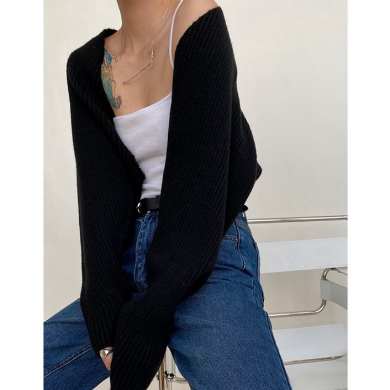 2024 봄과 가을 프랑스 스타일 우아한 니트 카디건 여성 목도리 작은 허리 밴드 슬링 느슨한 블라우스 코트 탑
