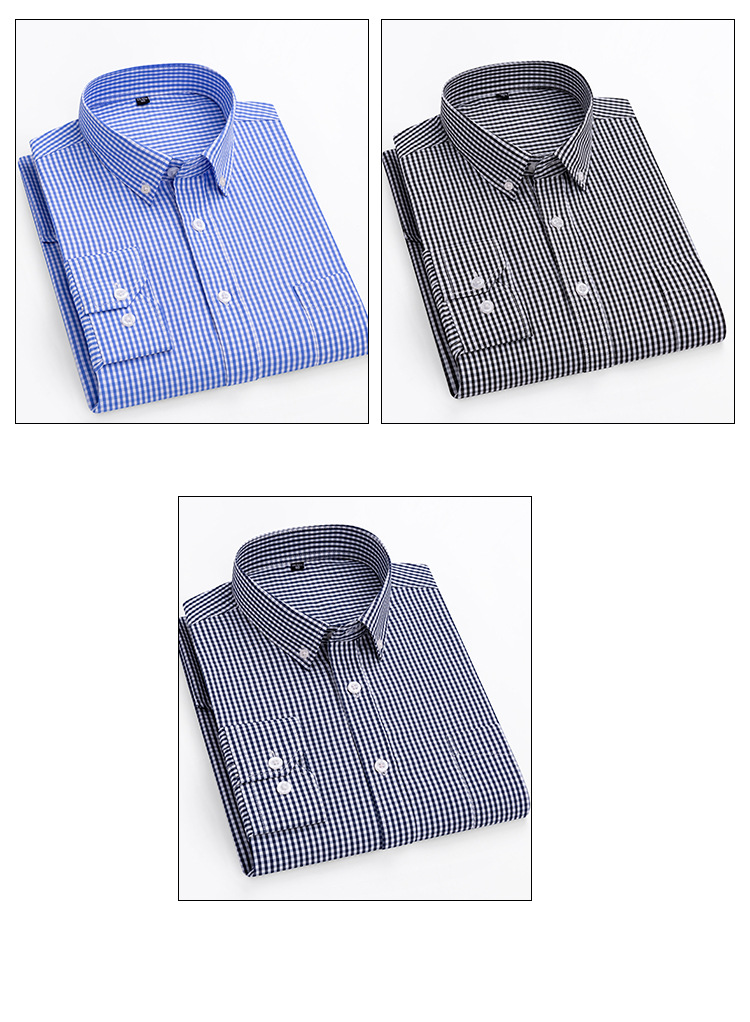 순면 남성용 긴팔 셔츠 젊고 중년의 얇은 캐주얼 흑백 작은 격자 무늬 셔츠스토어 가기