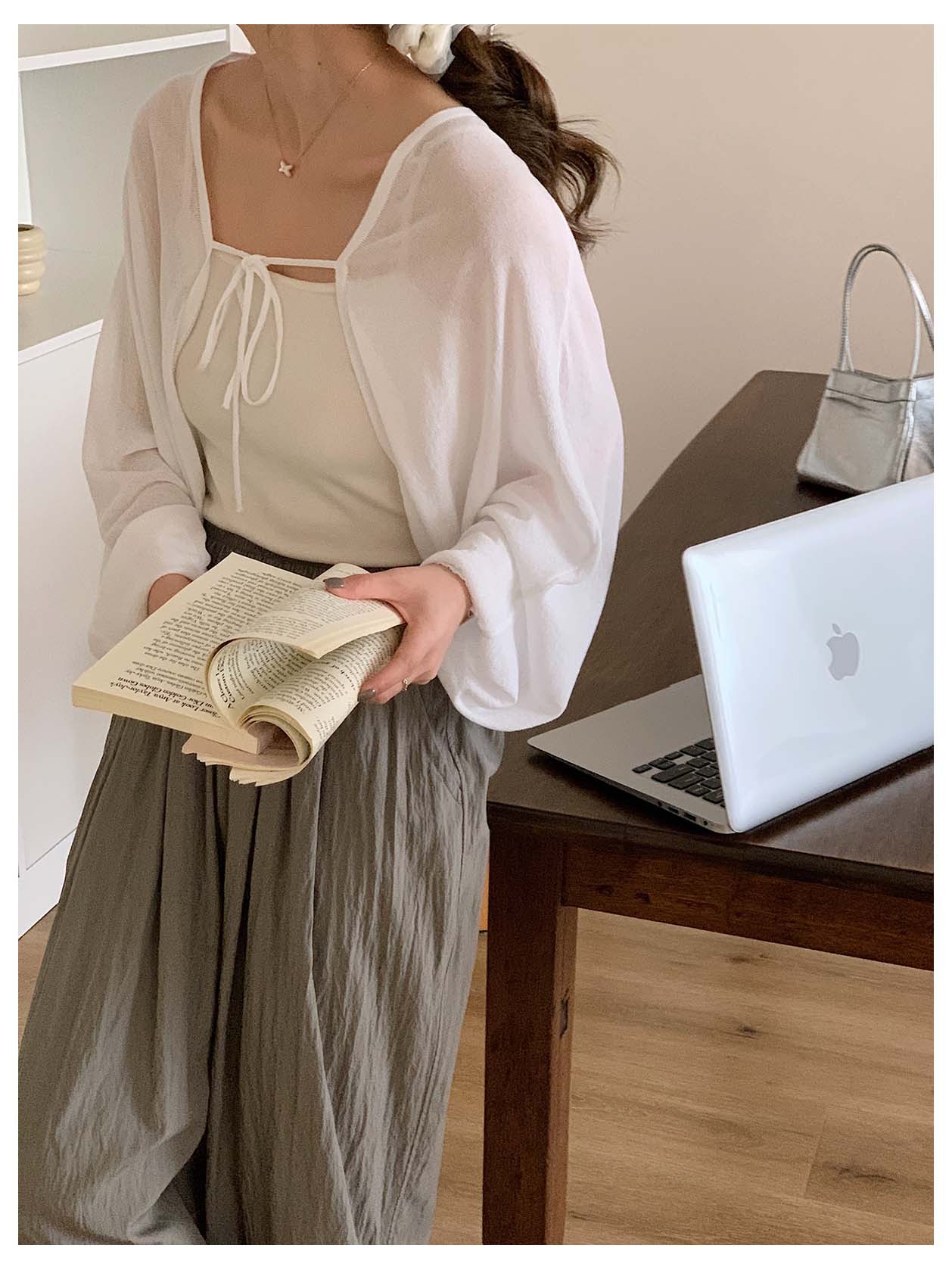 화이트 아이스 실크 니트 자외선 차단제 가디건 재킷 여성용 여름 얇은 조끼 블라우스 에어컨 셔츠 짧은 탑스토어 가기