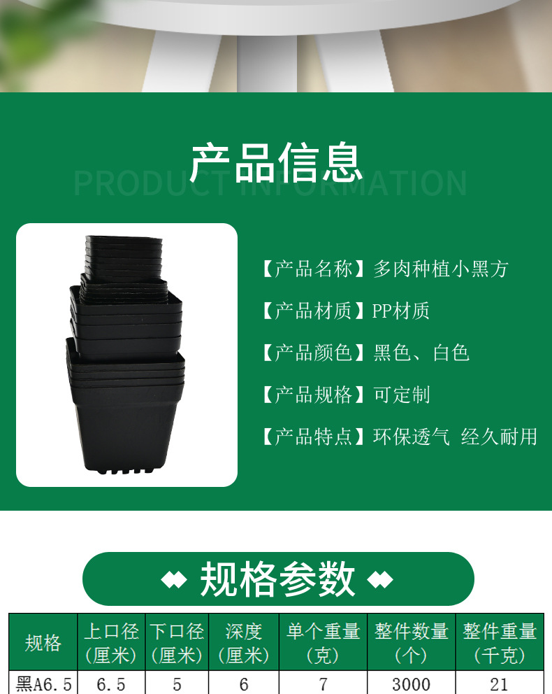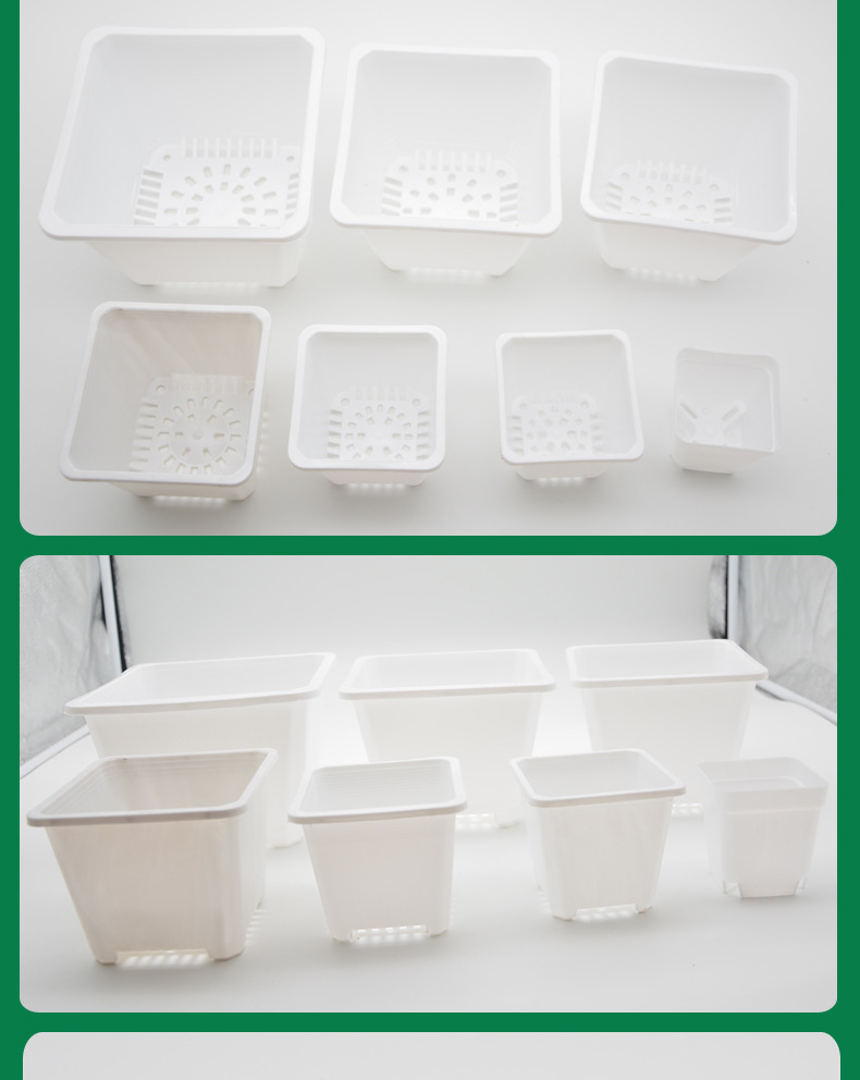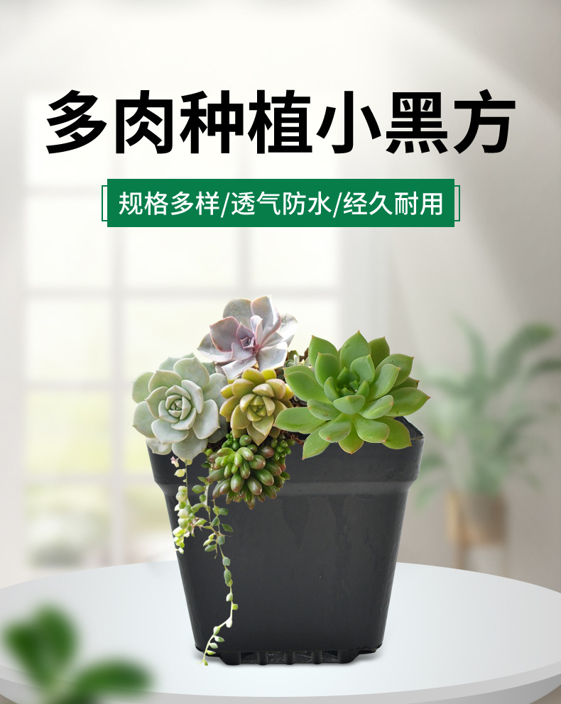대형 플라스틱 다육식물 화분, 작은 흰색 사각형, 작은 검은색 사각형, 정사각형 꽃 화분, 녹색 식물, 작은 사각형 상자, 다육식물 도매